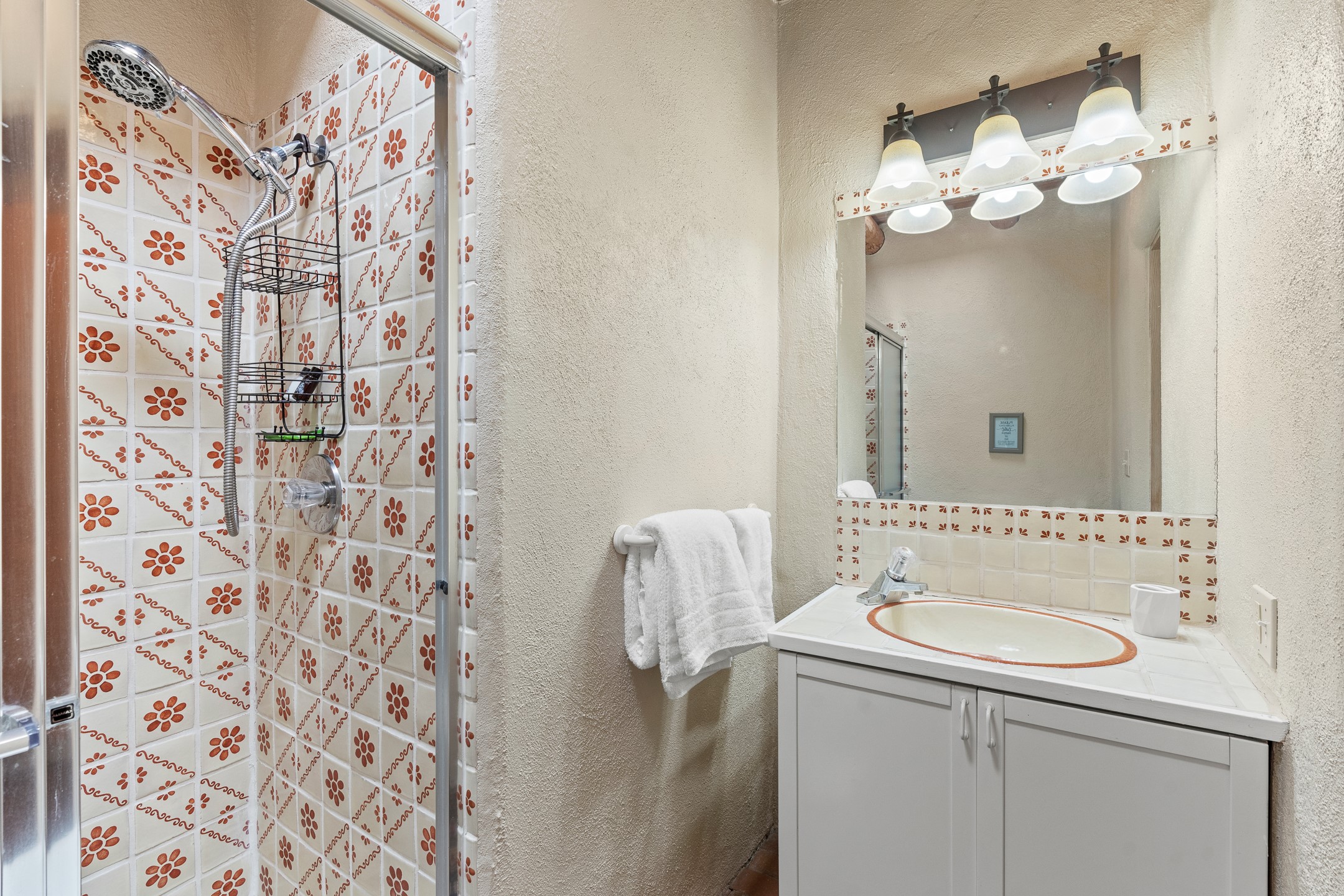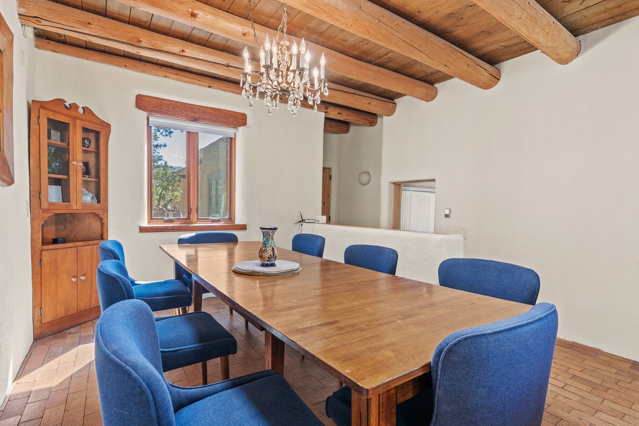 Nestled in the foothills of the Sangre de Cristos Mountains, this property offers a rareblend of serenity and convenience-just minutes from Santa Fe's historic Plaza. Set on over an acre ofbeautifully treed land, the walled courtyard welcomes you to the entry of this light filled 3 bedroom3 bath (2384 sq ft)home full of unique architectural details. The 1 bedroom 1 bath (768 sq ft) guest house is equipped with a full kitchen and mini split offering year round comfort. This property presents a rare chance to own close to town as well as many hiking/biking trails that are right out your front door. Its perfect for the active lifestyle.
