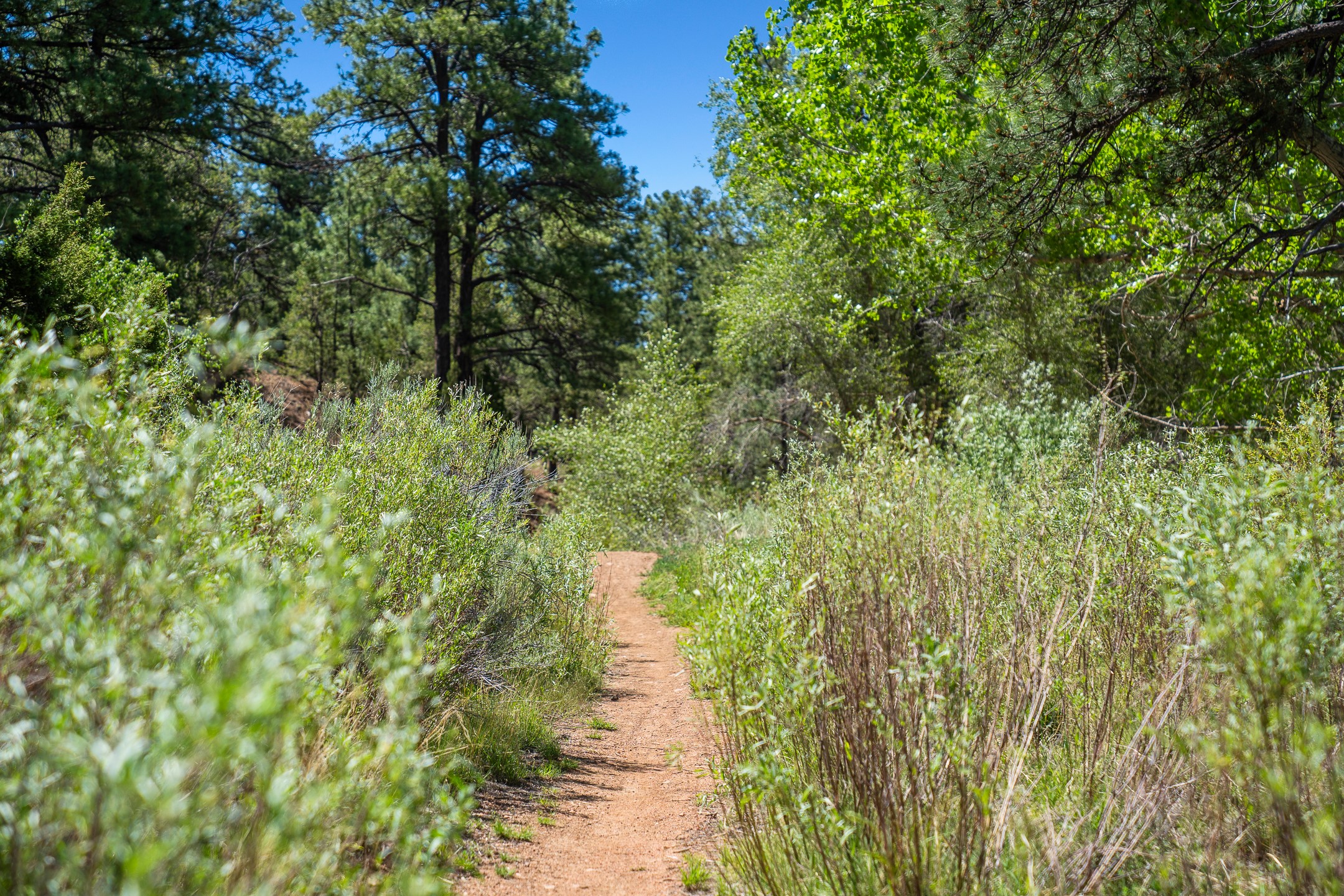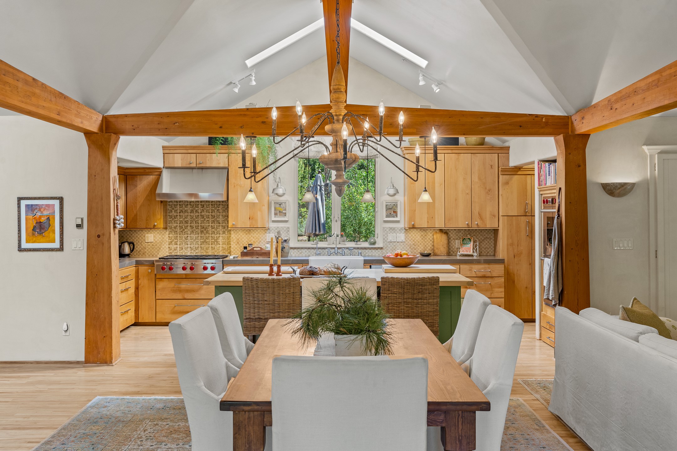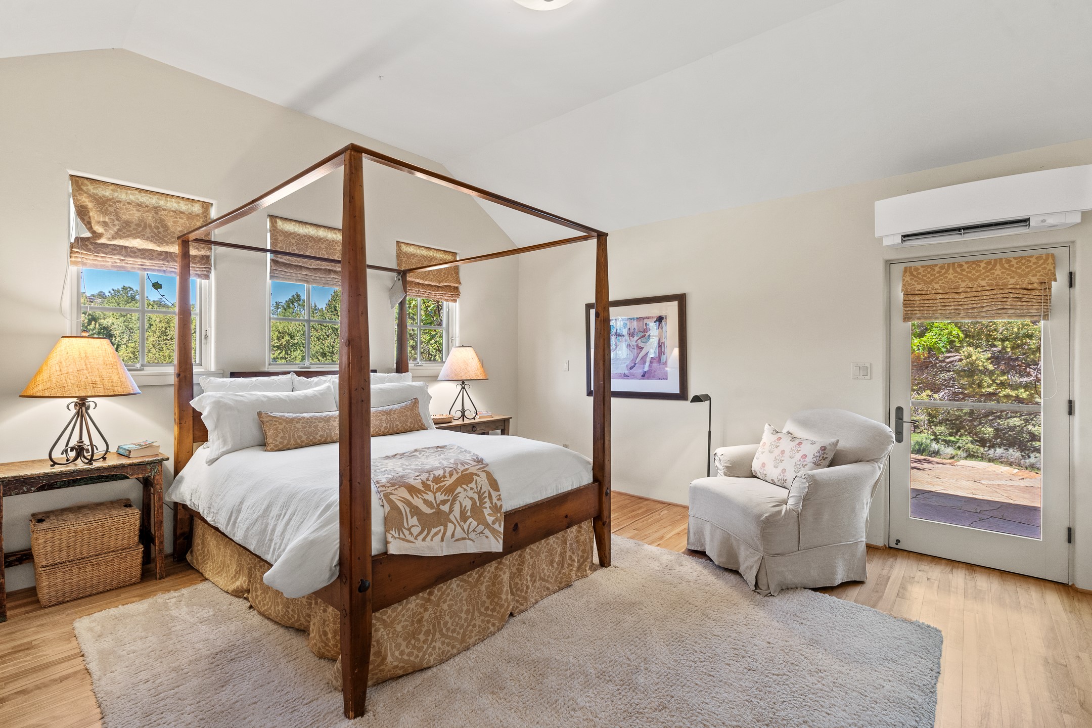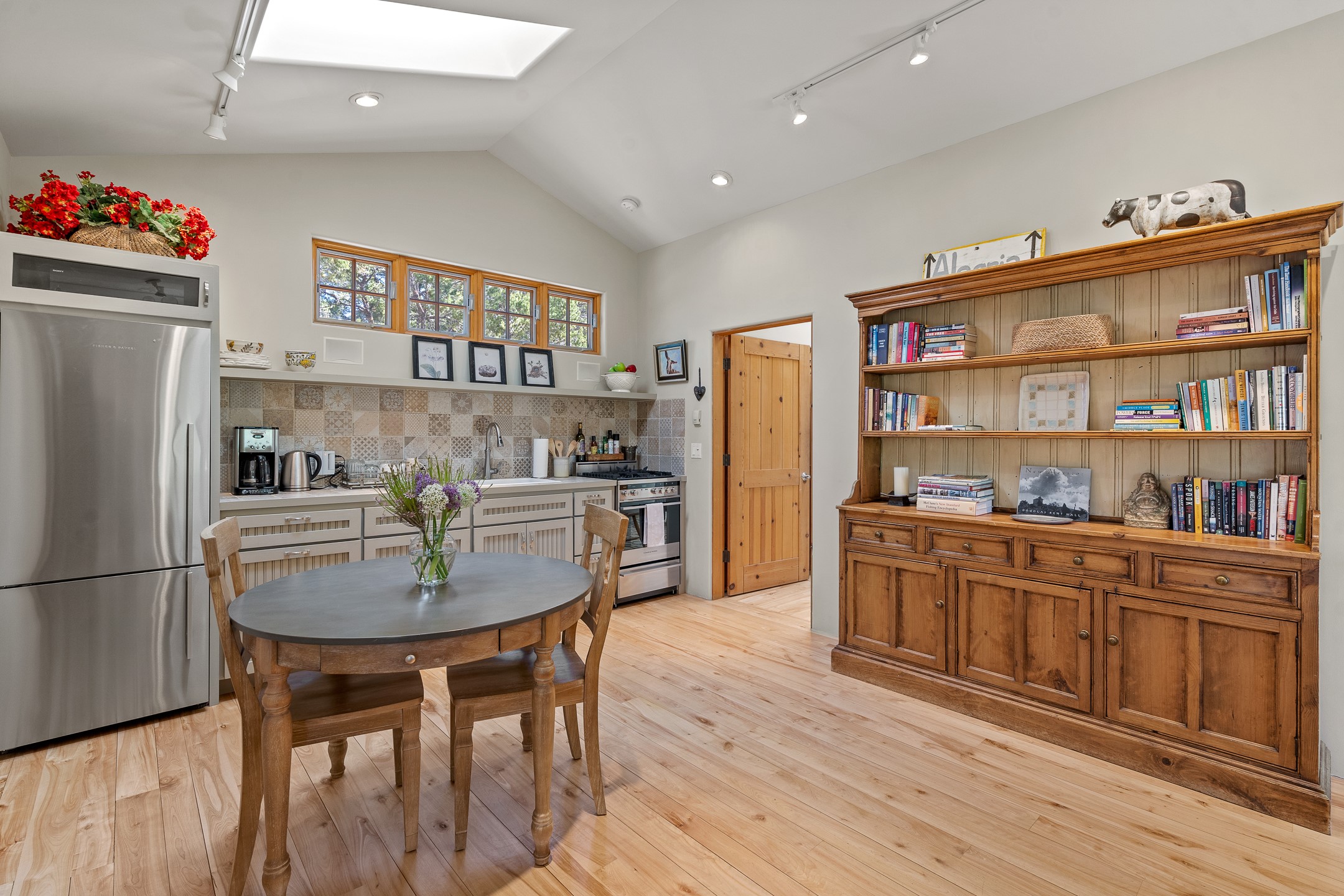 Just 15 minutes from the Santa Fe Plaza, this hidden gem is nestled on 5 acres in a lush, private valley bordering the Santa Fe National Forest. Surrounded by towering aspens, mature ponderosa pines, pions, fruit trees, and established gardens, the property offers rare seclusion, natural beauty, and immediate access to the outdoors. The 2,150 sq ft main residence features a pitched Northern New Mexico roof, radiant heat, mini splits, and a beautifully renovated kitchen with Wolf appliances. Hand-carved granite walls and flagstone patios add timeless character. A detached 625 sq ft one-bedroom guesthouse--fully licensed as a short-term rental--offers privacy for visitors or turn-key income potential. The Dale Ball Trail system--Santa Fe's most beloved network of hiking and biking trails--runs directly through the property, offering unmatched access to miles of scenic exploration right from your door. A large reclaimed seasonal pond adds to the magic of this serene landscape, with endless stargazing by night and wildlife by day. Additional highlights include a 2-car garage (1 bay heated), natural gas utilities, large cistern, and 18-station irrigation system powered by a shared well with 1.5 acre feet of water. The property is part of a small, well-run HOA with low dues and a friendly community. Gated access via Double Arrow ensures privacy and peace of mind. 53 Hidden Valley is a rare opportunity to live immersed in nature--with starry skies above, trails beneath your feet, and Santa Fe's rich culture just minutes away.