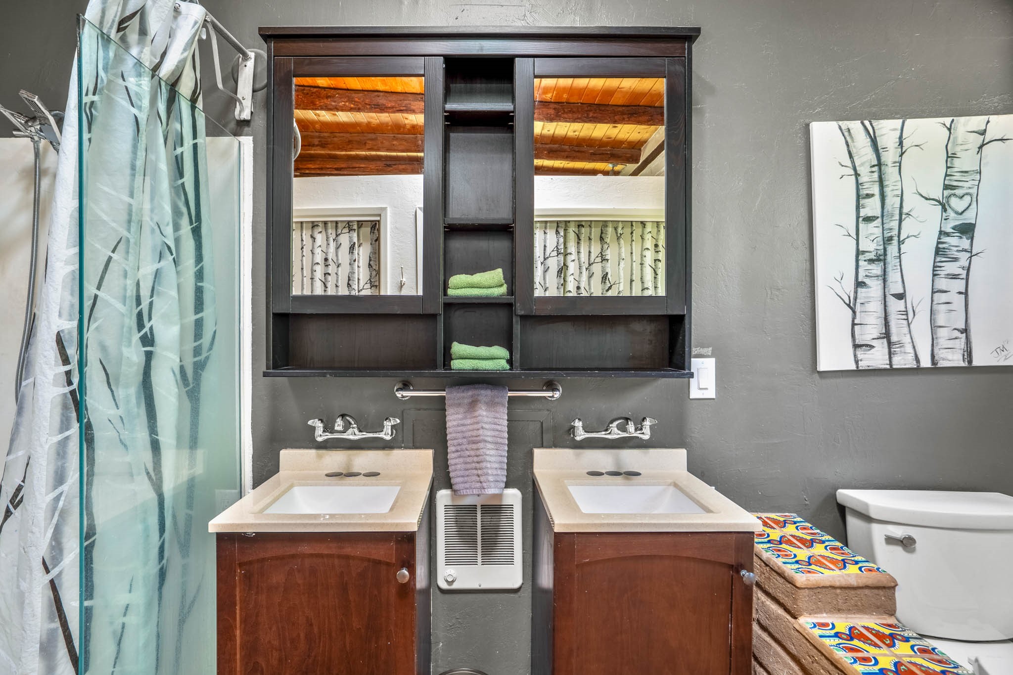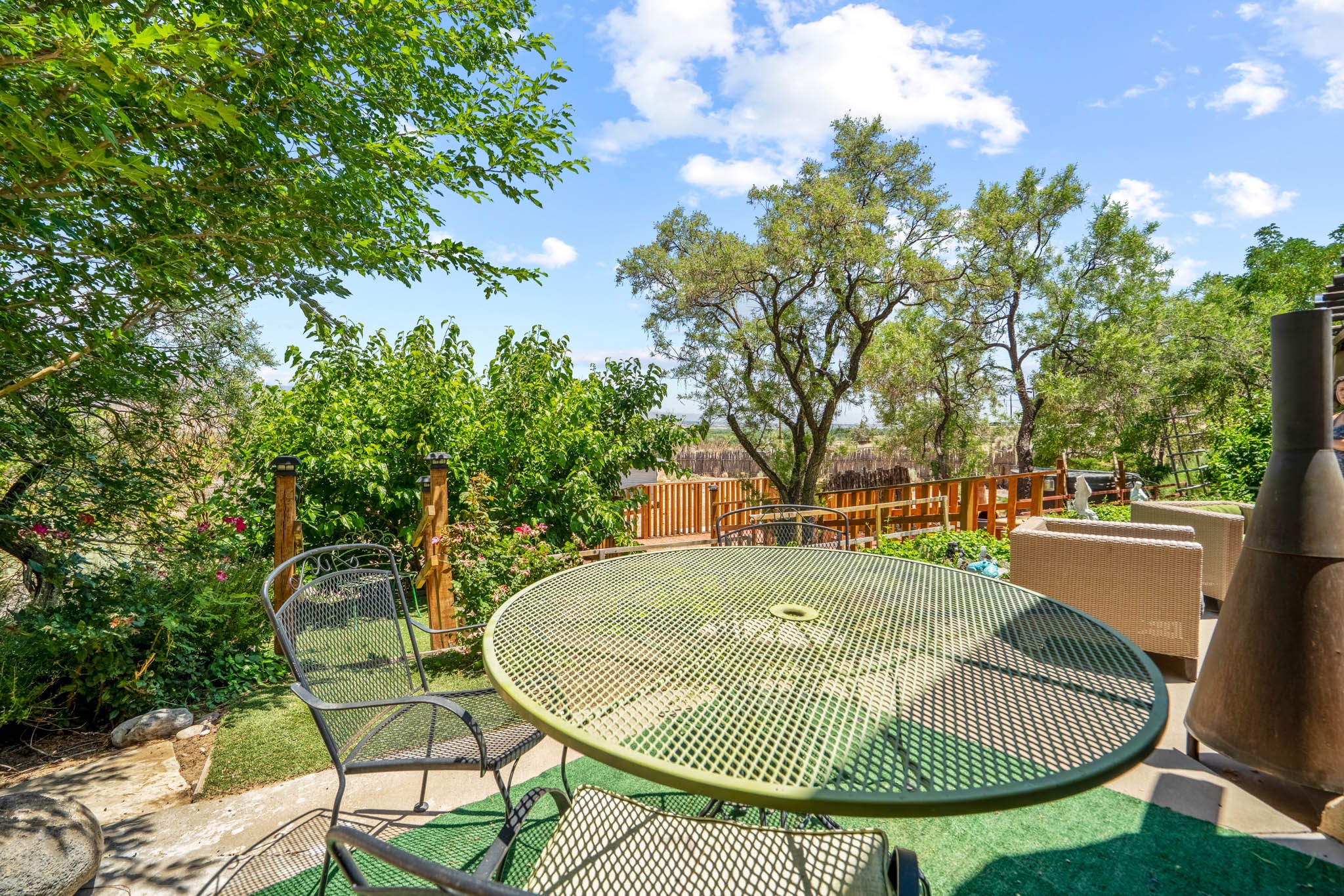 Enchanting Adobe Retreat with Balloon Fiesta Views & Mountain MajestyWelcome to your private New Mexico sanctuary--perched on a peaceful acre at the end of a quiet road, this stunning two-story adobe home offers breathtaking views, timeless character, and unforgettable experiences.Watch the Magic Unfold Every October: From the comfort of your backyard balcony, enjoy front-row seats to the world-famous Albuquerque International Balloon Fiesta. Watch vibrant hot air balloons take flight each morning as they rise gracefully into the sky--an annual tradition that transforms your backyard into a front-row viewing paradise. It's the perfect setting to entertain guests, sip morning coffee, or soak in the wonder of the Southwest.Southwestern Charm Meets Modern Comfort:This thoughtfully crafted adobe home features classic brick floors, exposed vigas, hand-troweled plaster walls, and curved adobe lines that fill the space with warmth and natural light. A striking kiva fireplace anchors the living room, while floor-to-ceiling windows frame expansive mountain and city views.The open-concept kitchen and dining area seamlessly blend rustic charm with modern updates--wood cabinetry, sleek countertops, traditional tilework, and beautiful beamed ceilings. Whether you're hosting a holiday feast or a cozy dinner, this home was made for joyful gatherings and lifelong memories.Outdoor Living at Its Finest:Step into your private courtyard, beautifully landscaped with native flora and multiple seating areas. Listen to birdsong from the trees, wave at the curious roadrunners that visit often, or unwind in the hot tub as the sky puts on a show with radiant sunsets and sunrises.Property Features:1 acre of peaceful land at the end of a quiet roadOwned solar power system (active)Two A/C units (one replaced in 2018)Private well and septic systemTwo RV hookups with a concrete parking slabPrivate balcony with sweeping views of Albuquerque and beyondBirds, roadrunners, and local wildlife enhance the serene settingThe backyard is perfect for entertaining and star-gazingThis home has been a place of deep love, laughter, and countless gatherings with family and friends. From the peaceful morning light to the fiery evening skies--and every Balloon Fiesta in between--it's a home that offers more than just space. It offers experience.Come and fall in love with the magic of New Mexico living--this one-of-a-kind retreat is ready to welcome you home.