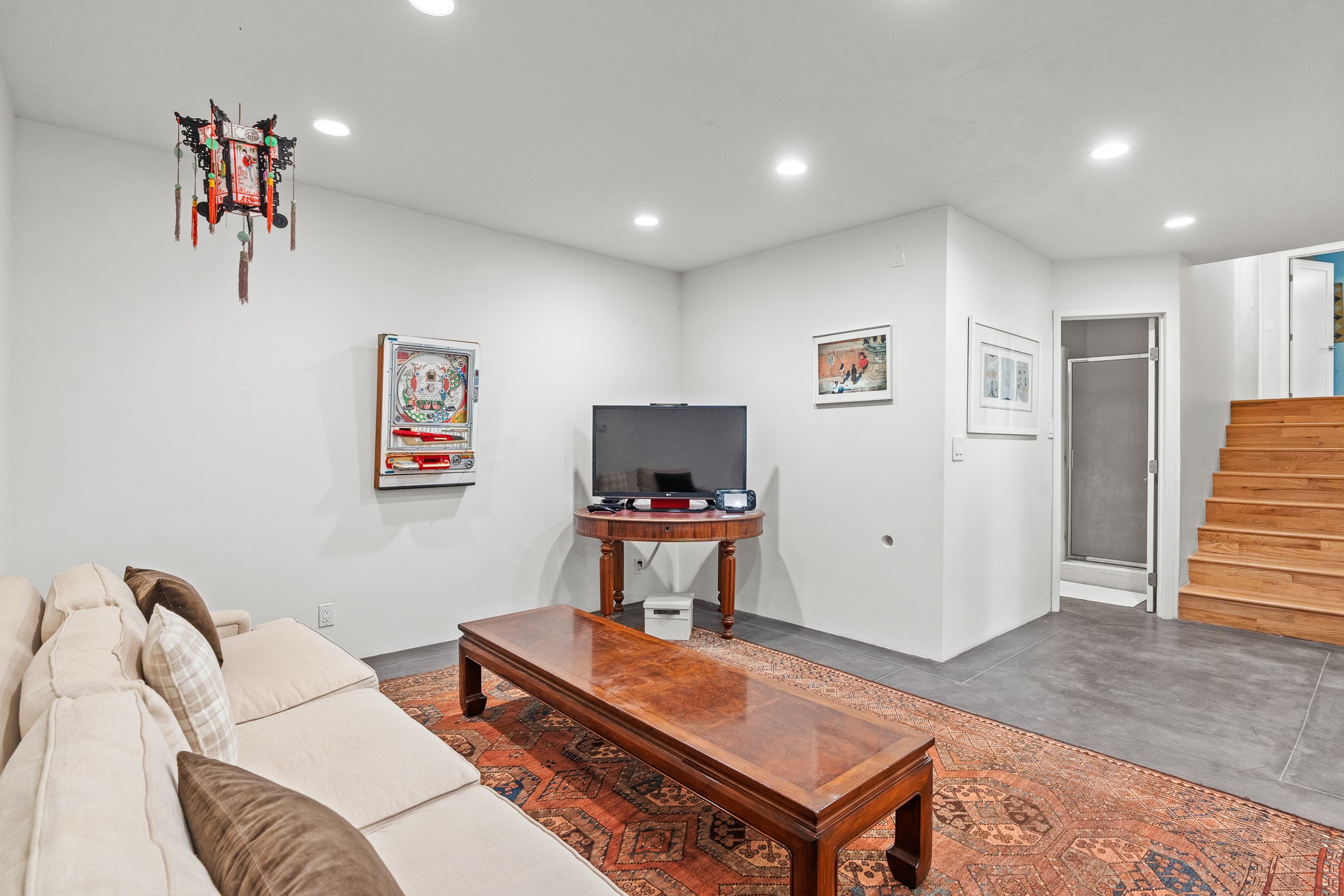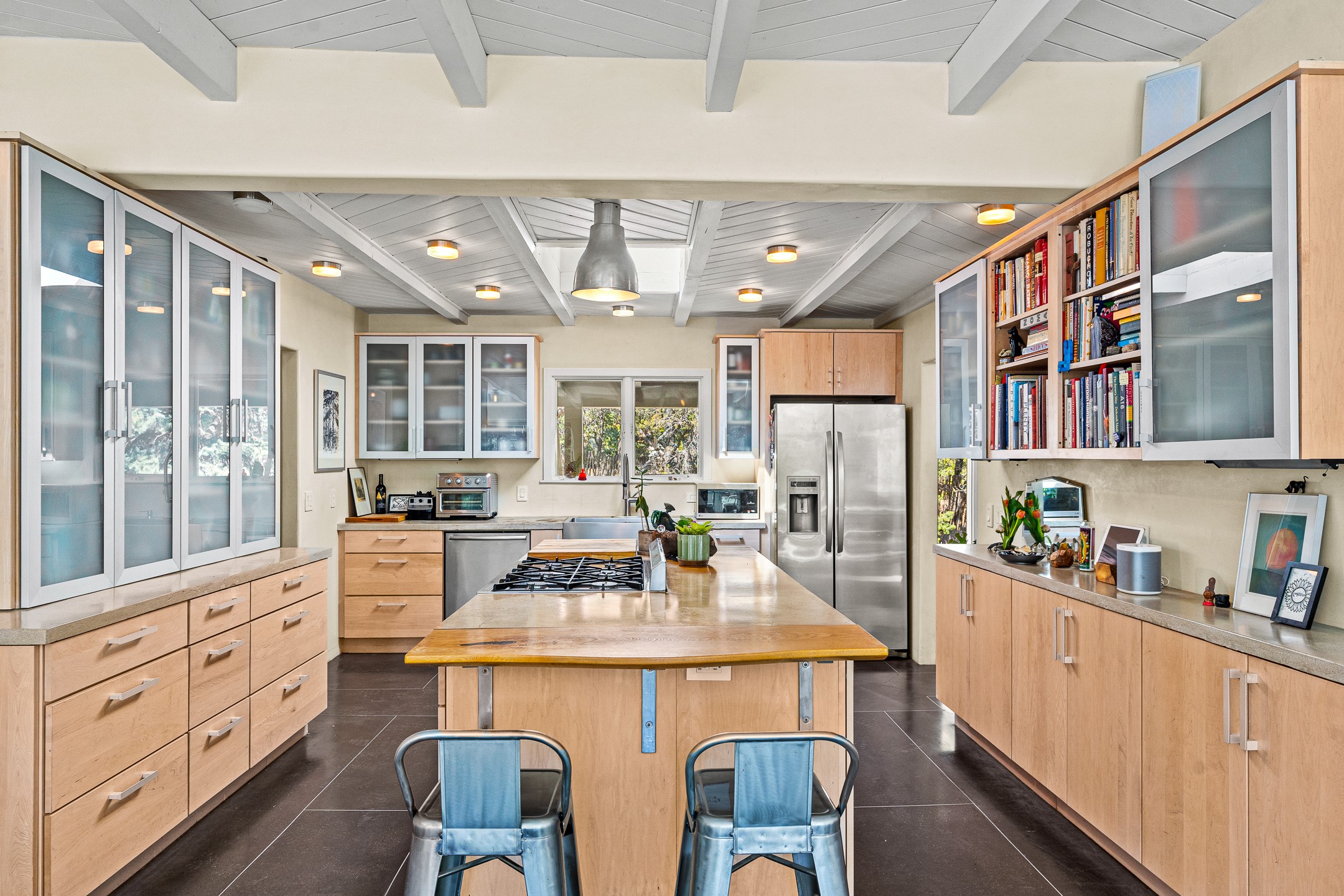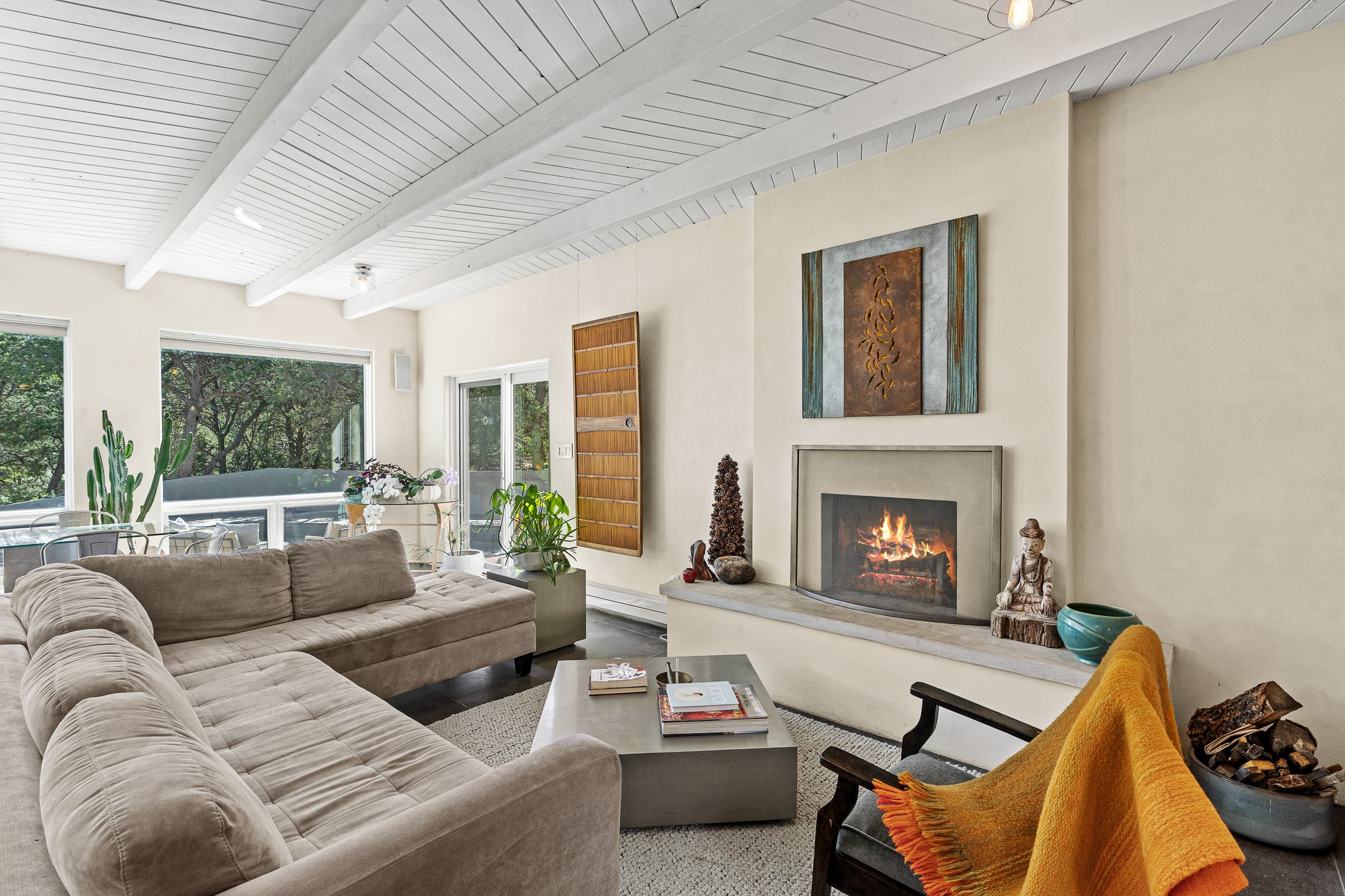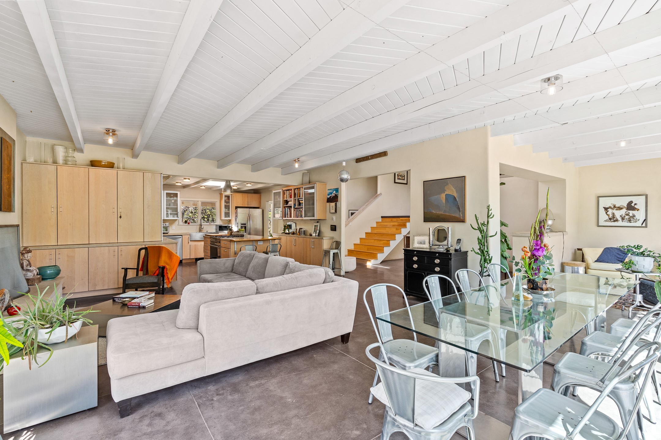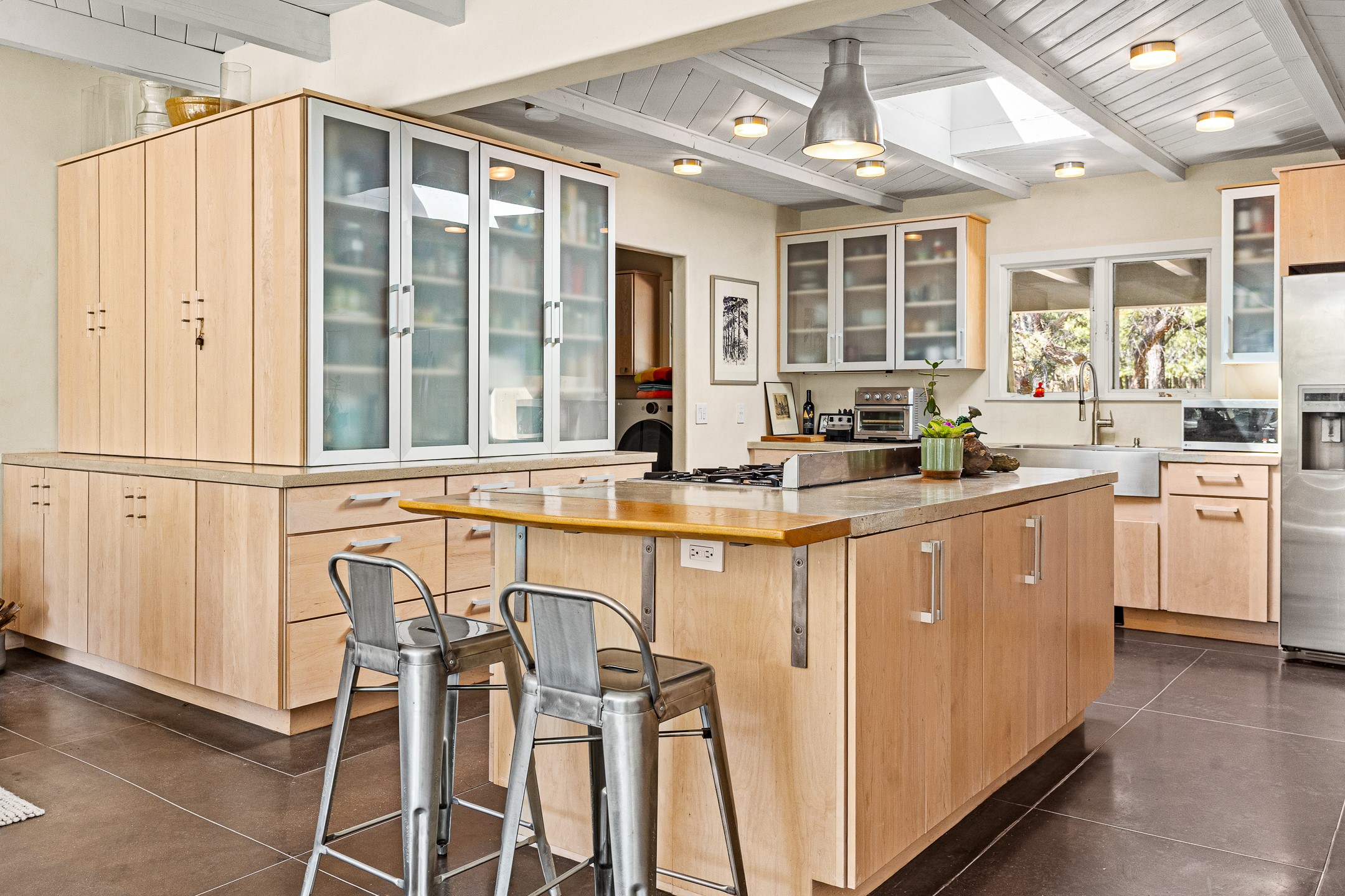 Modern Santa Fe Retreat with Pool, Hot Tub & Sauna on 1.9 Acres. Discover contemporary comfort just off Old Santa Fe Trail. This beautifully designed 4-bedroom, 4-bathroom home offers approx. 3,900 sq. ft. of stylish living space on 1.9 private acres--just 10 minutes from the Santa Fe Plaza. Enjoy a light-filled, open-concept living and dining area with large picture windows that frame views of the expansive backyard, complete with a patio, swimming pool, and hot tub--ideal for entertaining or relaxing under the New Mexico sky. The gourmet kitchen features high-end appliances, plenty of natural light, and a modern layout perfect for cooking and gathering. The spacious primary suite flows into a versatile open area--ideal as a family room, home office, or art studio. Downstairs, three guest bedrooms share a luxurious full bathroom. At the end of the hall is a separate fully finished basement perfect for a family room/game room which includes ample storage space. Adjoining the family room is a cedar sauna and bath for spa-like relaxation. The 1.9 acre lot is adorned by a pinon forest with serene walking trails which connect to the trails of the Mountain Cloud Zen center and the foothills of Santa Fe. This neighborhood boasts the fastest internet in Santa Fe. Whether you're looking for a full-time residence with the perfect work from home environment or a serene escape, this home blends modern amenities with the peaceful charm of Santa Fe living.