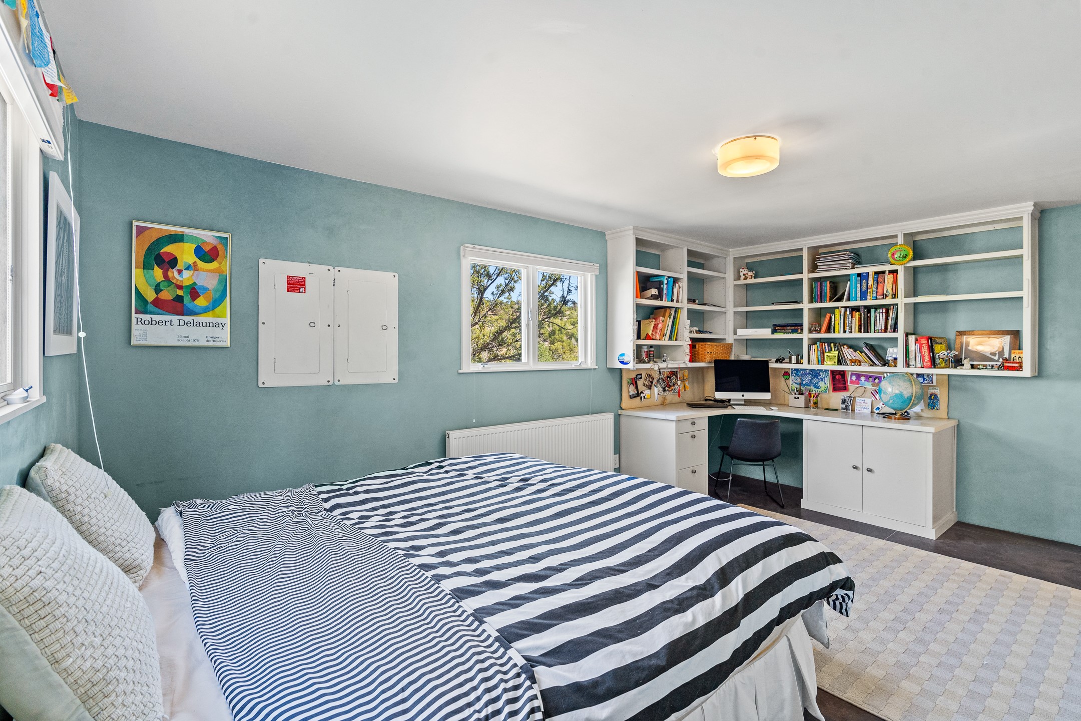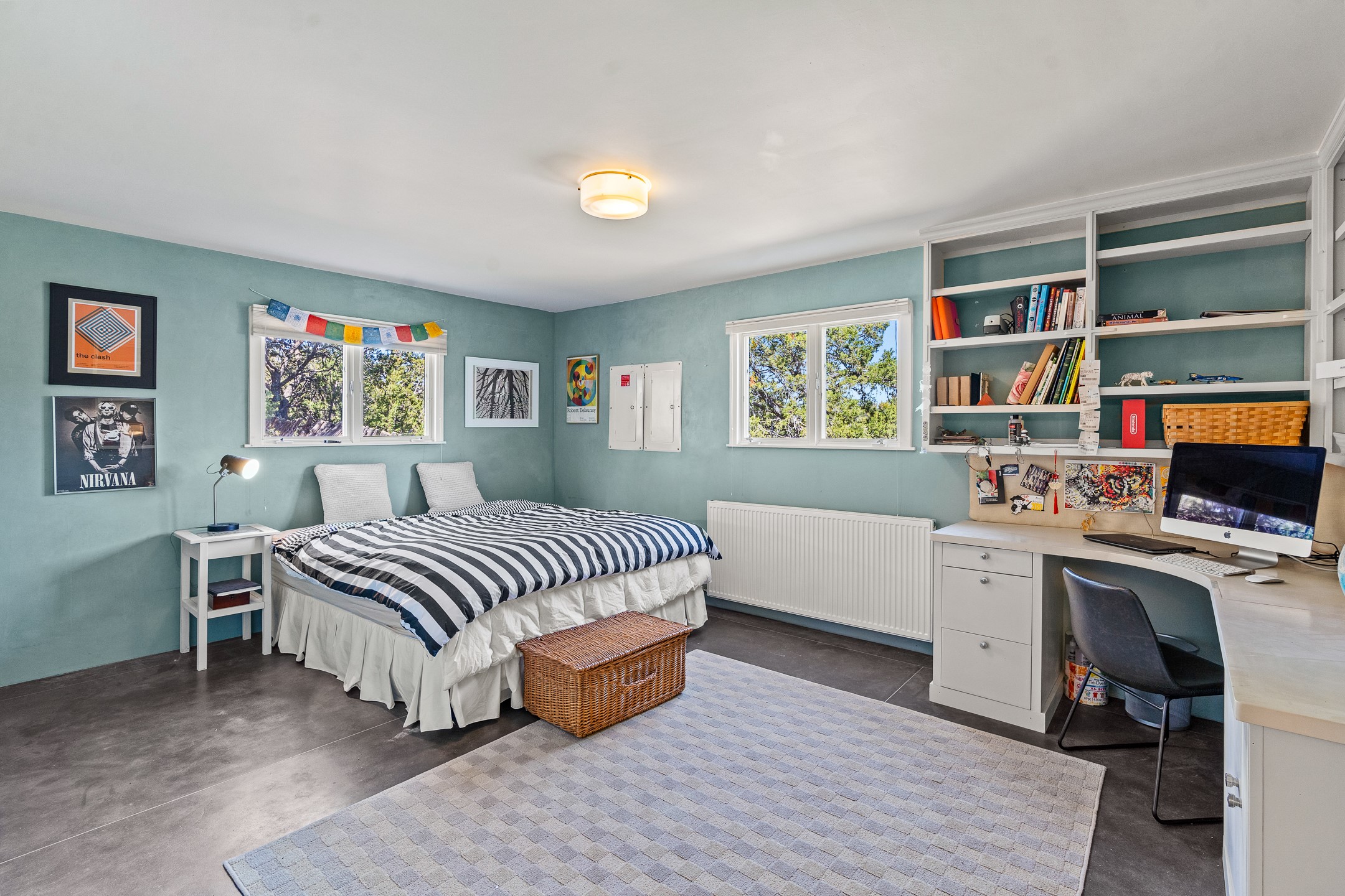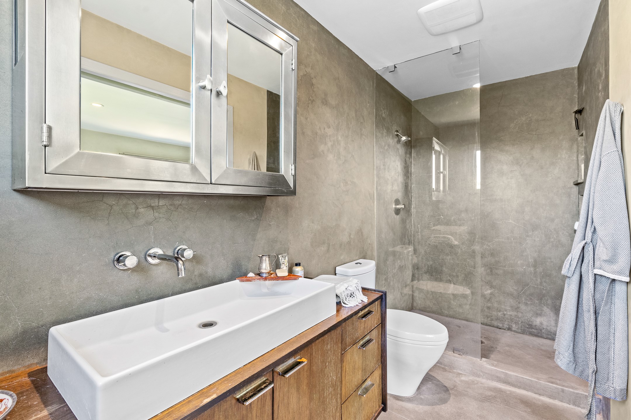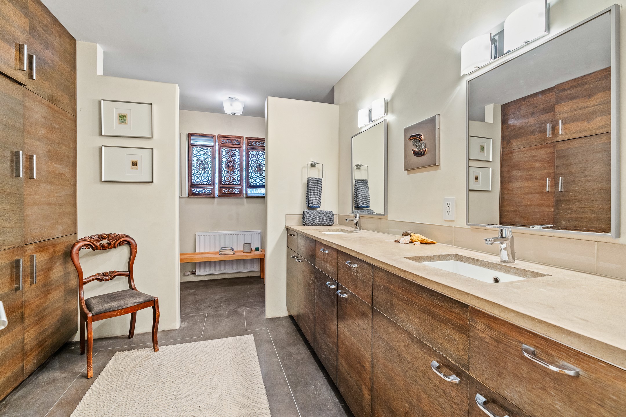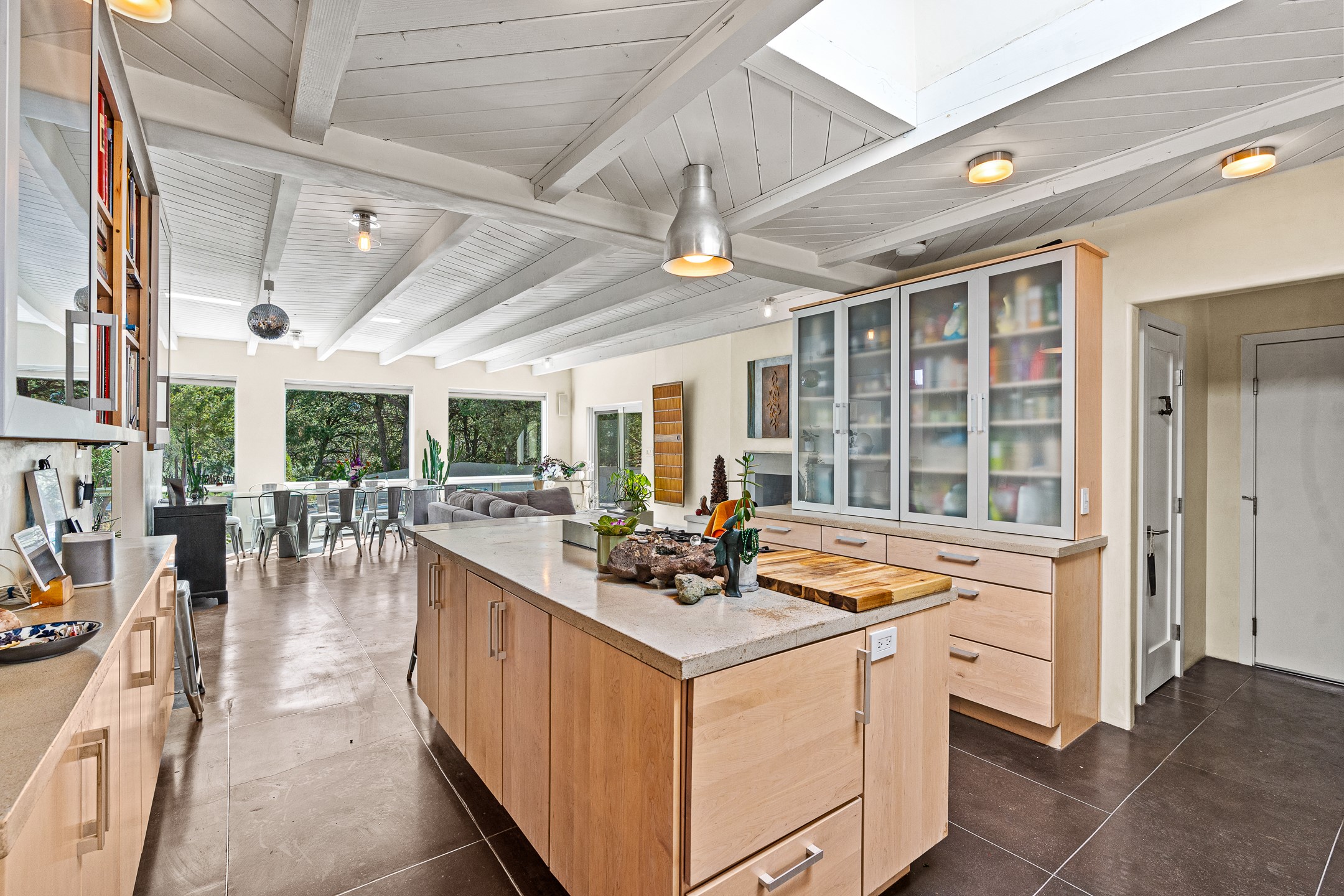 Modern Santa Fe Retreat with Pool, Hot Tub & Sauna on 1.9 Acres. Discover contemporary comfort just off Old Santa Fe Trail. This beautifully designed 4-bedroom, 4-bathroom home offers approx. 3,900 sq. ft. of stylish living space on 1.9 private acres--just 10 minutes from the Santa Fe Plaza. Enjoy a light-filled, open-concept living and dining area with large picture windows that frame views of the expansive backyard, complete with a patio, swimming pool, and hot tub--ideal for entertaining or relaxing under the New Mexico sky. The gourmet kitchen features high-end appliances, plenty of natural light, and a modern layout perfect for cooking and gathering. The spacious primary suite flows into a versatile open area--ideal as a family room, home office, or art studio. Downstairs, three guest bedrooms share a luxurious full bathroom. At the end of the hall is a separate fully finished basement perfect for a family room/game room which includes ample storage space. Adjoining the family room is a cedar sauna and bath for spa-like relaxation. The 1.9 acre lot is adorned by a pinon forest with serene walking trails which connect to the trails of the Mountain Cloud Zen center and the foothills of Santa Fe. This neighborhood boasts the fastest internet in Santa Fe. Whether you're looking for a full-time residence with the perfect work from home environment or a serene escape, this home blends modern amenities with the peaceful charm of Santa Fe living.