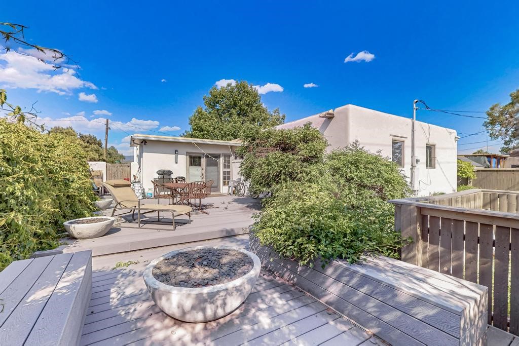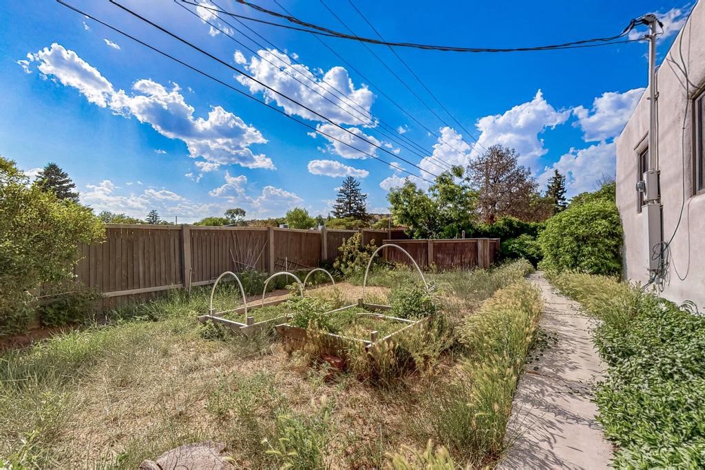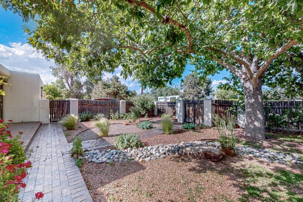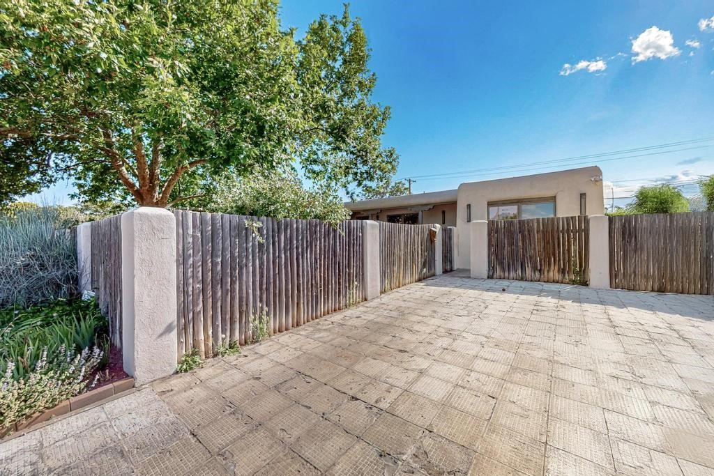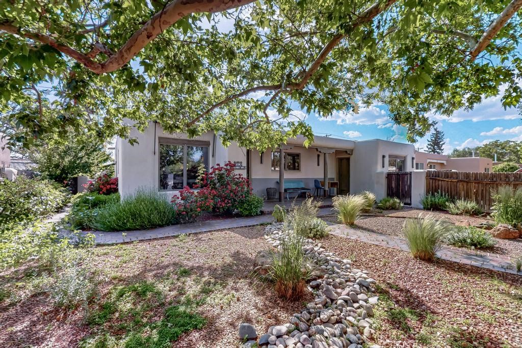 Full of charm and whimsey, this home in the popular Casa Solana neighborhood is just waiting for you! Entering the enclosed courtyard you'll find brick walkways, coyote fencing, and mature landscaping w/ fruit trees and flowers. Inside you'll find wood and tile floors, good light, and a creative Kiva fireplace with river stone accents. There is a separate dinning room off the updated kitchen. Gas range, live edge bar, pebble backsplash, and plenty of storage are bonus's in the kitchen. 3 bedrooms, 3 bathrooms. The hall bath has a lovely amethyst sink and jetted tub. The primary suite is just that. Close the door and you are in an oasis of your own with a lovely bedroom on one side, and a walk in shower/dressing room on the other. This home even has a small finished basement and mechanical room! Out back you'll find a nice sized yard and deck, raised beds, and space for you to make it your own. Close to the Santa Fe River greenbelt, and a short distance to the Santa Fe Plaza, shopping and schools, this house has it all.