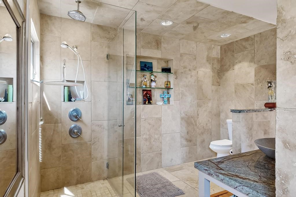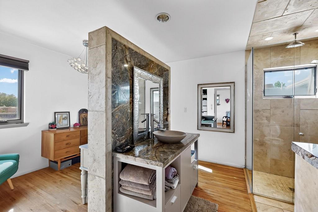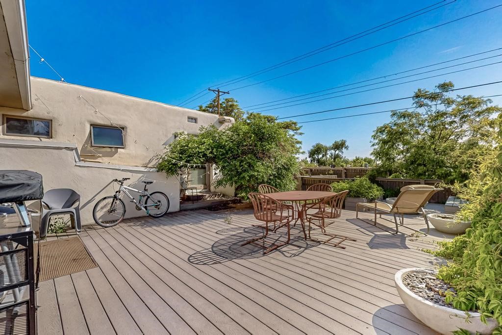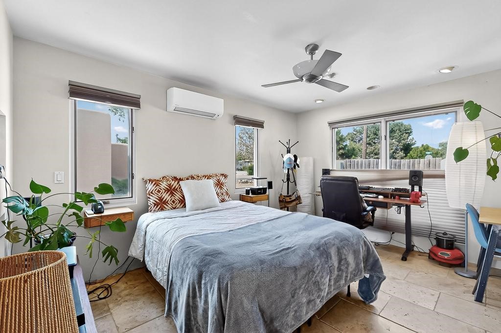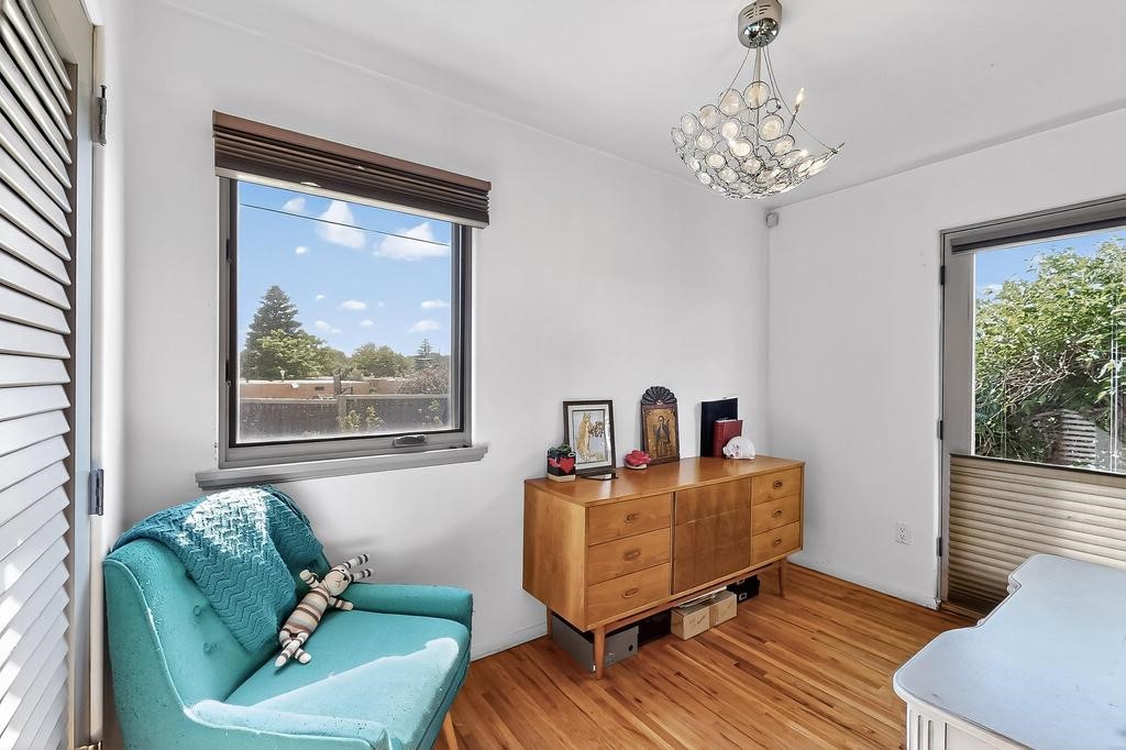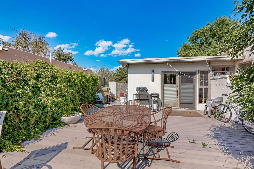 Full of charm and whimsey, this home in the popular Casa Solana neighborhood is just waiting for you! Entering the enclosed courtyard you'll find brick walkways, coyote fencing, and mature landscaping w/ fruit trees and flowers. Inside you'll find wood and tile floors, good light, and a creative Kiva fireplace with river stone accents. There is a separate dinning room off the updated kitchen. Gas range, live edge bar, pebble backsplash, and plenty of storage are bonus's in the kitchen. 3 bedrooms, 3 bathrooms. The hall bath has a lovely amethyst sink and jetted tub. The primary suite is just that. Close the door and you are in an oasis of your own with a lovely bedroom on one side, and a walk in shower/dressing room on the other. This home even has a small finished basement and mechanical room! Out back you'll find a nice sized yard and deck, raised beds, and space for you to make it your own. Close to the Santa Fe River greenbelt, and a short distance to the Santa Fe Plaza, shopping and schools, this house has it all.