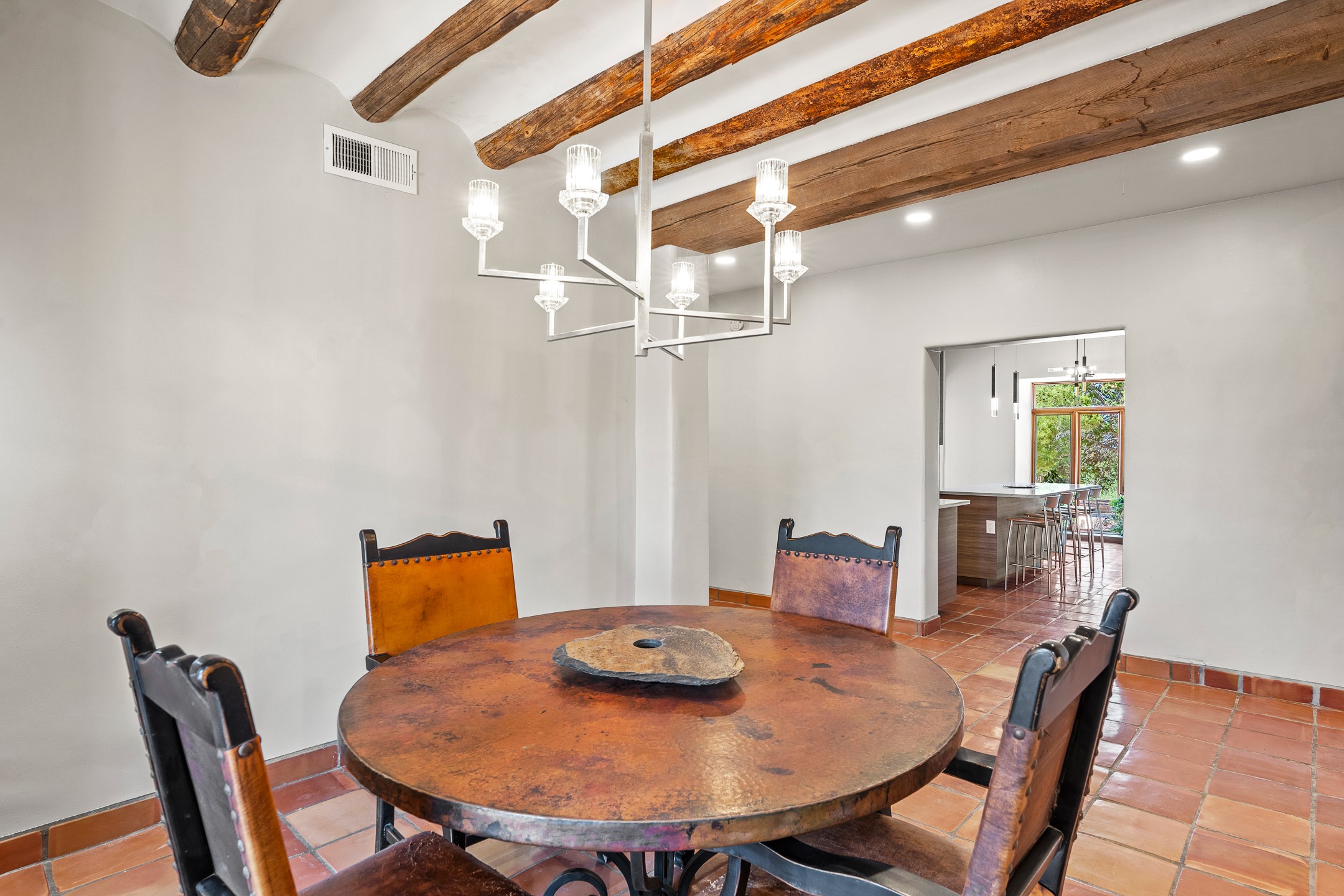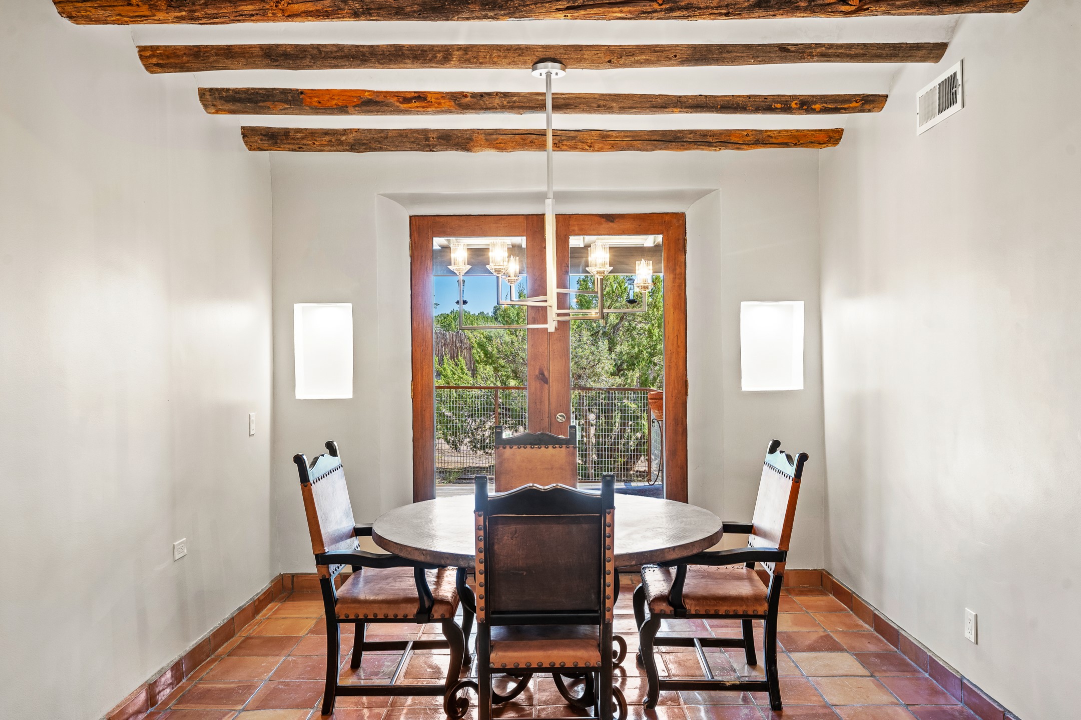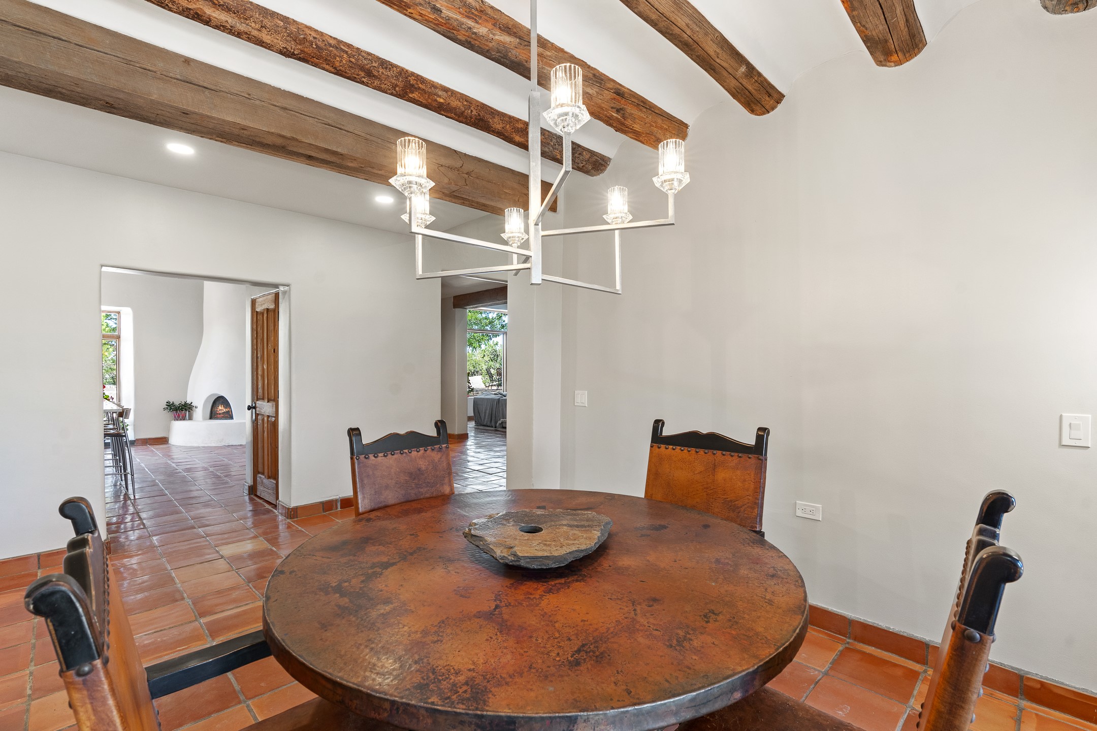 Welcome to this beautiful 3,846 sq. ft. home nestled on 12 fully fenced acres in the peaceful Rancho Alegre community of Santa Fe. Designed with both comfort and functionality in mind, this property is ideal for horse lovers or anyone seeking space, privacy and the beauty of the Southwest.Inside you'll find a warm and inviting home filled with modern Santa Fe charm. The recently remodeled kitchen is a standout, featuring updated cabinetry, modern appliances, and thoughtful finishes that blend style and practicality-perfect for everyday living and entertaining.Step outside to a tranquil flagstone patio with a soothing water feature, ideal for relaxing or gathering friends. The property is completely fenced with a gated entrance offering added privacy and security. Whether you're dreaming of a private retreat, a hobby ranch, or a welcoming home for your animals, this exceptional property delivers. Don't forget to watch the video!