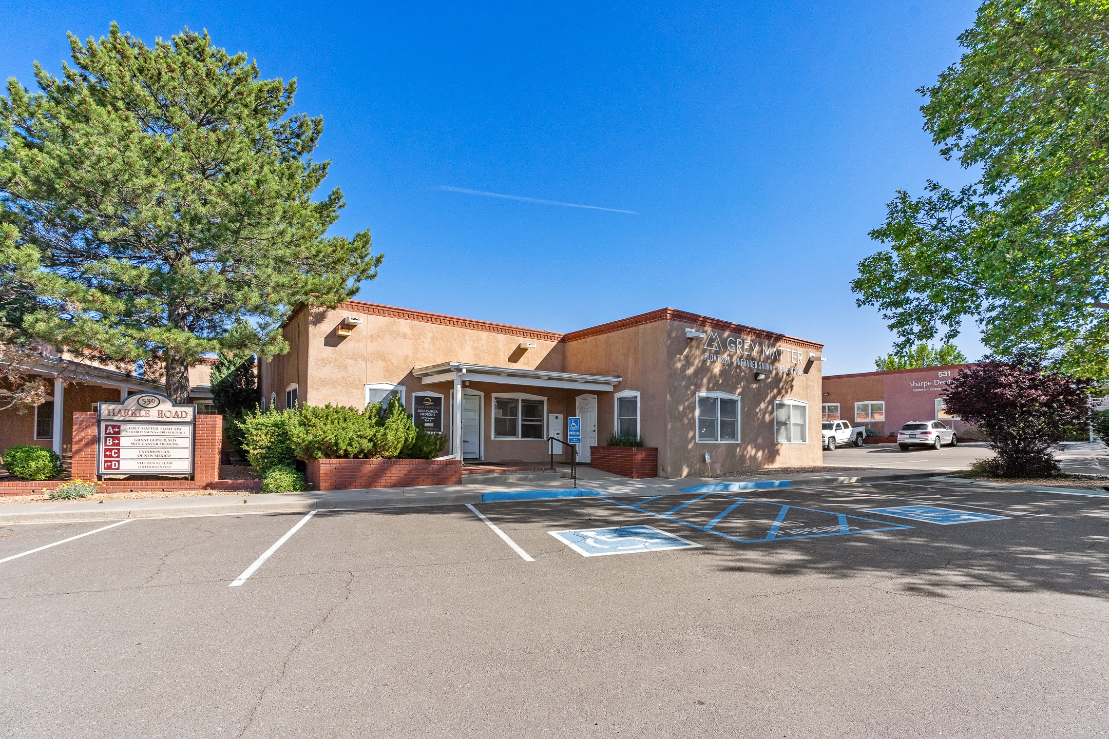 Exceptional Commercial + Business Opportunity in Santa FeAddress: 539 Harkle Road, Suite A, Santa Fe, NMAn incredible opportunity to own both real estate and a thriving wellness business in one of Santa Fe's most desirable professional corridors. Just minutes from downtown and adjacent to CHRISTUS St. Vincent Hospital, this beautifully updated commercial property includes the established and respected Grey Matter Float Spa.Grey Matter Float Spa is a fully operational and highly rated wellness center offering float therapy and infrared sauna services. With a strong brand presence and loyal clientele, the business is known for stress relief, pain management, and relaxation. The facility features four float rooms, a Sunlighten infrared sauna, and a peaceful, spa-like atmosphere.Property Highlights:Fully renovated: new roof, stucco, windows, HVAC, electrical panel, and water heaterAdvanced dehumidifier and filtration system to support float and sauna operationsAntimicrobial flooring and updated plumbing designed for medical and wellness standardsFive flexible-use rooms + one updated bathroomExcellent parking and easy access from St. Michael's corridorBusiness Inclusions:All float spa equipment (four float tanks, sauna)Extensive and loyal client listStrong digital presence with top online reviewsProfessional website, booking system, and operational materials includedRoom for expansion into other wellness services (massage, skincare, etc.)This is a rare, turnkey opportunity ideal for wellness entrepreneurs, healthcare professionals, or investors. The location, brand, and upgrades make it ready for continued growth.Learn more at: https://greymatterfloat.comShowings by appointment only. Don't miss out on this unique opportunity!