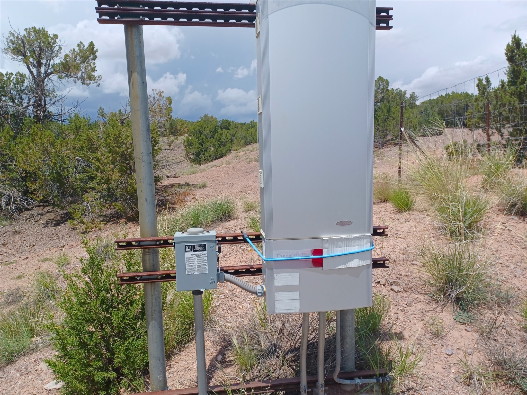Welcome to the exceptional property located at 64 Coyote Trail in Santa Fe County. Situated on over 20 acres, this distinguished luxury home represents a meticulously planned and executed estate, achieving complete independence from fossil fuels. The residence features a contemporary geothermal system for heating and cooling, effectively replacing propane and natural gas, alongside a substantial solar photovoltaic array that not only powers the home but also contributes energy back to the grid. The property maintains a connection to PNM to ensure continued electric service. Furthermore, a private well and septic system enhance this home's self-sufficiency, resulting in remarkably low operating costs throughout the year.The residence encompasses 3,619 square feet and includes three bedrooms and three bathrooms. The master suite is particularly noteworthy, featuring two separate, luxurious ensuite bathrooms on opposing sides, all wheelchair accessible as the rest of the home. Additional interior features include a wood burning fireplace and a formal dining room. The property also boasts a generous 1,786 square foot temperature controlled garage, suitable for 6 + vehicles or use as a workshop. Constructed with superior quality on a concrete slab, this remarkable home reflects uncompromising standards.I invite you to schedule a private viewing of this unique property at your earliest convenience. Please be advised that showing times are limited, and the listing Broker is required to be present for all appointments. There is not a for sale sign on the street and the gate remains locked except for confirmed showings.