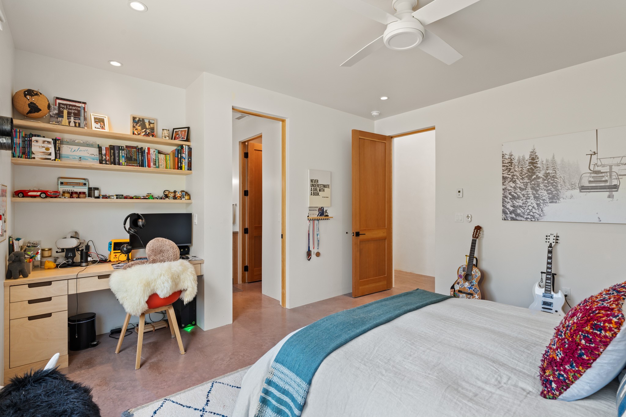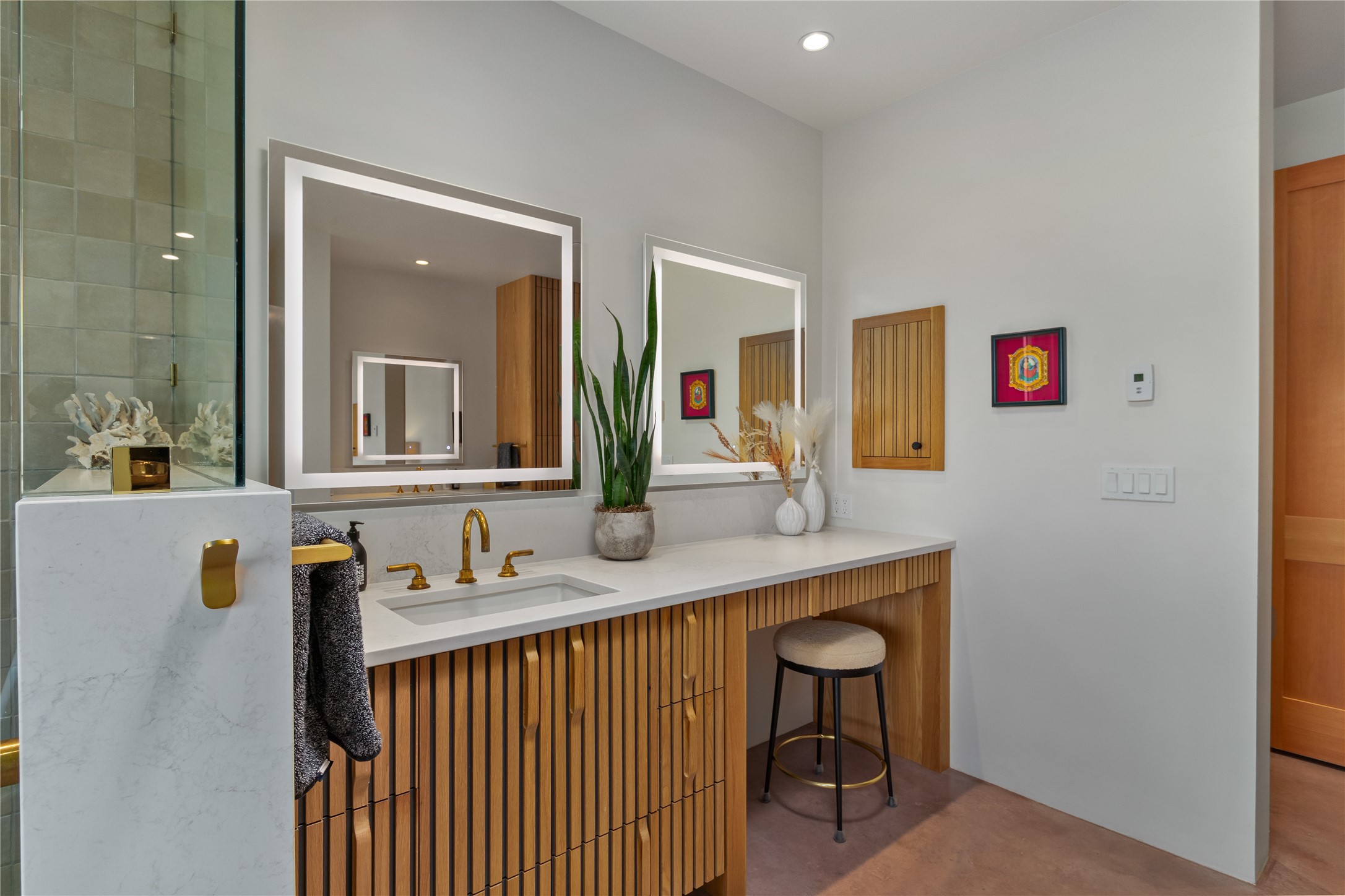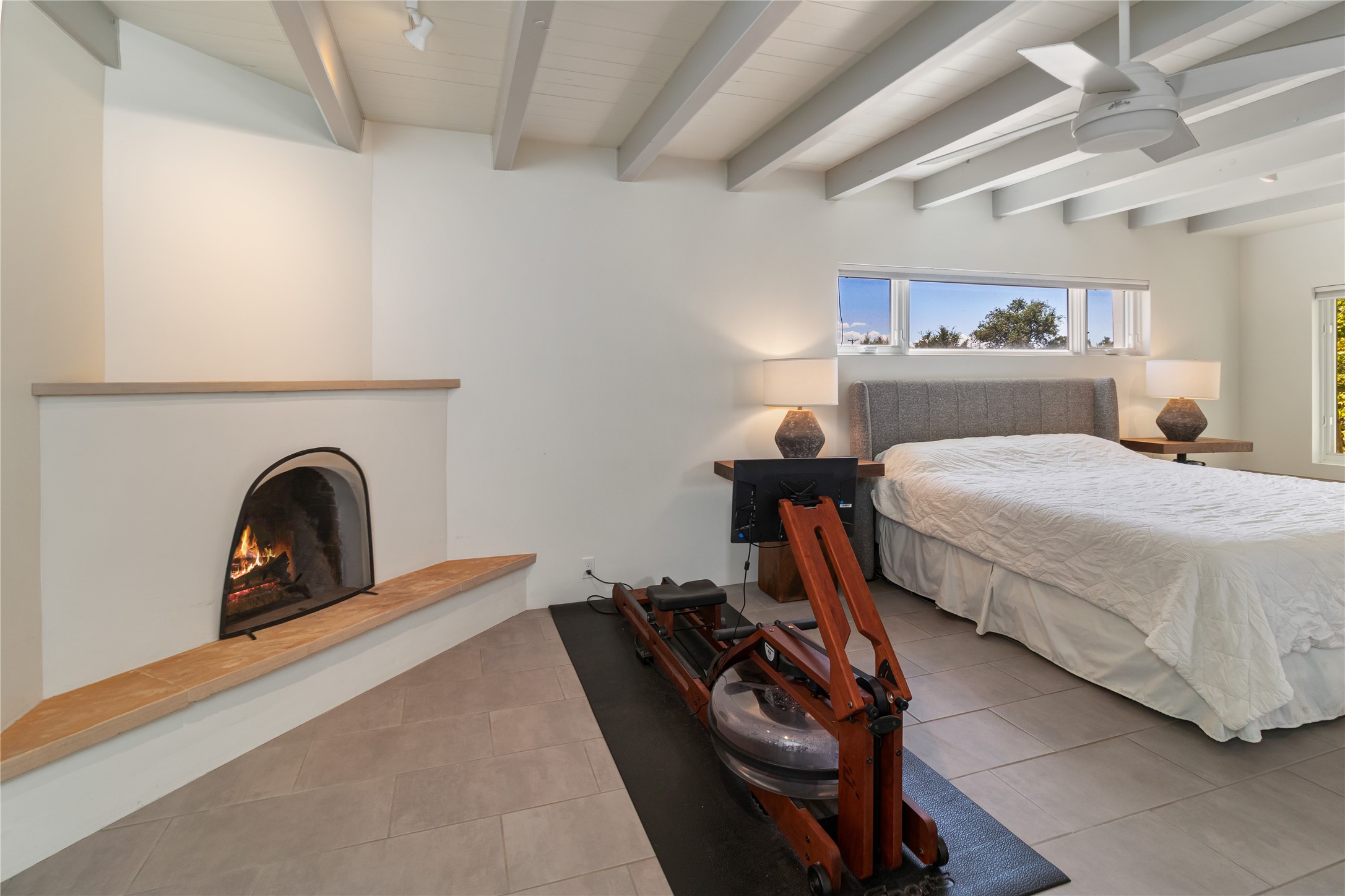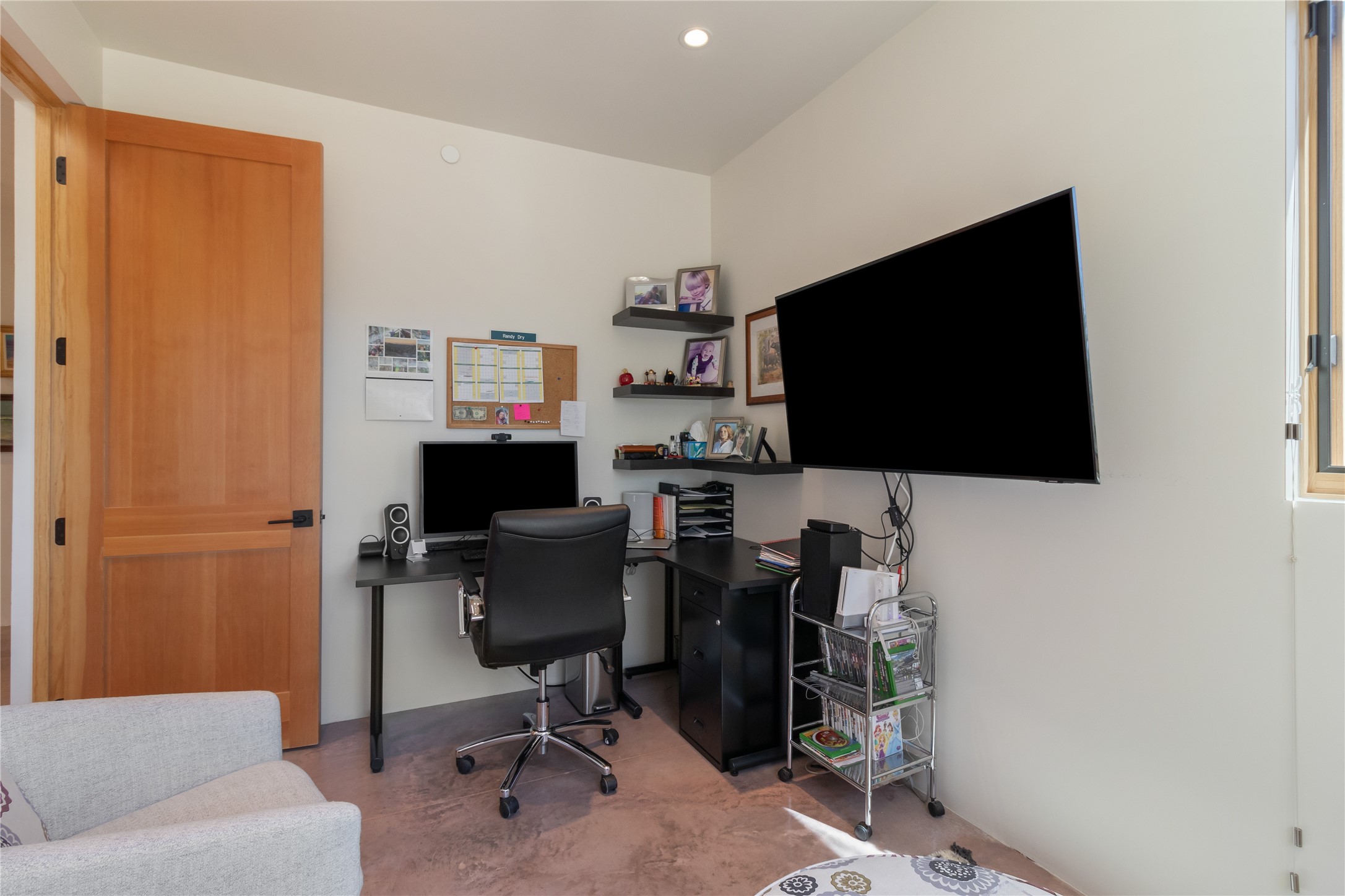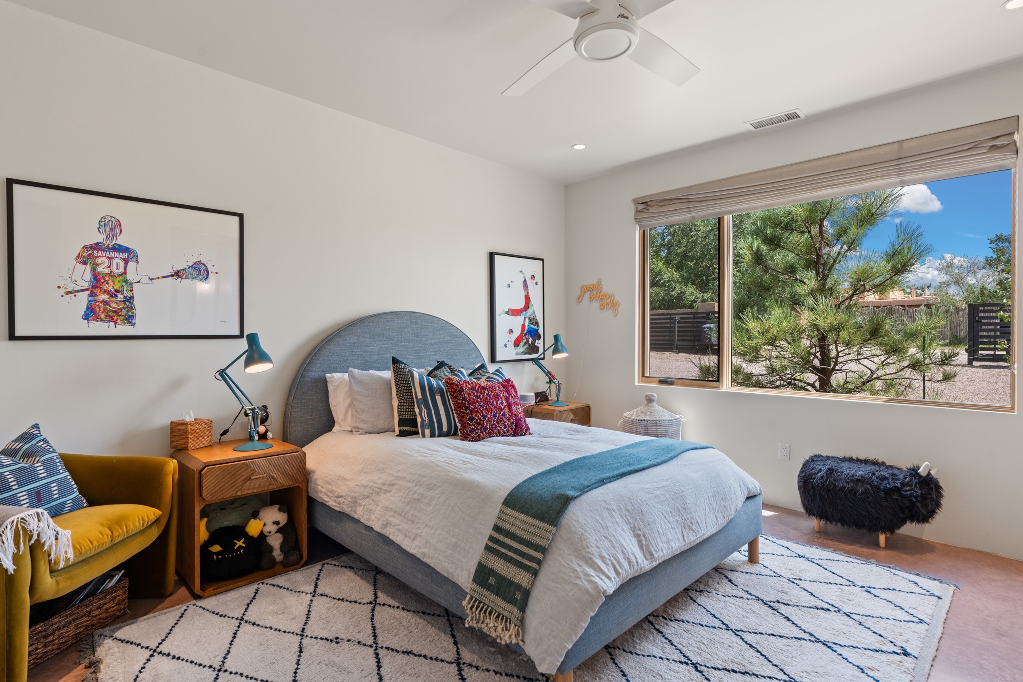 This exquisite 1-acre gated compound that's centrally located & just 2 miles from the historic Santa Fe Plaza features a masterfully designed main residence, spacious guest home, and 6 garage bays for collectors or creatives. The main home offers ~3,875 sq. ft. of refined living with Venetian plaster walls in public areas, custom cabinetry throughout, and 8-ft interior doors. The living and dining rooms feature an impressive dual aspect Ortal fireplace. Soaring ceilings and a wet bar with beverage drawers complete the living room, which opens to a ~1,700 sq. ft. covered patio. Multi-slide door systems open to this impressive patio, that includes built-in Bromic heaters and a 42 inch Wolf grill. The chef's kitchen is anchored by a Lacanche 7-burner stove, pot filler, Sub-Zero refrigerator and freezer, Wolf steam oven, Cove dishwasher and hot/cold tap. The butler's pantry has an abundance of storage, undermount lighting and Red/White EuroCave wine refrigerators. A serene primary suite includes a steam shower, soaking tub, room sized walk-in closet with island, and patio access. Smart touches include Sonos surround system, California Closets, electric patio shades, and a whole-house water filtration system. The guest house (~1,460 sq. ft.) offers generous privacy with a large living area, bedroom, and its own designer fireplace. An attached garage/storage wing (~1,853 sq. ft.) includes a standard 2-car bay plus an oversized 2+ bay garage with 10'x12' doors--ideal for small RVs, boats, or a home gym/studio. Both main and guest garages include EV hookup capabilities. Outdoors, enjoy lush landscaping by McCumber Fine Gardens, fruit trees, raised garden beds, a custom firepit and water feature, and ample space for entertaining--easily accommodating up to 100 guests. Additional highlights include steel electric gates, frosted glass garage doors, radiant heat in main home, and the most luxurious laundry/craft room you will find. This gated retreat is a one-of-a-kind compound.