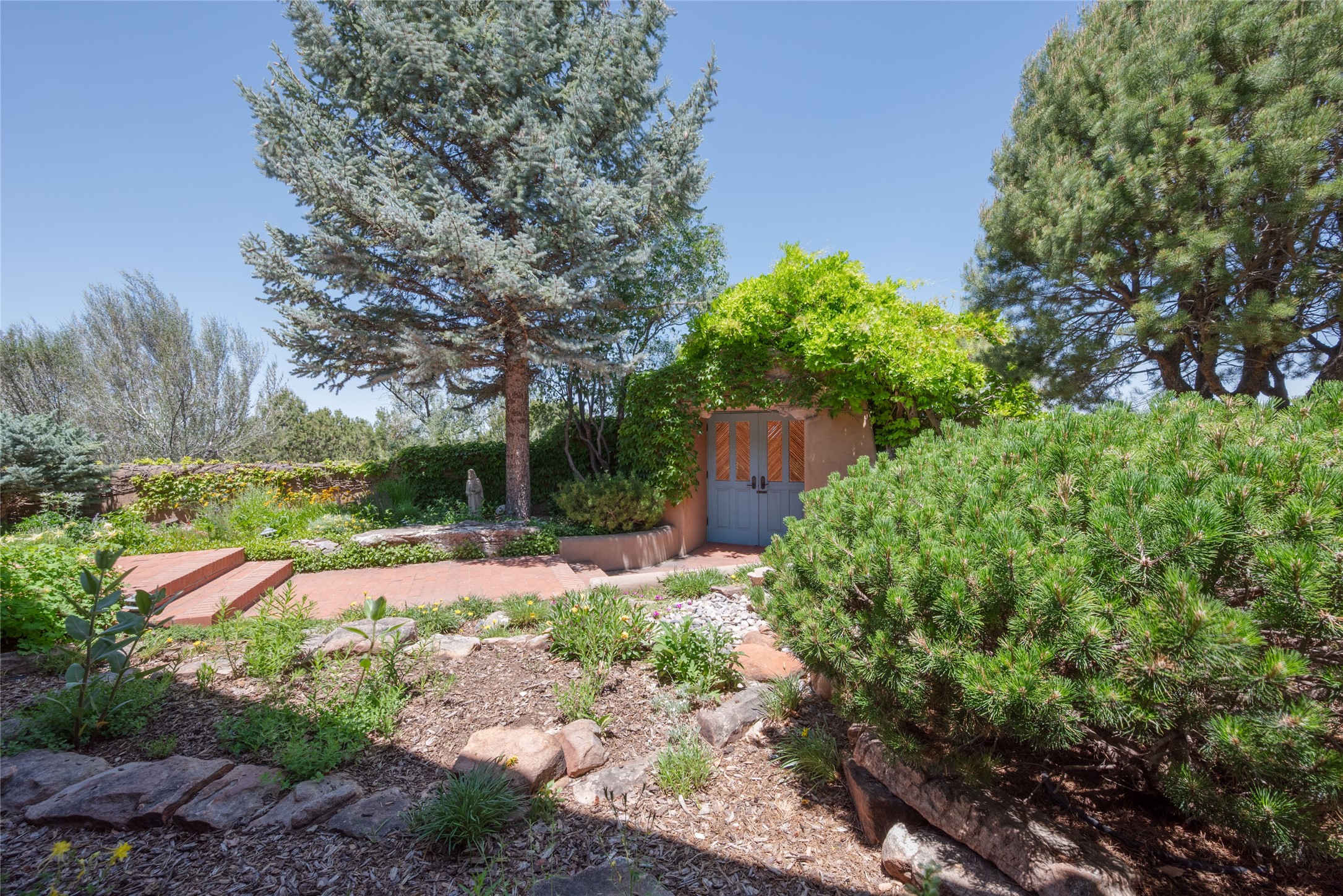 Nestled in a private & beautifully landscaped setting, this 3-bedroom, 2.5-bath custom home offers 3,500 square feet of thoughtfully designed living space. Built with both comfort & style in mind, the residence is set within a master gardener's haven--lushly planted & fully irrigated to maintain the vibrant landscape.You'll appreciate the sense of seclusion & tranquility. This home is essentially single-level, with just 3- interior steps leading to the kitchen & dining area. Inside, Southwest-inspired design elements abound--arched passages & classic kiva fireplaces add character & charm. 9-exterior doors invite natural light & seamless indoor-outdoor living, while Hurd windows frame picturesque garden views from nearly every room.Designed for both everyday living & entertaining, the home features multiple outdoor portals--ideal for gatherings in any season. One portal includes a built-in kiva fireplace & offers a built-in BBQ station--perfect for alfresco dining & sunset cocktails.The spacious kitchen opens to the dining area & includes ample cabinetry, & easy access to outdoor entertaining spaces. A wet bar enhances the flow for hosting, & a dedicated yoga room--complete with direct patio access--invites wellness & retreat.The primary suite & secondary bedrooms offer comfort & privacy, while the two-car garage provides not only vehicle storage but also direct access to mechanicals and additional storage space--ideal for tools, or seasonal items. The home also boasts a fantastic laundry room, built-in cabinetry & counters--yet another area where storage is well-considered.Homeowners enjoy the added benefit of an HOA that includes septic system inspections & scheduled cleanouts.Elegant yet functional, private yet accessible--this timeless home blends Southwestern charm with custom quality, all wrapped in an oasis-like landscape cultivated with care. A rare find for discerning buyers who appreciate craftsmanship, thoughtful details, and the art of outdoor living.