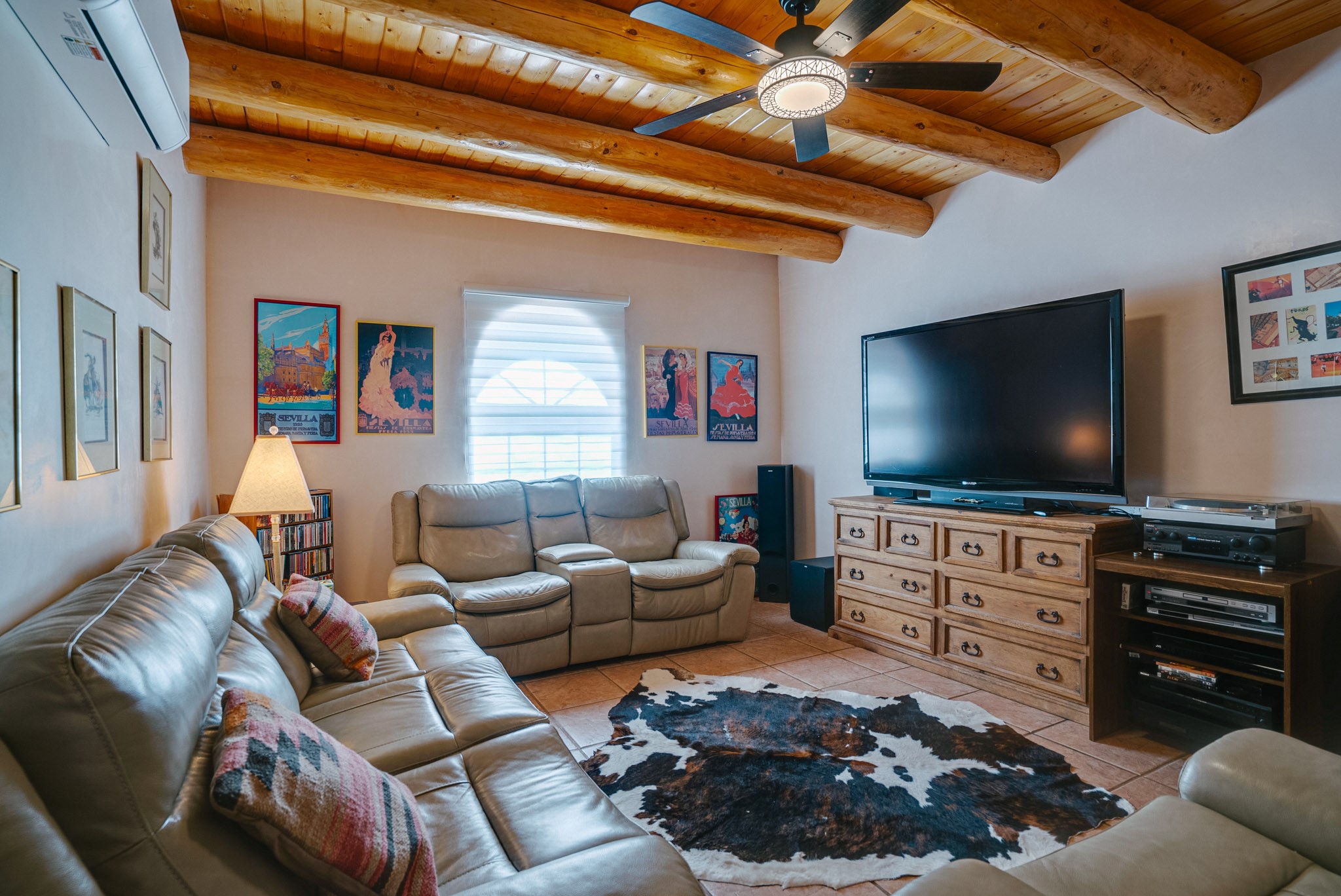 Discover this spacious 4-bedroom, 3-bathroom home offering 3,400 square feet of comfort, style, and Southwestern charm -- all nestled in the desirable Vegas De Taos subdivision. Enjoy the convenience of an in-town location with the tranquility of a secluded .68-acre lot, complete with paved roads, sidewalks, and mature landscaping. This special neighborhood offers so much, including a strong sense of community. The beautifully landscaped property features multiple water features, lush grass, raised garden beds, and a stunning assortment of trees -- including mature conifers, deciduous, and fruit trees. Relax under big blue skies with breathtaking mountain views, and enjoy the easy-care xeriscaping in the front and lush backyard oasis in the rear. Thoughtfully designed rock walls and wooden fences create a variety of distinct, inviting outdoor spaces.The home's grand great room welcomes you with 14' vaulted ceilings, custom woodwork, and radiant floor heating, complemented by efficient split units for year-round comfort. French doors off the dining area open to a spacious covered veranda -- perfect for entertaining or quiet evenings. The kitchen is a dream with stainless steel appliances, a double oven, a smooth-surface cooktop on the island, a 3-basin sink, and an expansive island that seats up to eight. Host family gatherings in the formal dining room or enjoy casual meals around the island.The west wing offers two bright guest bedrooms, a large full bathroom, and a luxurious master suite featuring hickory Pergo flooring, a sitting area or office nook, a whirlpool tub, separate shower, and extra-large walk-in closet. The east wing includes another spacious bedroom, guest bathroom, large pantry, hall closet, and a laundry room leading to the covered breezeway and detached two-car garage.Minutes from downtown Taos, the hospital, and grocery stores, this home offers the perfect blend of convenience, space, and a true homestead feel -- a rare find in Taos!