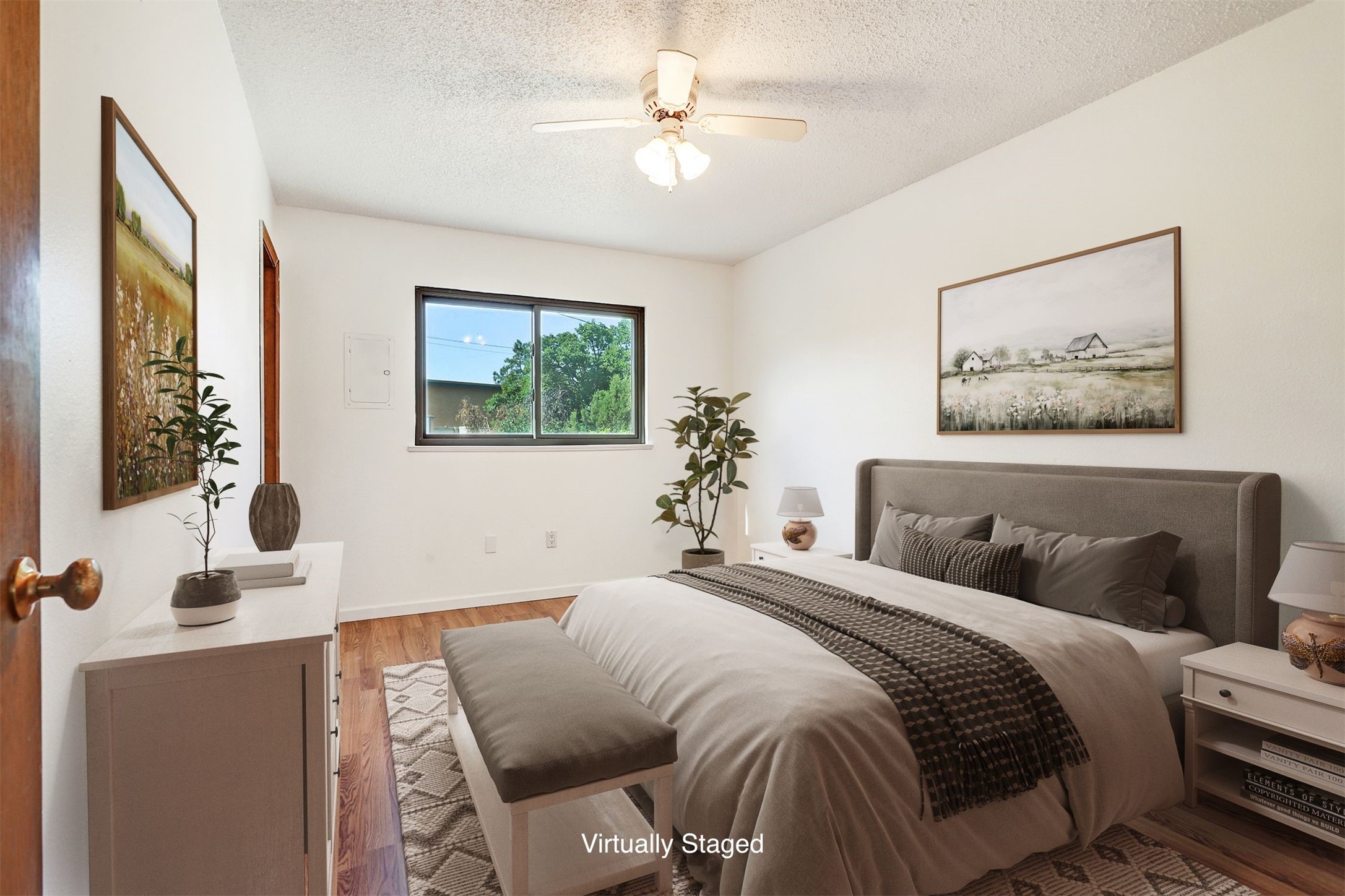 Welcome to this bright and cheerful home, ready for you to make it your own! Freshly painted with tile and laminate flooring throughout, this home is both low-maintenance and full of charm. A sun-filled brick-floor sunroom invites relaxation, while the spacious, fully fenced backyard offers endless possibilities--gardens, outdoor fun, or peaceful retreats. The kitchen features generous storage and comes complete with all appliances. Enjoy energy efficiency with owned solar panels, newer windows, and a durable PVC membrane roof. The oversized garage includes space for storage or hobbies, plus exterior access. Ideally located near parks, schools, and shopping, this home offers comfort & convenience.