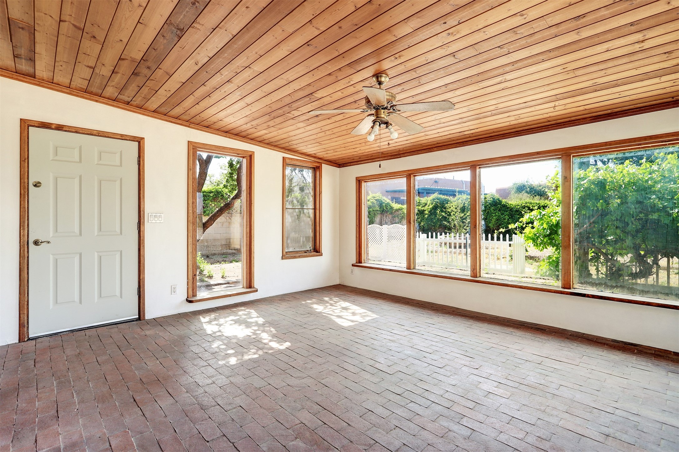 Welcome to this bright and cheerful home, ready for you to make it your own! Freshly painted with tile and laminate flooring throughout, this home is both low-maintenance and full of charm. A sun-filled brick-floor sunroom invites relaxation, while the spacious, fully fenced backyard offers endless possibilities--gardens, outdoor fun, or peaceful retreats. The kitchen features generous storage and comes complete with all appliances. Enjoy energy efficiency with owned solar panels, newer windows, and a durable PVC membrane roof. The oversized garage includes space for storage or hobbies, plus exterior access. Ideally located near parks, schools, and shopping, this home offers comfort & convenience.
