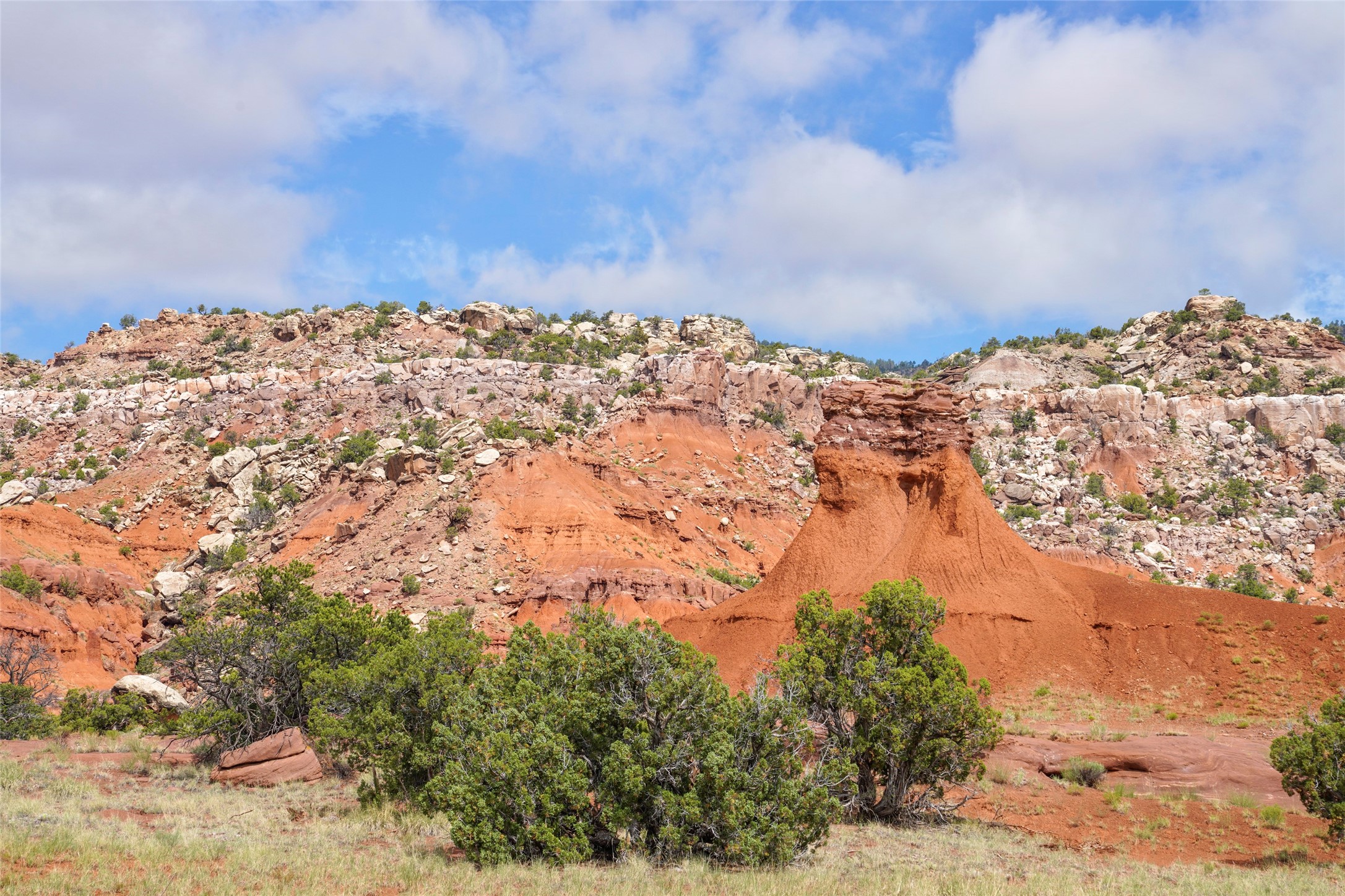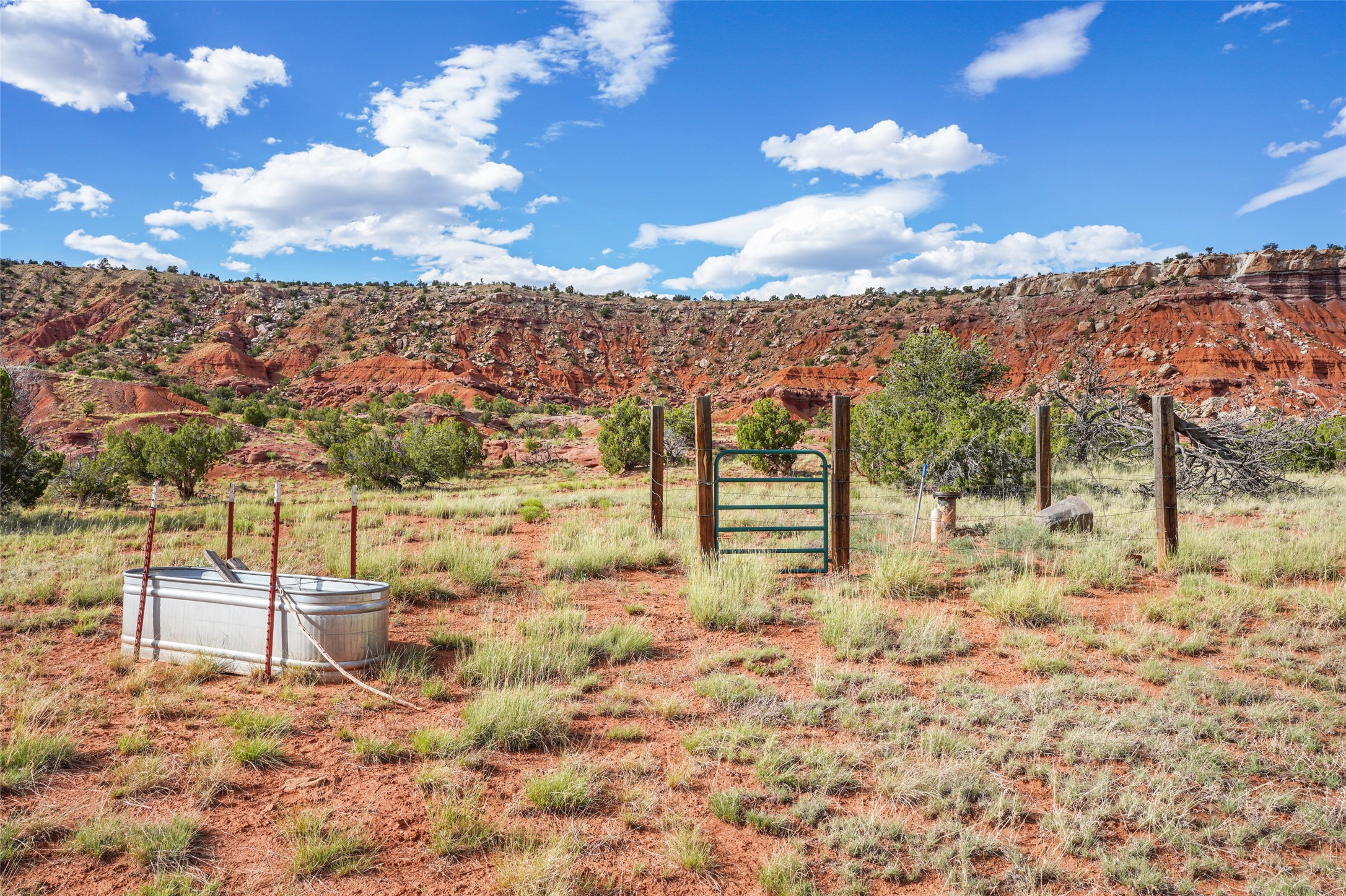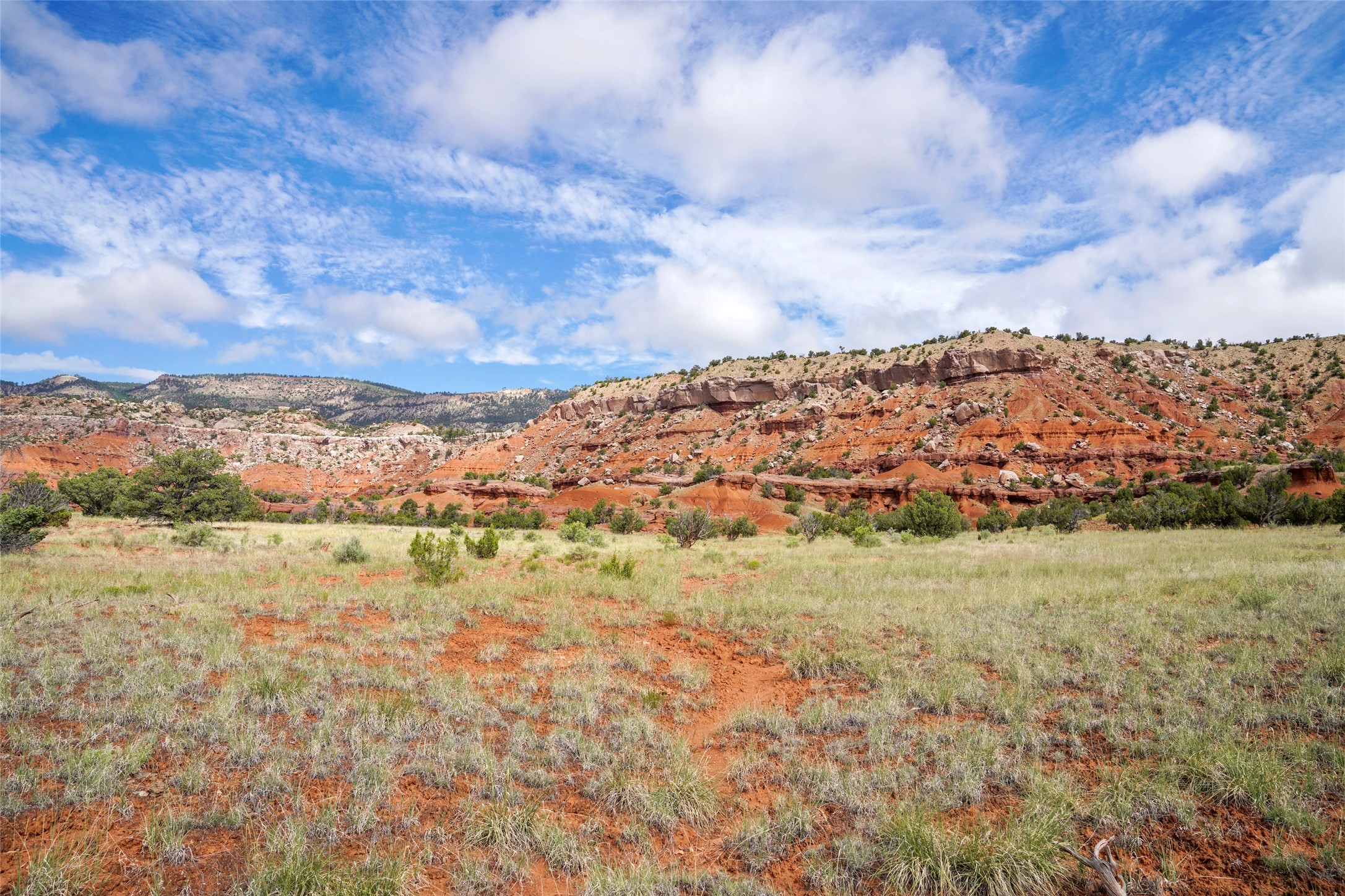 Red Valley Ranch spans 500 acres of vivid red rock formations, sculpted hoodoos, and layered sandstone that tell the story of northern New Mexico's geologic past. The property has a well and public electricity, making it ready for thoughtful development. A conservation easement ensures the land remains intact, and it adjoins other large, non-dividable tracts that protect long-term privacy and open views. Several building areas lend themselves to distinctive architecture and equestrian use, with open ground perfect for riding. The property borders over 50,000 acres of the Rio Chama River Canyon Wilderness and connects to New Mexico State Lands and the Santa Fe National Forest, offering seamless access to hiking, horseback riding, and exploring. From the top of nearby Mesa Alta, you'll take in panoramic views of Cerro Pedernal, the Rio Puerco, Ghost Ranch, and Abiquiu Lake--scenery that has drawn artists and explorers for generations. Spring and summer monsoons bring the high desert to life, with wildflowers like Indian paintbrush, sego lily, and others blooming across the landscape. Elk, deer, and other wildlife regularly move through this untamed terrain, crossing in from the surrounding wilderness. Red Valley Ranch offers a rare balance of privacy, access, and connection to the land.