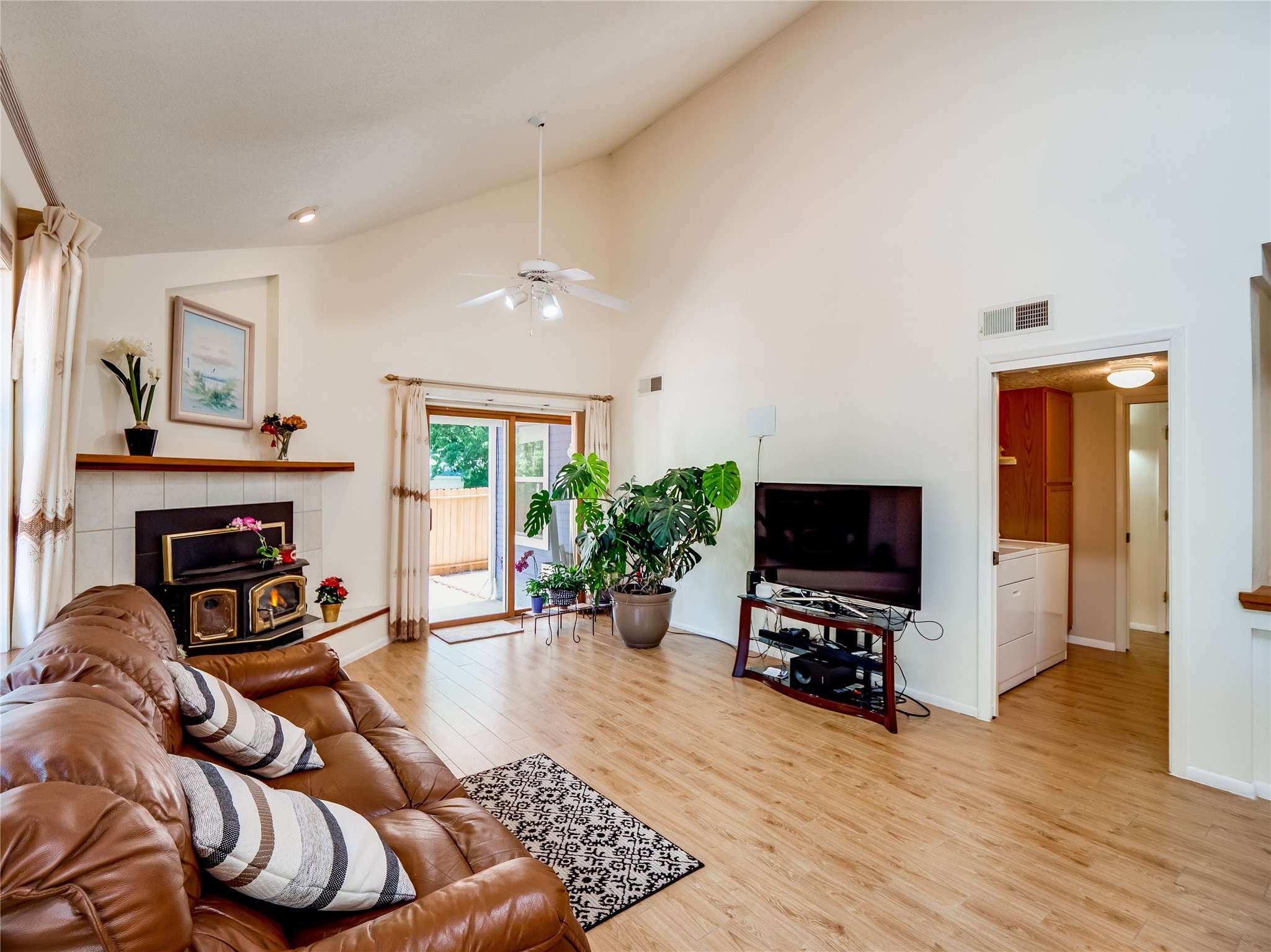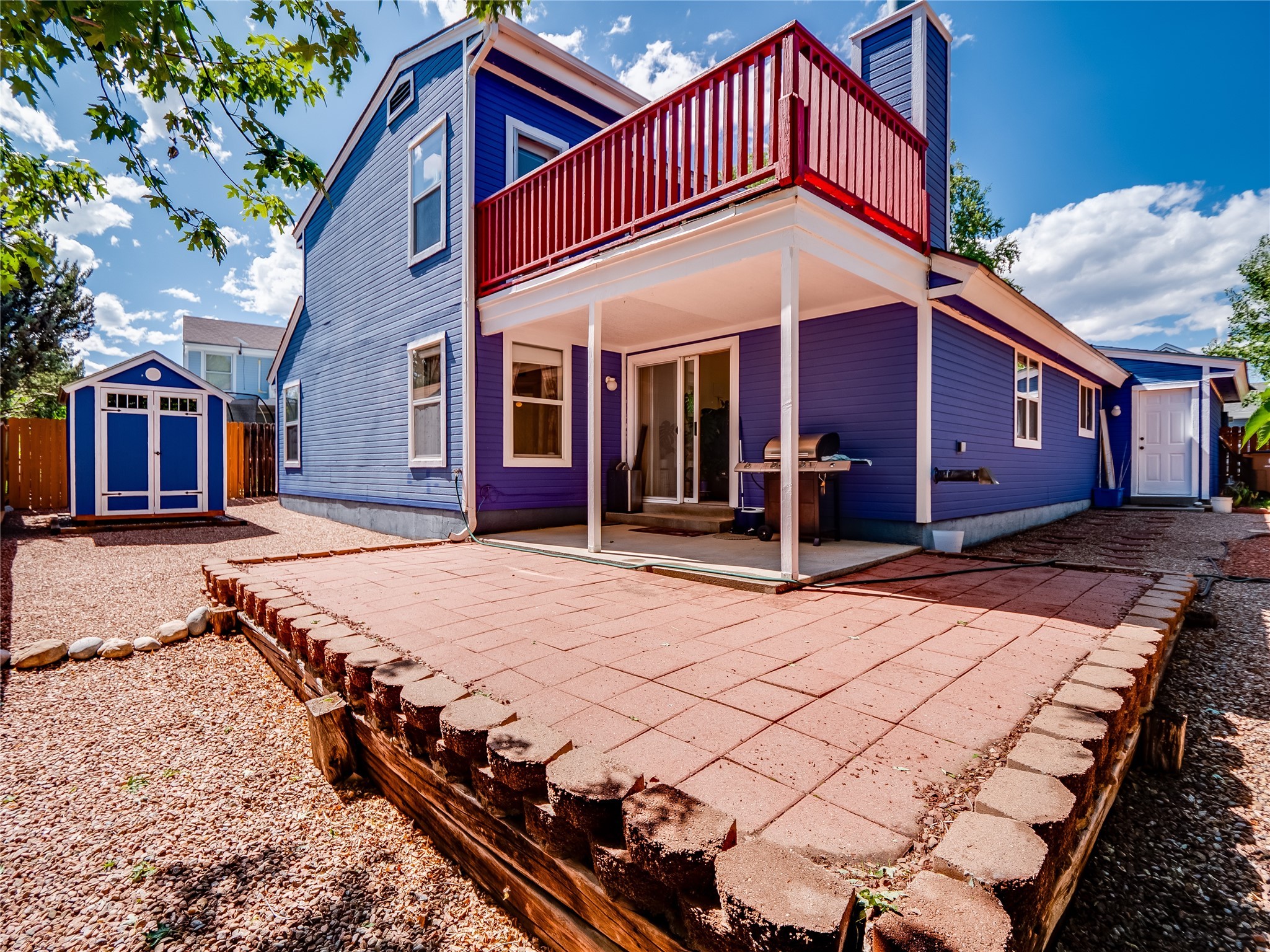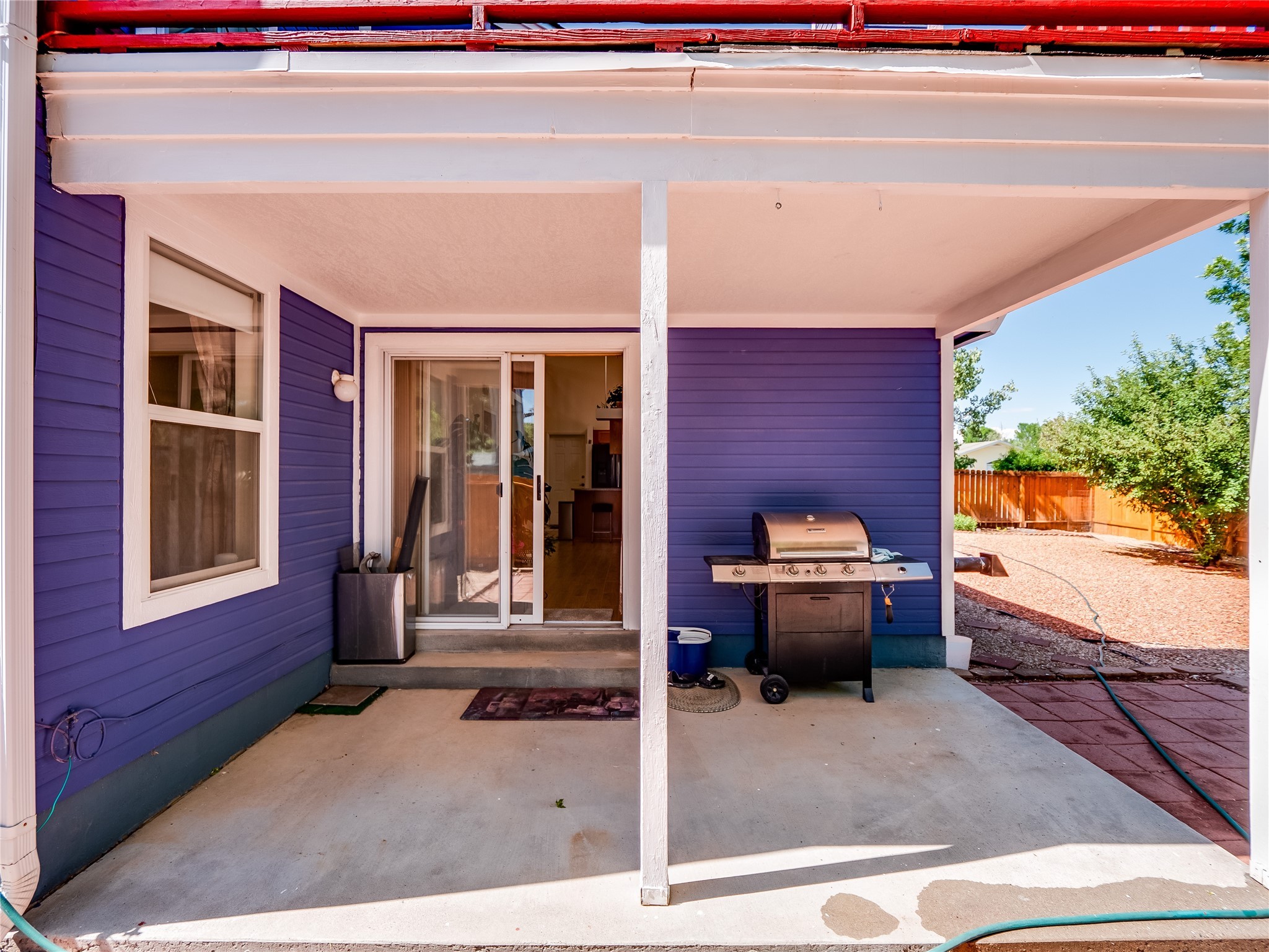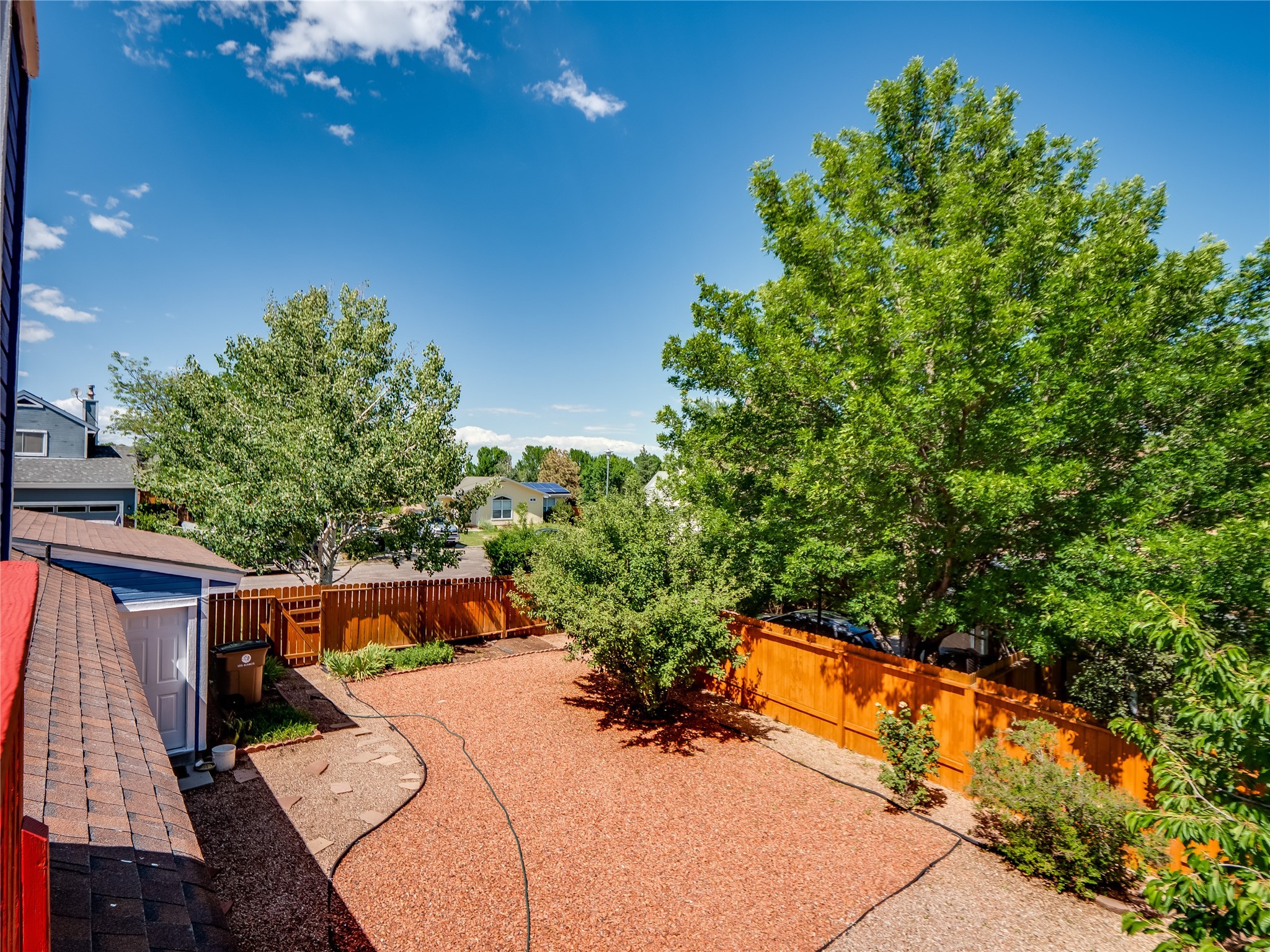 Welcome to this bright and inviting two-story home in the desirable North Mesa neighborhood, perfectly situated near parks, stables, scenic trails, and schools. A lush green front lawn creates a striking contrast against the charming blue exterior, while mature landscaping and colorful flower beds add to the home's curb appeal. Step inside the tile-floored foyer that continues into the main areas and take in the open-concept main level, where vaulted ceilings and strategically placed skylights fill the space with natural light. The expansive living room flows effortlessly into an intimate dining area, making it ideal for both entertaining guests and enjoying quiet nights at home. Just a step up, the kitchen features an abundance of warm wood cabinetry, sleek stainless steel appliances, and convenient bar-top seating. It opens to the bright family room, complete with a cozy fireplace insert and sliding glass doors that lead out to the serene backyard and covered patio--perfect for summer lounging or evening get-togethers. Off the family room, a practical laundry area connects to a hallway leading to three carpeted guest bedrooms and a full guest bath with a single sink vanity and a tiled shower/tub combo. Upstairs, a spacious open loft overlooks the living and kitchen areas below and offers a versatile space for a game room, office, or media nook. Tucked away for privacy, the generous primary en-suite features skylights, a walk-in closet, and its own private deck--ideal for morning coffee or stargazing at night. The en-suite bathroom includes tile flooring, a large single sink vanity, a linen closet, and a beautifully tiled walk-in shower with a sliding glass enclosure. The backyard is designed for low maintenance and maximum enjoyment, featuring mature trees and shrubs, garden beds, a storage shed, and a covered patio. There's also easy access to the attached two car garage. This North Mesa gem has it all--comfort, charm, and convenience. Schedule your showing today!
