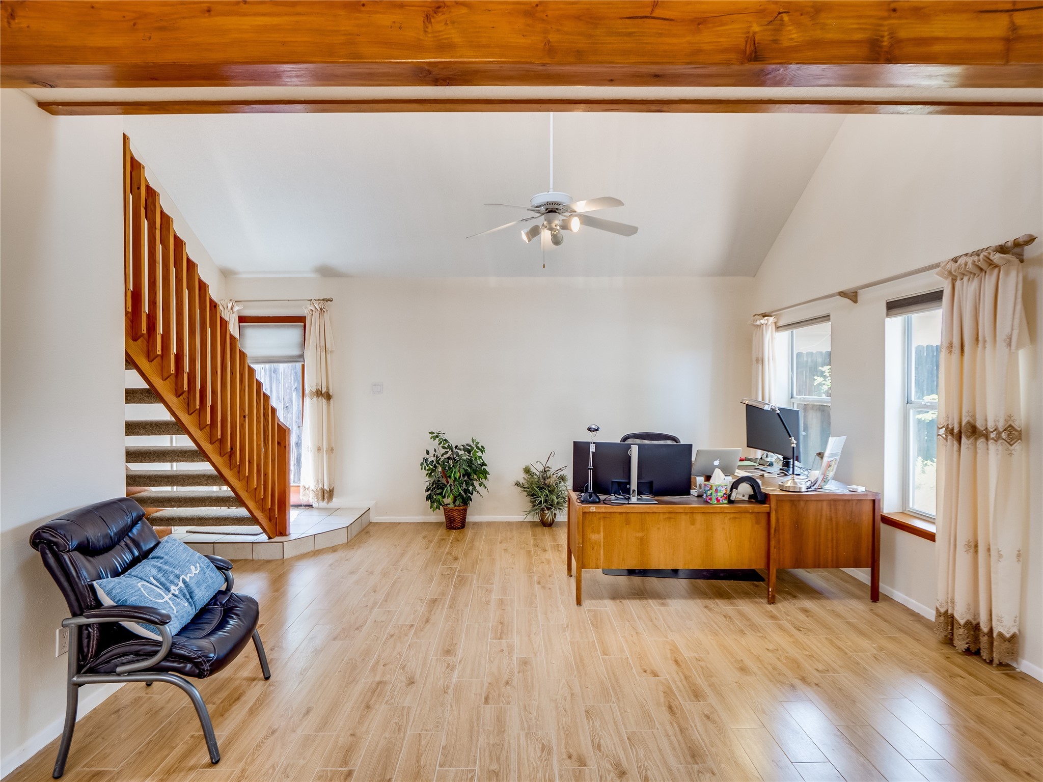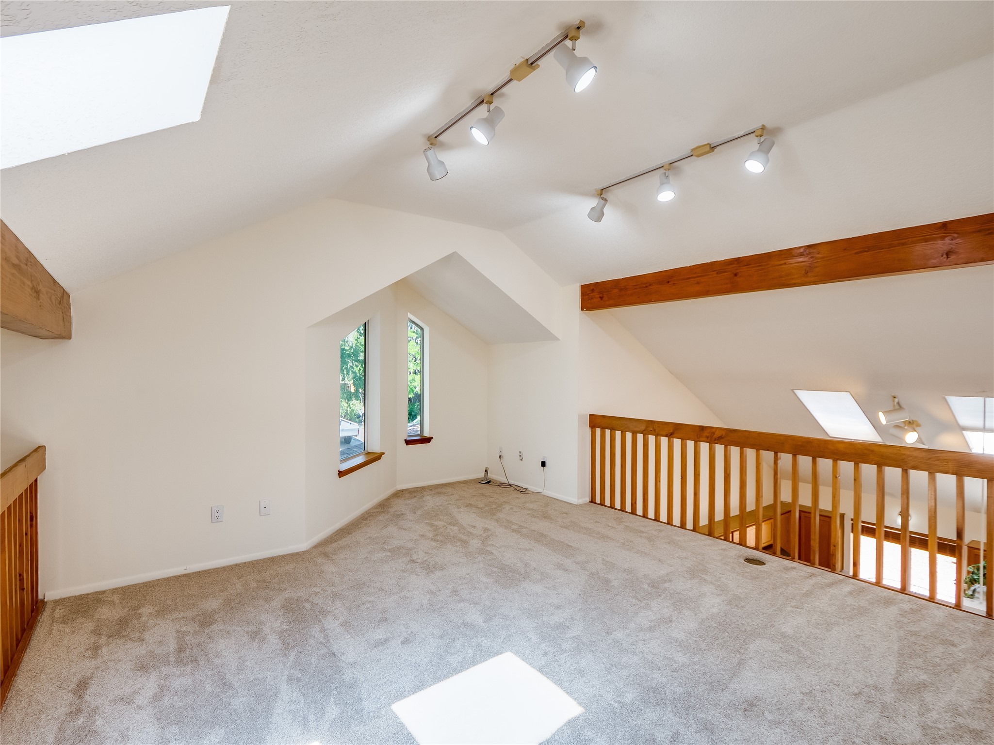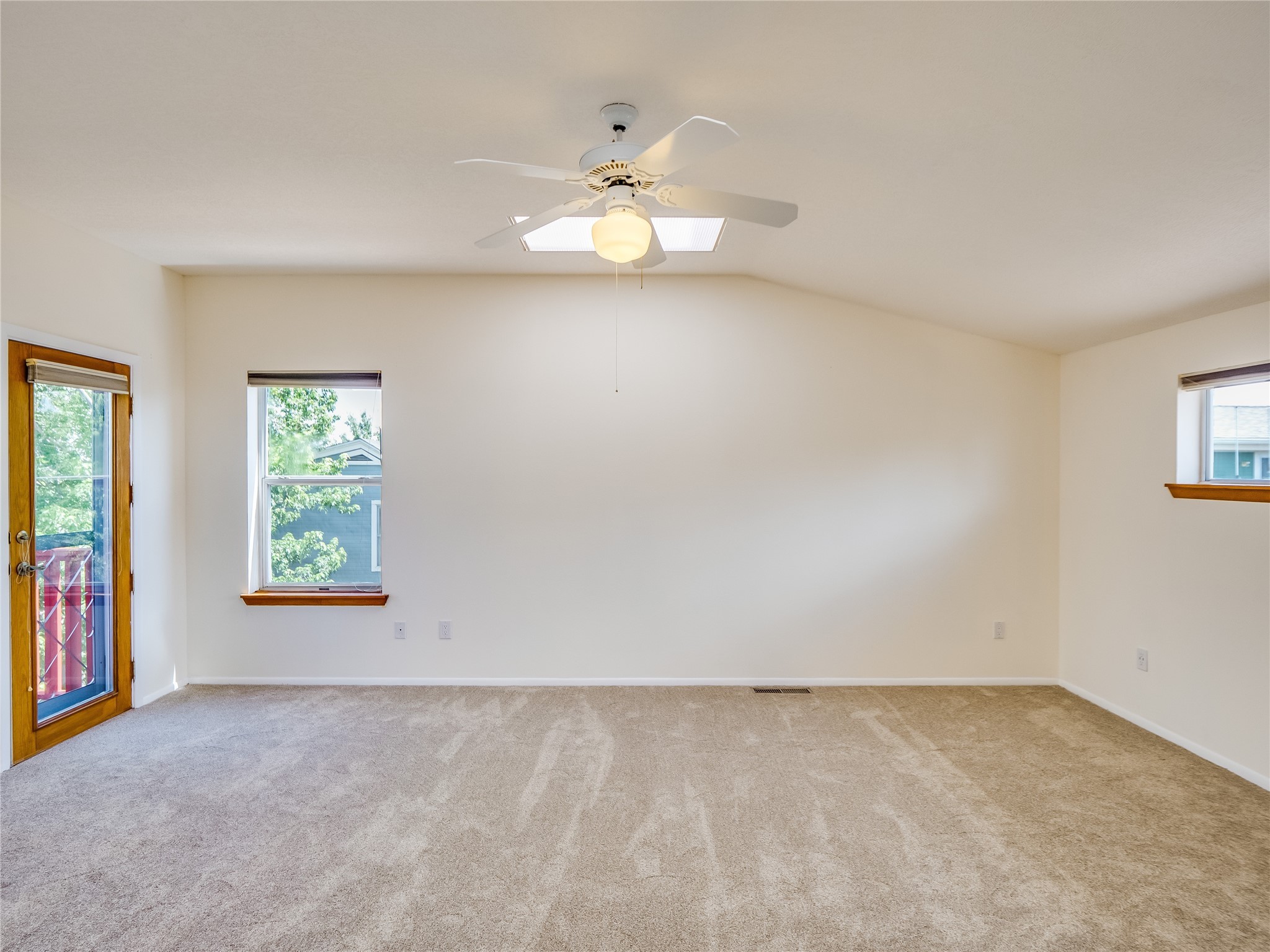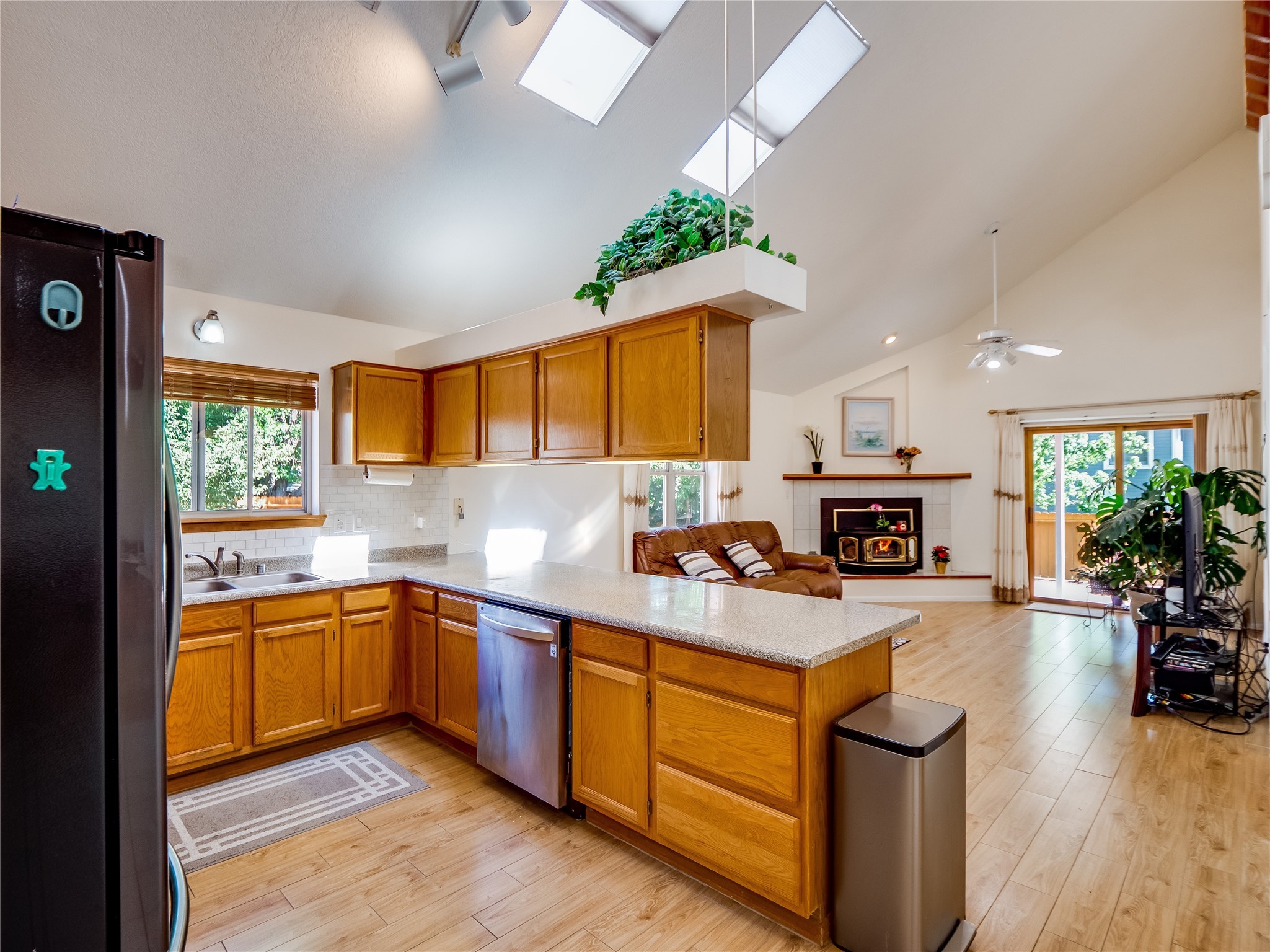 Welcome to this bright and inviting two-story home in the desirable North Mesa neighborhood, perfectly situated near parks, stables, scenic trails, and schools. A lush green front lawn creates a striking contrast against the charming blue exterior, while mature landscaping and colorful flower beds add to the home's curb appeal. Step inside the tile-floored foyer that continues into the main areas and take in the open-concept main level, where vaulted ceilings and strategically placed skylights fill the space with natural light. The expansive living room flows effortlessly into an intimate dining area, making it ideal for both entertaining guests and enjoying quiet nights at home. Just a step up, the kitchen features an abundance of warm wood cabinetry, sleek stainless steel appliances, and convenient bar-top seating. It opens to the bright family room, complete with a cozy fireplace insert and sliding glass doors that lead out to the serene backyard and covered patio--perfect for summer lounging or evening get-togethers. Off the family room, a practical laundry area connects to a hallway leading to three carpeted guest bedrooms and a full guest bath with a single sink vanity and a tiled shower/tub combo. Upstairs, a spacious open loft overlooks the living and kitchen areas below and offers a versatile space for a game room, office, or media nook. Tucked away for privacy, the generous primary en-suite features skylights, a walk-in closet, and its own private deck--ideal for morning coffee or stargazing at night. The en-suite bathroom includes tile flooring, a large single sink vanity, a linen closet, and a beautifully tiled walk-in shower with a sliding glass enclosure. The backyard is designed for low maintenance and maximum enjoyment, featuring mature trees and shrubs, garden beds, a storage shed, and a covered patio. There's also easy access to the attached two car garage. This North Mesa gem has it all--comfort, charm, and convenience. Schedule your showing today!