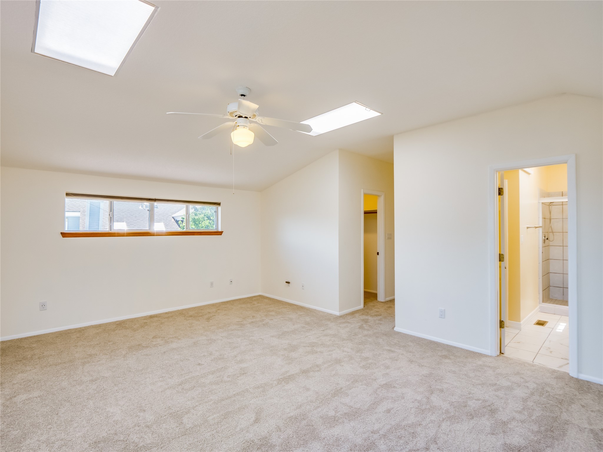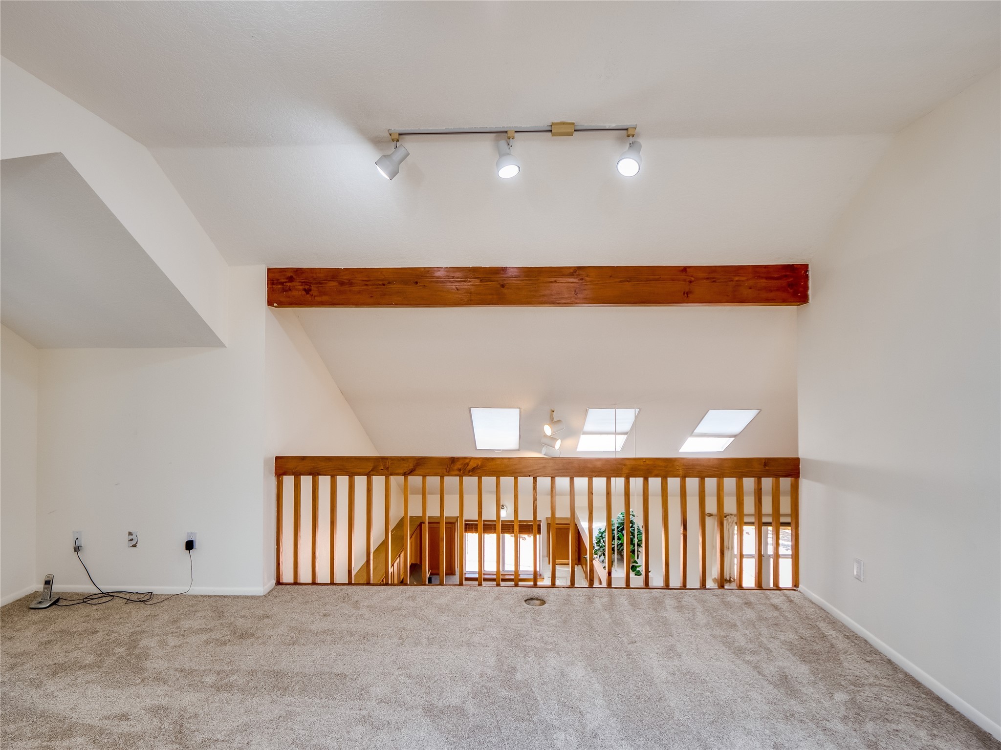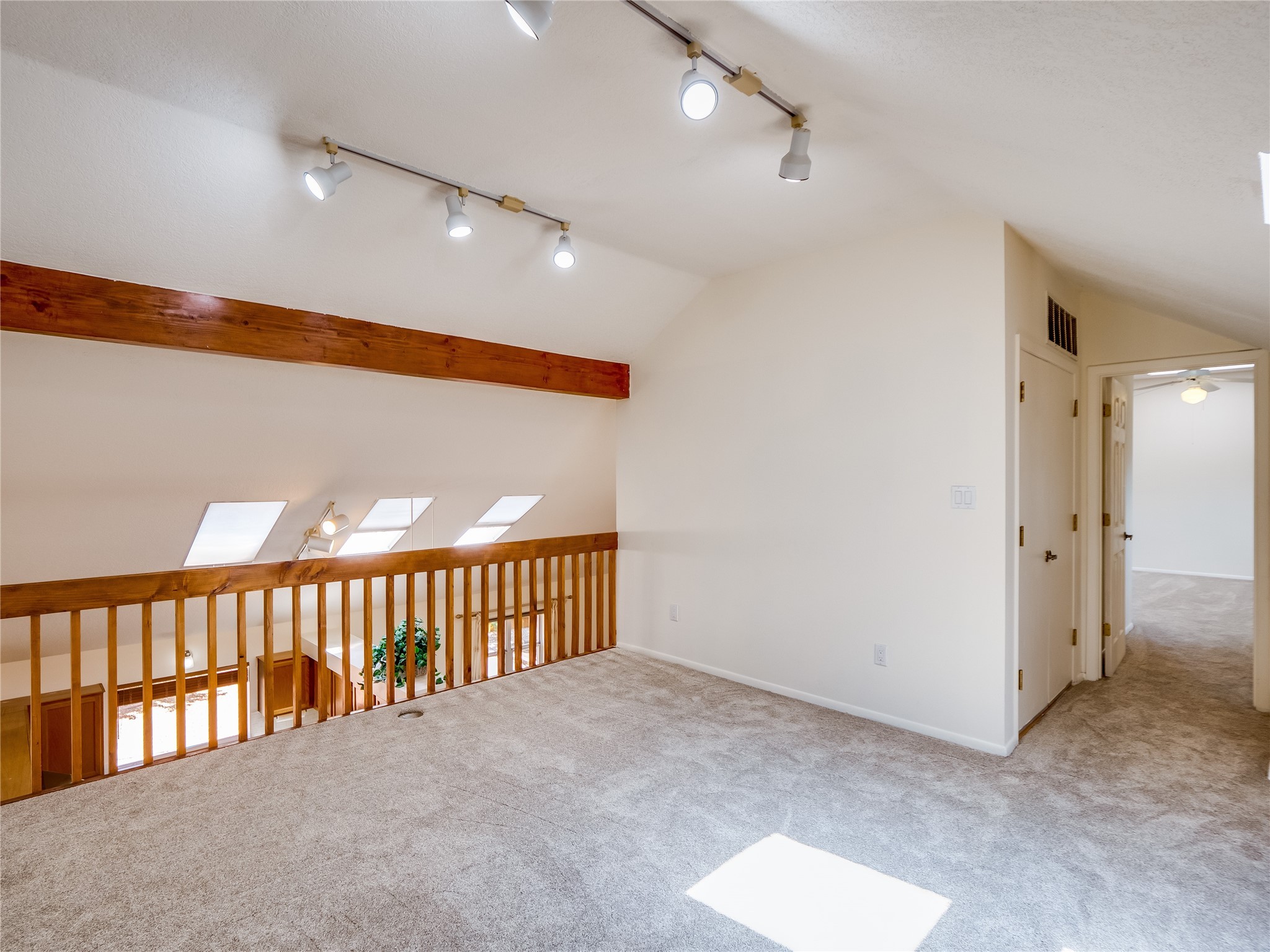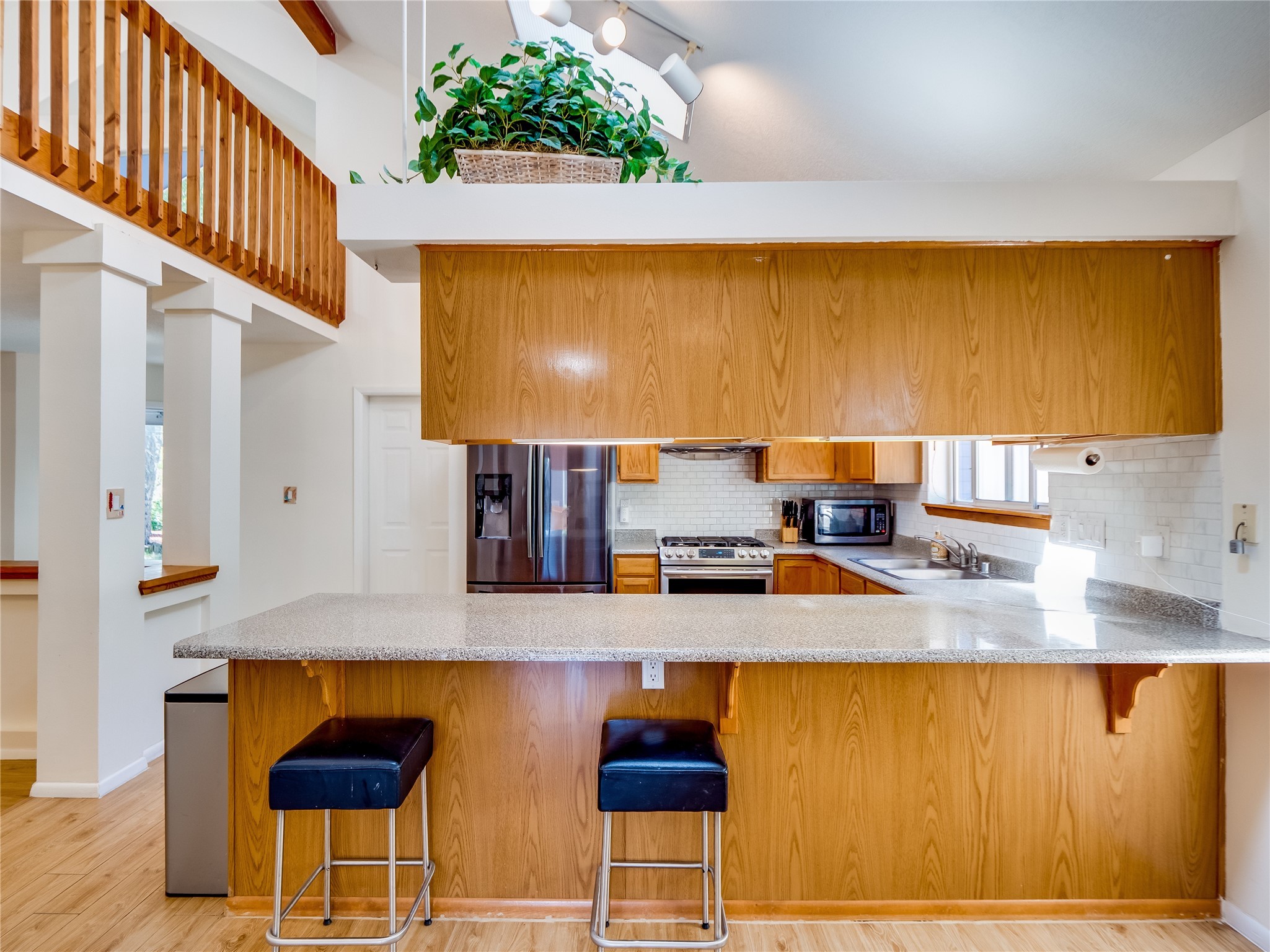 Welcome to this bright and inviting two-story home in the desirable North Mesa neighborhood, perfectly situated near parks, stables, scenic trails, and schools. A lush green front lawn creates a striking contrast against the charming blue exterior, while mature landscaping and colorful flower beds add to the home's curb appeal. Step inside the tile-floored foyer that continues into the main areas and take in the open-concept main level, where vaulted ceilings and strategically placed skylights fill the space with natural light. The expansive living room flows effortlessly into an intimate dining area, making it ideal for both entertaining guests and enjoying quiet nights at home. Just a step up, the kitchen features an abundance of warm wood cabinetry, sleek stainless steel appliances, and convenient bar-top seating. It opens to the bright family room, complete with a cozy fireplace insert and sliding glass doors that lead out to the serene backyard and covered patio--perfect for summer lounging or evening get-togethers. Off the family room, a practical laundry area connects to a hallway leading to three carpeted guest bedrooms and a full guest bath with a single sink vanity and a tiled shower/tub combo. Upstairs, a spacious open loft overlooks the living and kitchen areas below and offers a versatile space for a game room, office, or media nook. Tucked away for privacy, the generous primary en-suite features skylights, a walk-in closet, and its own private deck--ideal for morning coffee or stargazing at night. The en-suite bathroom includes tile flooring, a large single sink vanity, a linen closet, and a beautifully tiled walk-in shower with a sliding glass enclosure. The backyard is designed for low maintenance and maximum enjoyment, featuring mature trees and shrubs, garden beds, a storage shed, and a covered patio. There's also easy access to the attached two car garage. This North Mesa gem has it all--comfort, charm, and convenience. Schedule your showing today!