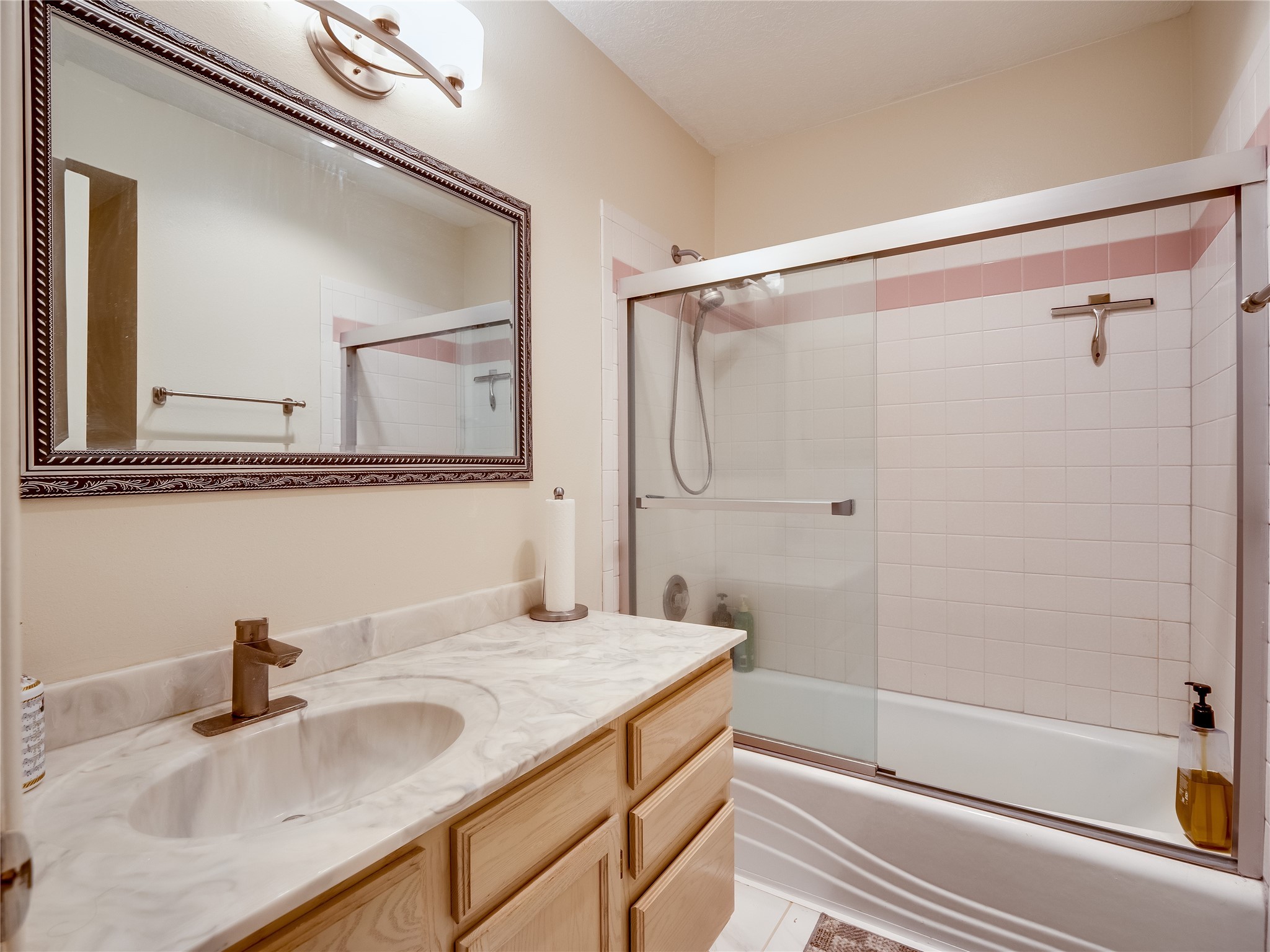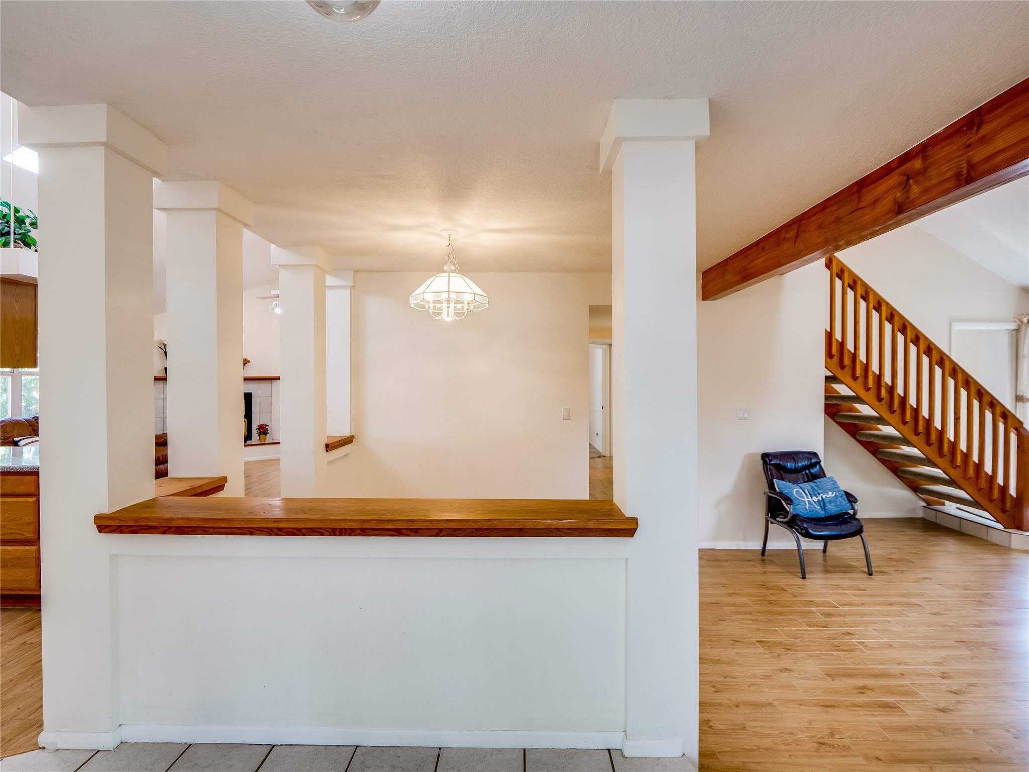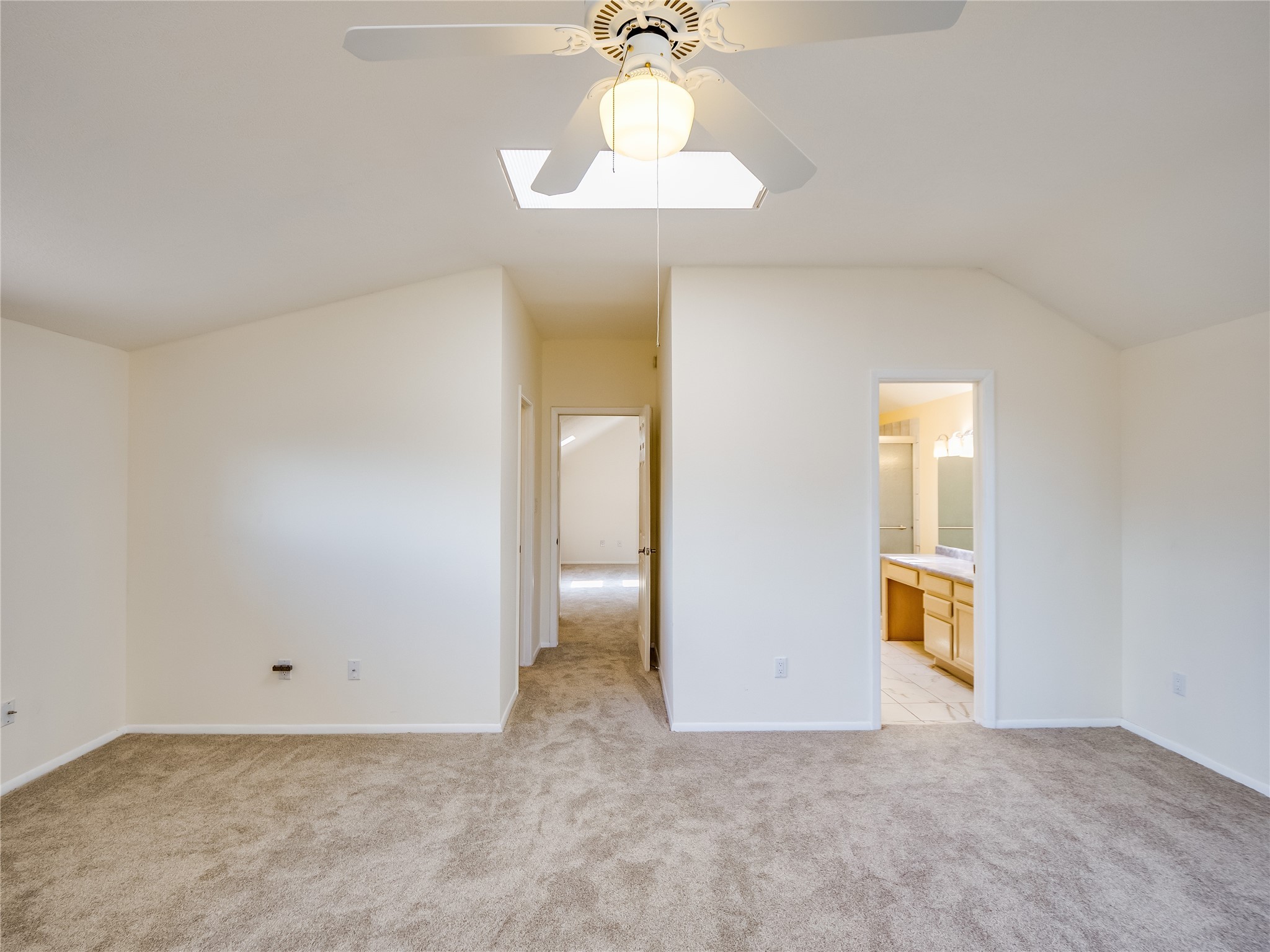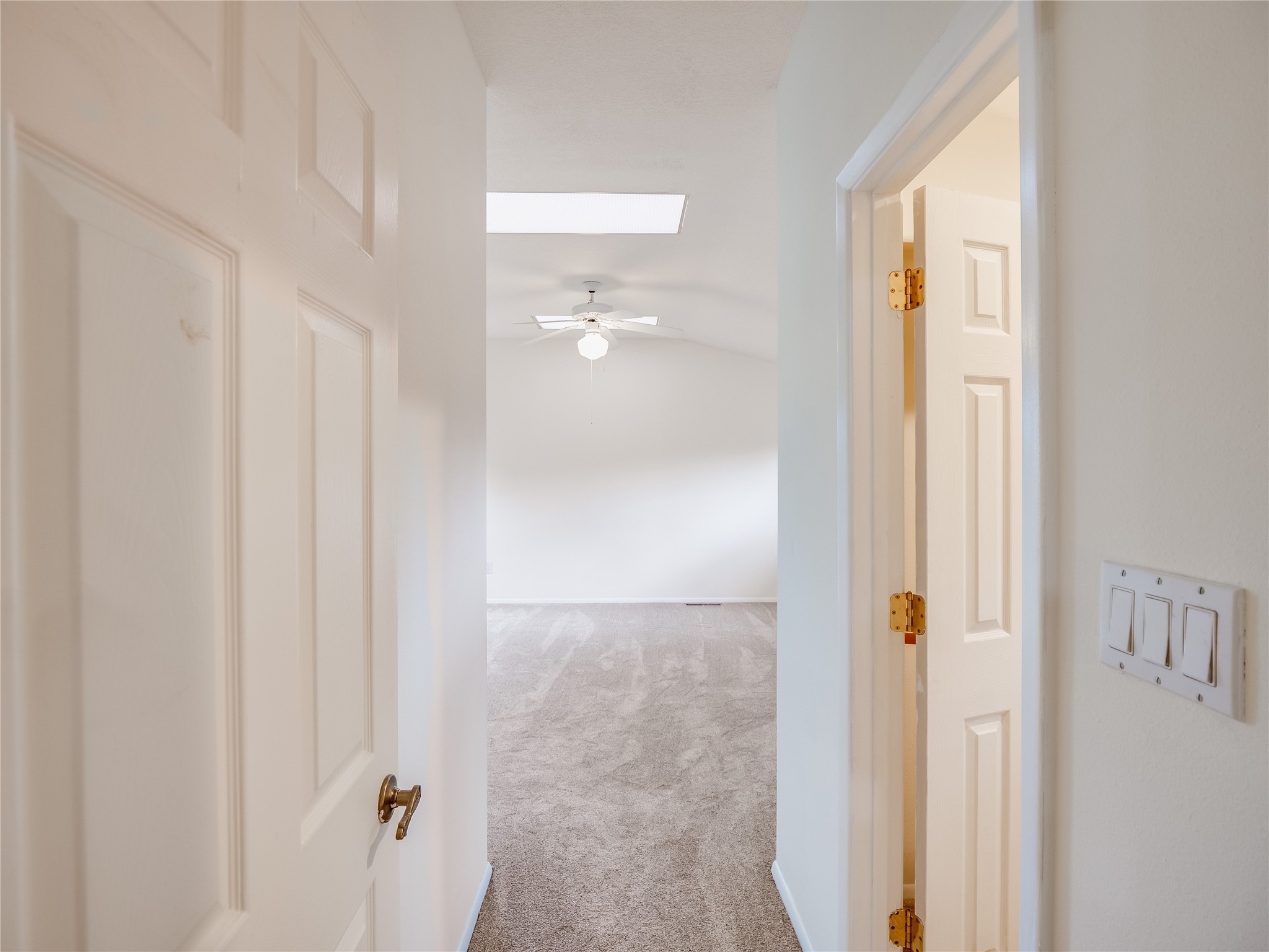 Welcome to this bright and inviting two-story home in the desirable North Mesa neighborhood, perfectly situated near parks, stables, scenic trails, and schools. A lush green front lawn creates a striking contrast against the charming blue exterior, while mature landscaping and colorful flower beds add to the home's curb appeal. Step inside the tile-floored foyer that continues into the main areas and take in the open-concept main level, where vaulted ceilings and strategically placed skylights fill the space with natural light. The expansive living room flows effortlessly into an intimate dining area, making it ideal for both entertaining guests and enjoying quiet nights at home. Just a step up, the kitchen features an abundance of warm wood cabinetry, sleek stainless steel appliances, and convenient bar-top seating. It opens to the bright family room, complete with a cozy fireplace insert and sliding glass doors that lead out to the serene backyard and covered patio--perfect for summer lounging or evening get-togethers. Off the family room, a practical laundry area connects to a hallway leading to three carpeted guest bedrooms and a full guest bath with a single sink vanity and a tiled shower/tub combo. Upstairs, a spacious open loft overlooks the living and kitchen areas below and offers a versatile space for a game room, office, or media nook. Tucked away for privacy, the generous primary en-suite features skylights, a walk-in closet, and its own private deck--ideal for morning coffee or stargazing at night. The en-suite bathroom includes tile flooring, a large single sink vanity, a linen closet, and a beautifully tiled walk-in shower with a sliding glass enclosure. The backyard is designed for low maintenance and maximum enjoyment, featuring mature trees and shrubs, garden beds, a storage shed, and a covered patio. There's also easy access to the attached two car garage. This North Mesa gem has it all--comfort, charm, and convenience. Schedule your showing today!