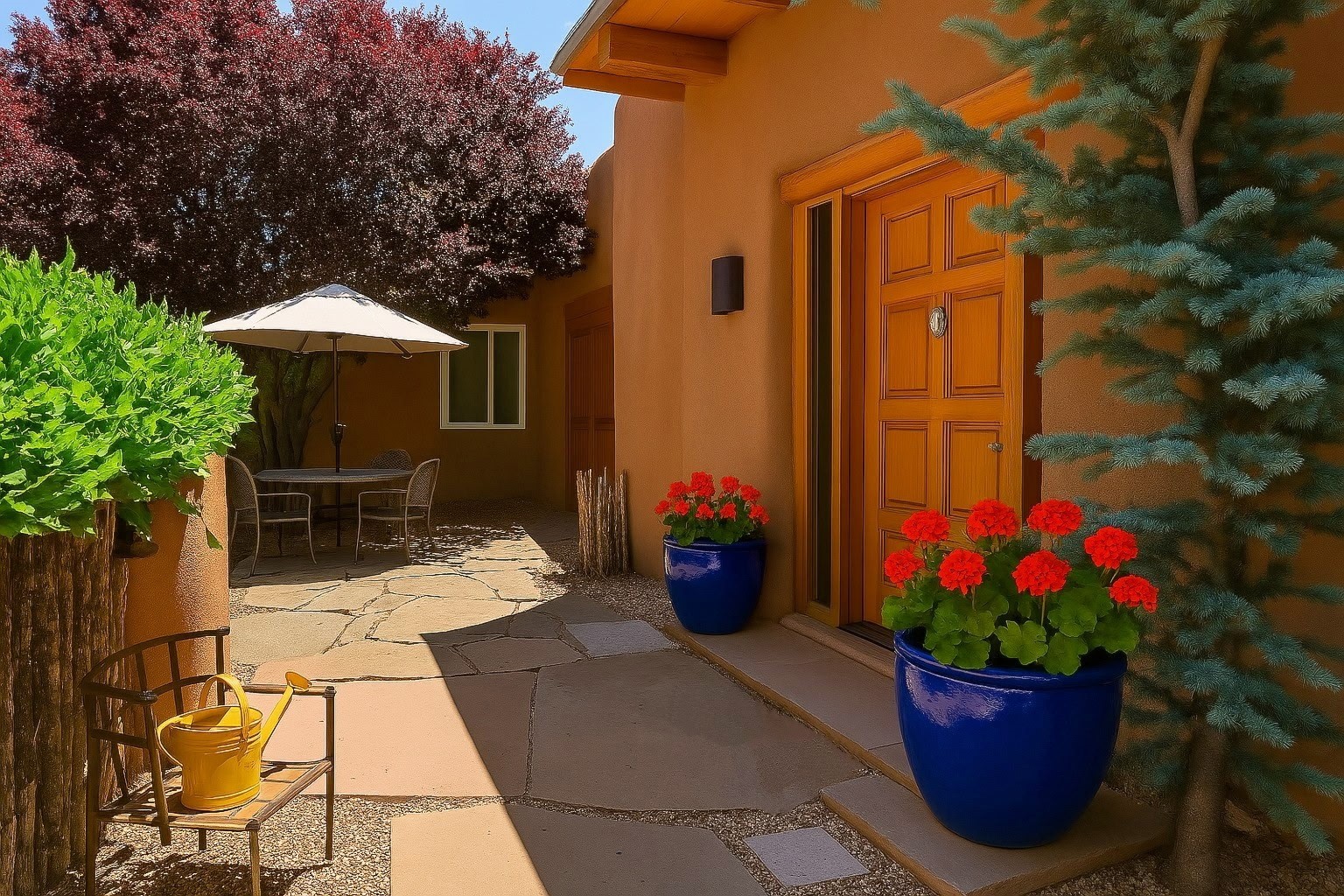 Experience breathtaking vistas of the Jemez mountains and stunning sunsets from this freestanding, 2 bedroom, 2 bath, single level villa. Just a few short minutes north of the historic Santa Fe Plaza, fine art galleries, museums, and world-class dining. Nestled at the base of the Sangre de Cristo Mountains in the exclusive Bishops Lodge Villas gated community, adjacent to the Santa Fe National Forest, offering abundant hiking, biking and walking trails and endless other four-season recreational activities. Featuring an open concept floor plan with high ceilings, traditional vigas, hand-troweled plaster walls, and central a/c, the villa includes two spacious suites, each with a kiva fireplace and private outdoor patio. One of the suites also has a steam shower and jetted tub. Meticulously maintained including new stucco and a 9-year roof warranty. Residents enjoy access to two shared villas pools and can make arrangements to utilize the unparalleled amenities of the world-renowned Bishops Lodge Resort by Auberge, making it an ideal retreat to entertain family and friends. Furnishings package is available.