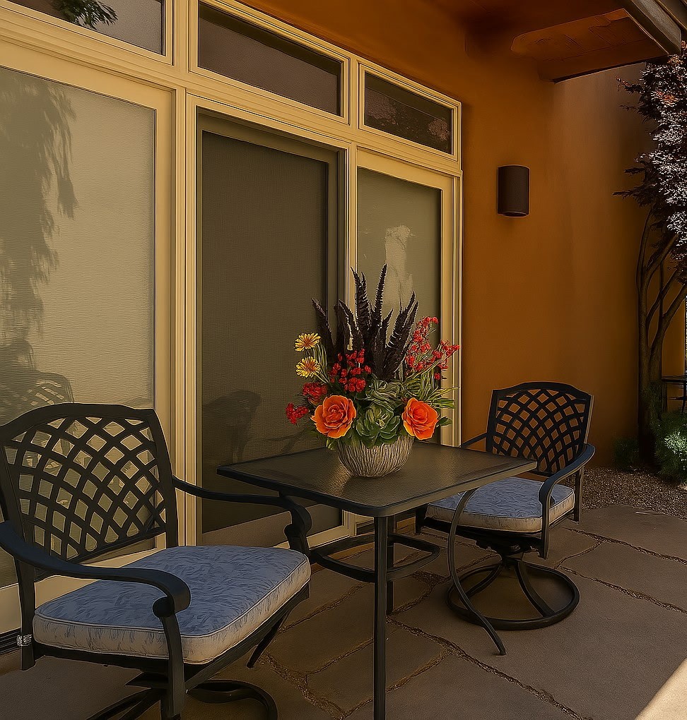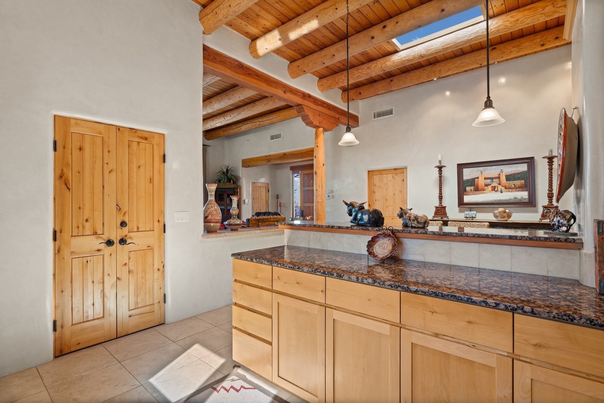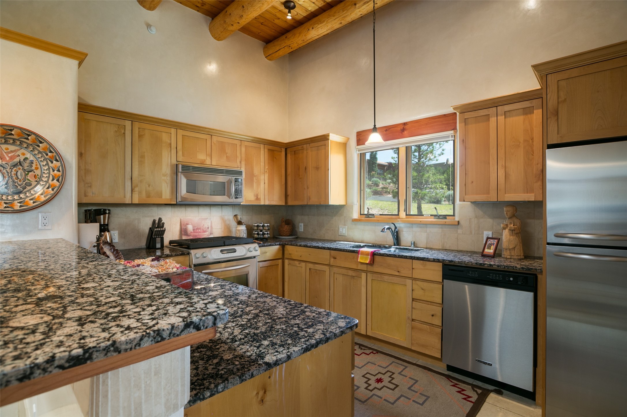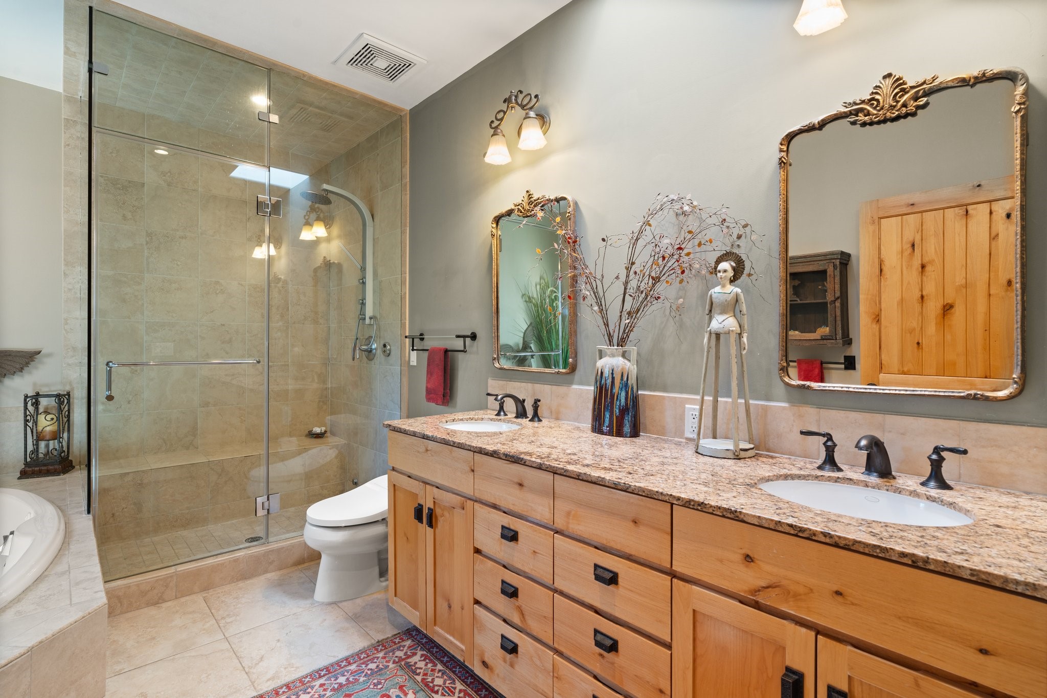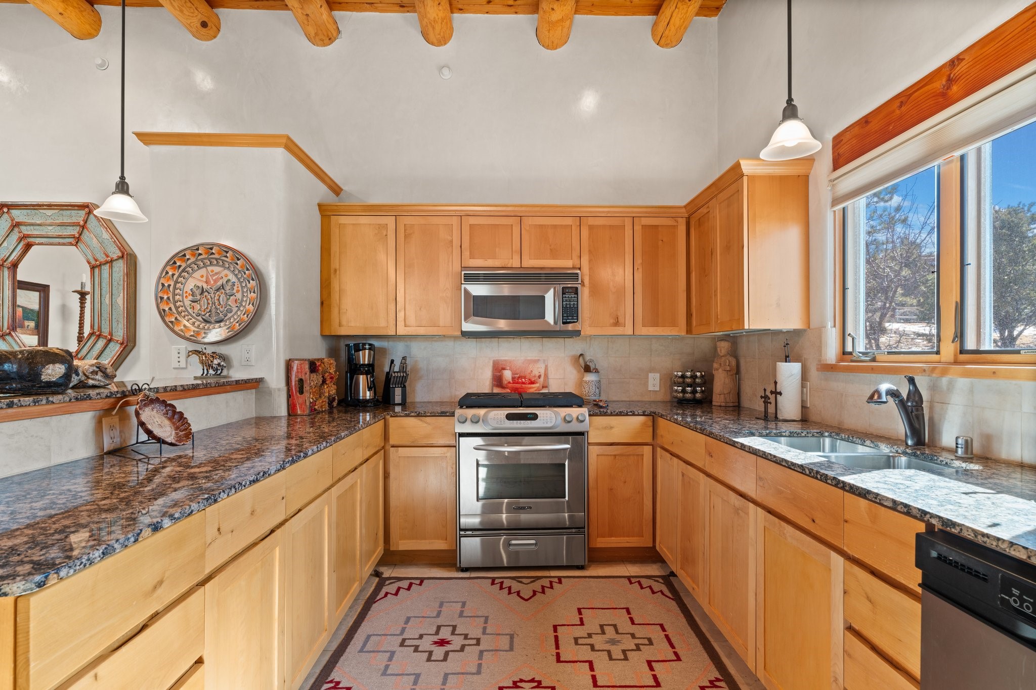 Experience breathtaking vistas of the Jemez mountains and stunning sunsets from this freestanding, 2 bedroom, 2 bath, single level villa. Just a few short minutes north of the historic Santa Fe Plaza, fine art galleries, museums, and world-class dining. Nestled at the base of the Sangre de Cristo Mountains in the exclusive Bishops Lodge Villas gated community, adjacent to the Santa Fe National Forest, offering abundant hiking, biking and walking trails and endless other four-season recreational activities. Featuring an open concept floor plan with high ceilings, traditional vigas, hand-troweled plaster walls, and central a/c, the villa includes two spacious suites, each with a kiva fireplace and private outdoor patio. One of the suites also has a steam shower and jetted tub. Meticulously maintained including new stucco and a 9-year roof warranty. Residents enjoy access to two shared villas pools and can make arrangements to utilize the unparalleled amenities of the world-renowned Bishops Lodge Resort by Auberge, making it an ideal retreat to entertain family and friends. Furnishings package is available.