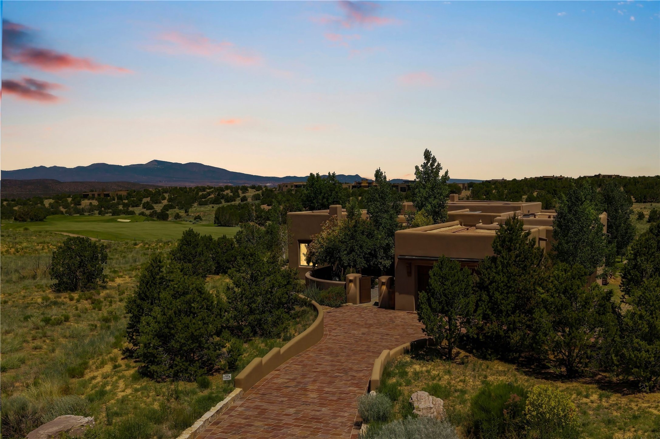 Experience the ultimate Santa Fe and Las Campanas lifestyle. Welcome to 5 N. Brisa Fresca, an extraordinary single-level residence by the award-winning builder Sharon Woods. Located within the master planned community of Las Campanas and sited on a premiere, 1 acre view lot, on the 2nd fairway of the Sunset Golf Course in Las Campanas, this exceptional home captivates with stunning views of the fairway, Jemez and Sangre de Cristo Mountains. Ideal for entertaining, this home was designed with an open concept living experience, with framed views of the golf course and mountain views from nearly every room. Privately accessed through a private entry courtyard with a tranquil water fountain, this exquisite home impresses with a grand living room complete with vast seating areas, a custom curved wall of view windows, a spacious dining room, fireplace and front and back portal access. Directly off the living room is the chef's kitchen with dual breakfast bars, walk-in pantry, luxury appliances, custom cabinetry with extra storage and an adjoining casual dining area or media room. The generous, private owner's suite delights with views, a fireplace, portal access and a spacious spa-like bath with natural stone throughout, a soaking tub, a newly customized walk-in closet, and an expansive vanity with dual sinks. Adjacent to the owner's suite is an office area or library. Guests enjoy true luxury and privacy with two large, ensuite bedrooms, each views and walk-in closets. The home's exceptional finishes include rich hardwood and natural stone flooring, vigas and beams, creamy white plaster walls, superior-quality craftsmanship, custom doors, a large laundry room and mudroom with a utility sink, a newly updated Lutron lighting system, (4) fireplaces, superior outdoor living areas with expansive covered portals with an outdoor fireplace and a private driveway with pavers. The owner's Equity Golf Membership to the Club at Las Campanas is available for purchase separately.