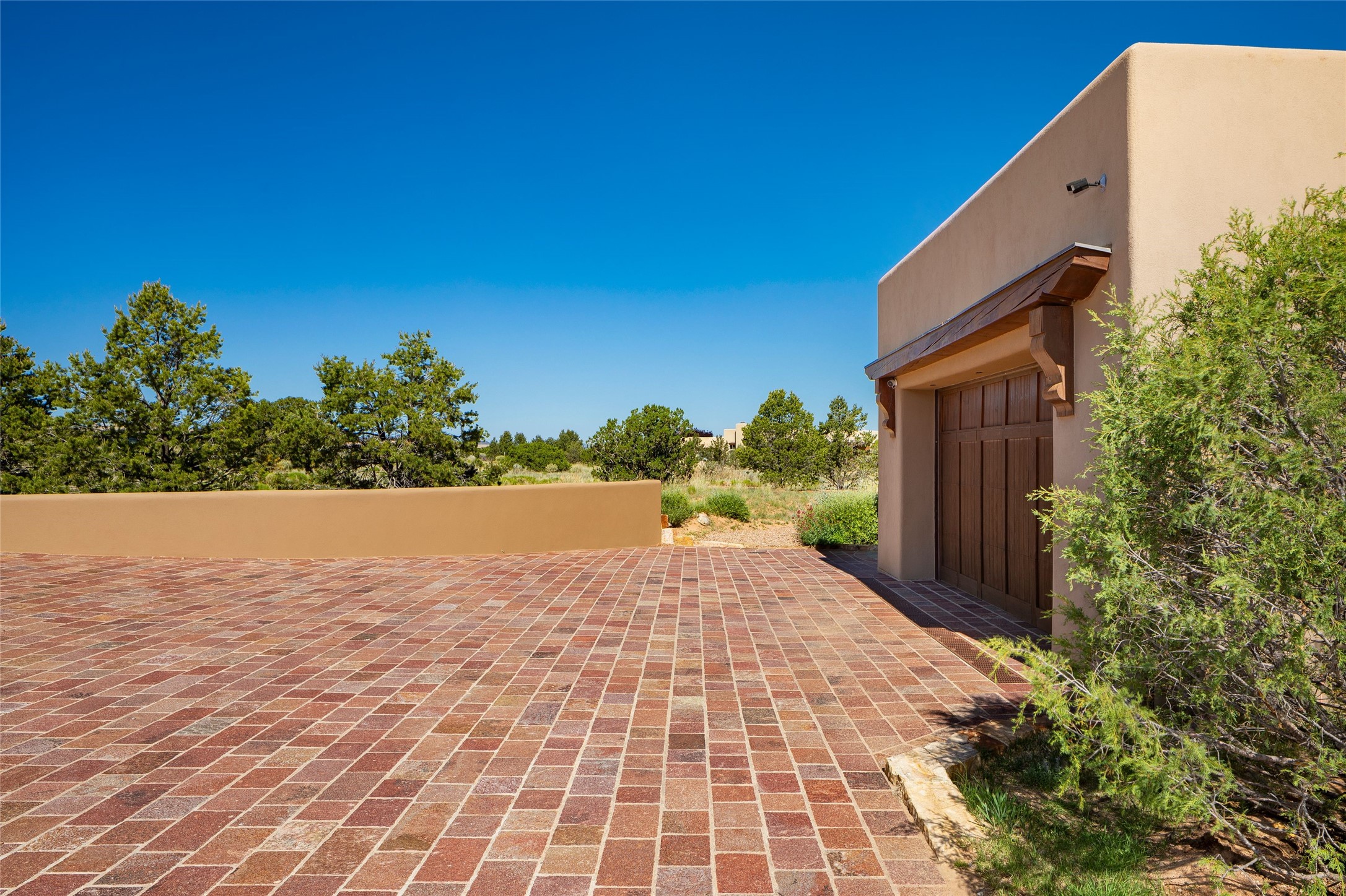Experience the ultimate Santa Fe and Las Campanas lifestyle. Welcome to 5 N. Brisa Fresca, an extraordinary single-level residence by the award-winning builder Sharon Woods. Located within the master planned community of Las Campanas and sited on a premiere, 1 acre view lot, on the 2nd fairway of the Sunset Golf Course in Las Campanas, this exceptional home captivates with stunning views of the fairway, Jemez and Sangre de Cristo Mountains. Ideal for entertaining, this home was designed with an open concept living experience, with framed views of the golf course and mountain views from nearly every room. Privately accessed through a private entry courtyard with a tranquil water fountain, this exquisite home impresses with a grand living room complete with vast seating areas, a custom curved wall of view windows, a spacious dining room, fireplace and front and back portal access. Directly off the living room is the chef's kitchen with dual breakfast bars, walk-in pantry, luxury appliances, custom cabinetry with extra storage and an adjoining casual dining area or media room. The generous, private owner's suite delights with views, a fireplace, portal access and a spacious spa-like bath with natural stone throughout, a soaking tub, a newly customized walk-in closet, and an expansive vanity with dual sinks. Adjacent to the owner's suite is an office area or library. Guests enjoy true luxury and privacy with two large, ensuite bedrooms, each views and walk-in closets. The home's exceptional finishes include rich hardwood and natural stone flooring, vigas and beams, creamy white plaster walls, superior-quality craftsmanship, custom doors, a large laundry room and mudroom with a utility sink, a newly updated Lutron lighting system, (4) fireplaces, superior outdoor living areas with expansive covered portals with an outdoor fireplace and a private driveway with pavers. The owner's Equity Golf Membership to the Club at Las Campanas is available for purchase separately.