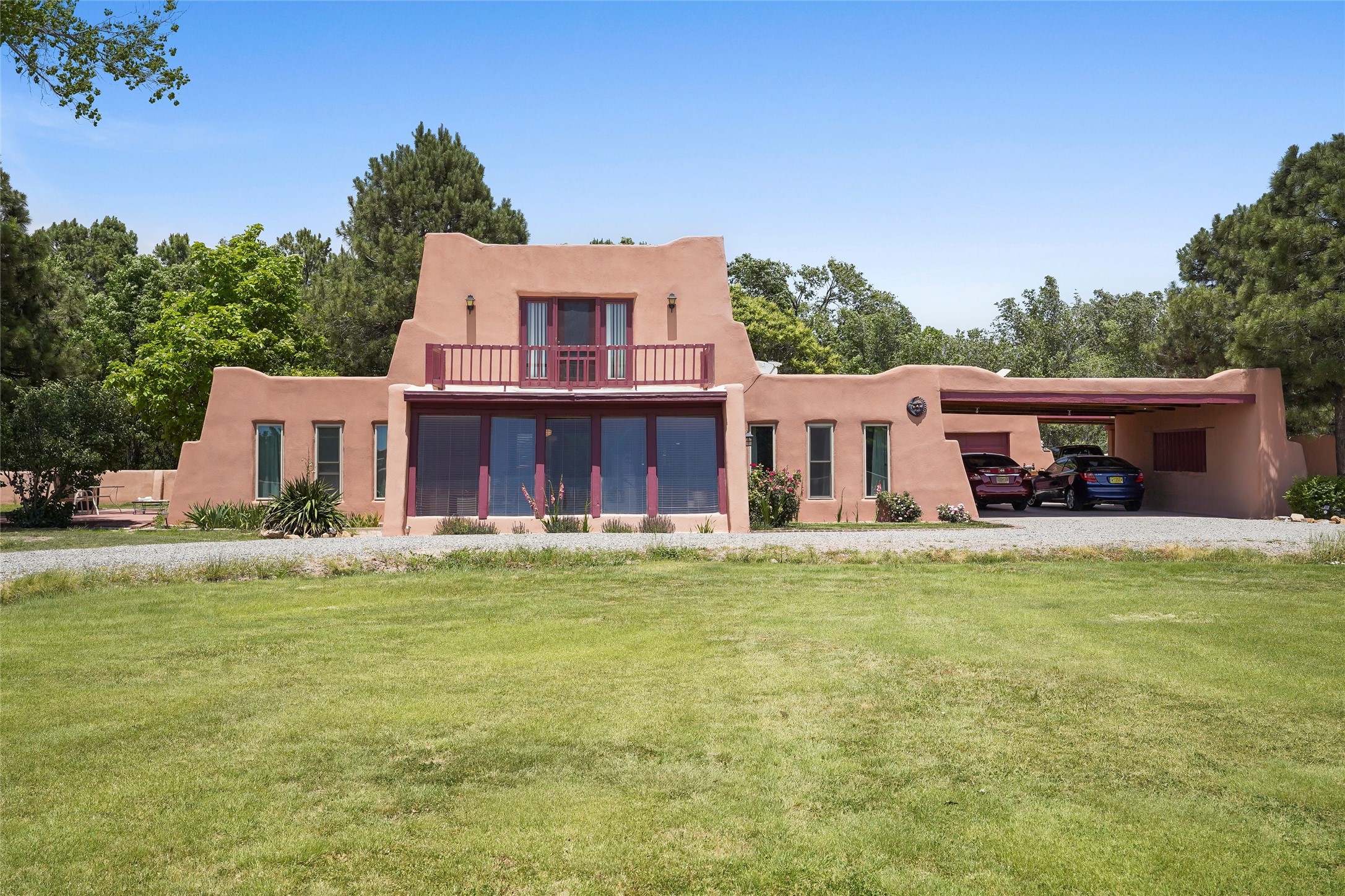 Welcome to 36 County Road 126 in La Mesilla! This charming 3-bedroom, 2-bath detached home offers the perfect blend of comfort, privacy, and outdoor living on a gated 0.8-acre lot. Surrounded by lush greenery, this property is a serene escape with plenty of space to enjoy and entertain. Inside, you'll find two spacious living rooms--one featuring a classic kiva fireplace and the other warmed by a cozy pellet stove--ideal for relaxing evenings year-round. The well-designed layout flows easily to the kitchen and dining areas, creating a welcoming atmosphere throughout. Upstairs, the primary bedroom includes a private balcony, perfect for taking in the peaceful views and fresh air. Step outside to enjoy the expansive patio, your very own basketball court, and beautifully landscaped grounds. Additional features include a two-car garage, carport, and gated access for added privacy and security. Whether you're gathering with friends or enjoying a quiet night at home, this unique La Mesilla residence has it all!