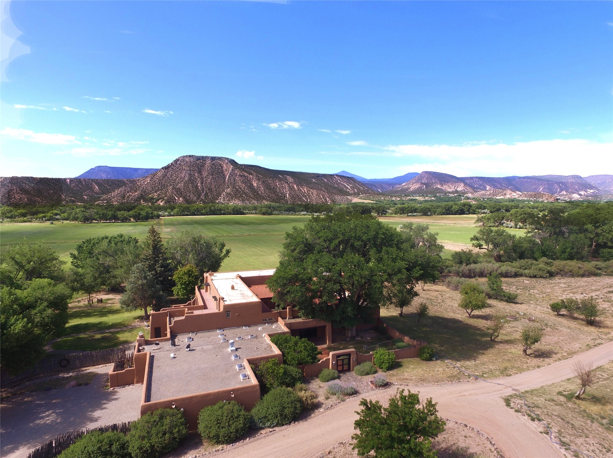 Rancho de Abiqui is a once-in-a-lifetime opportunity to own a legacy estate in the heart of northern New Mexico. Situated along 4,250 feet of the Chama River, this 138 acre estate blends historic charm and agricultural bounty. The beautifully restored 13,000 square-foot Spanish colonial hacienda displays is surrounded by towering cottonwoods and overlooks lush, productive hay fields. The 315 acre-feet of senior (pre-1907) water rights provide abundant and dependable irrigation and are a valuable commodity in arid New Mexico. The resident elk herd can be viewed from the portal in the mornings and evenings. Rancho de Abiqui offers luxury and pastoral living, with proximity to Santa Fe and Taos. At the heart of the property stands the Spanish Colonial hacienda, masterfully restored to preserve its 19th-century charm and intricate detailing, all with modern luxury. The estate also includes a 4-car garage, detached bathroom facilities, and a 1,700-square-foot potential guest house. The adjoining 66 acres with water rights and river frontage is also available (202503015). Truly part of New Mexico's history, Rancho de Abiqui was founded as the area's first outpost along the old Spanish trail in the early 1700s. Originally granted to Rosalie Valdez by the king of Spain, the Plaza Colorado Grant once spanned the entire Abiquiu area. Its ancient cottonwoods bear witness to 300 years of storied history, evolving into a grand hacienda that has welcomed political figures, artists, and movie stars.Outdoor recreation abounds, with excellent fishing on the Chama River, Abiqui Lake, and Vallecitos River. Rafting opportunities are excellent on the Chama. The nearby National Forest offers trails for hiking, horseback riding, and ATV use.Rancho de Abiqui could be a spectacular family compound, luxury guest lodge, corporate retreat, luxury equestrian property, winery, or farm-to-table destination. With its combination of historic character, wildlife, natural beauty, and agricultural abundance, Rancho de Abiqui is a rare offering that captures the soul of the Southwest--ready for its next visionary steward.