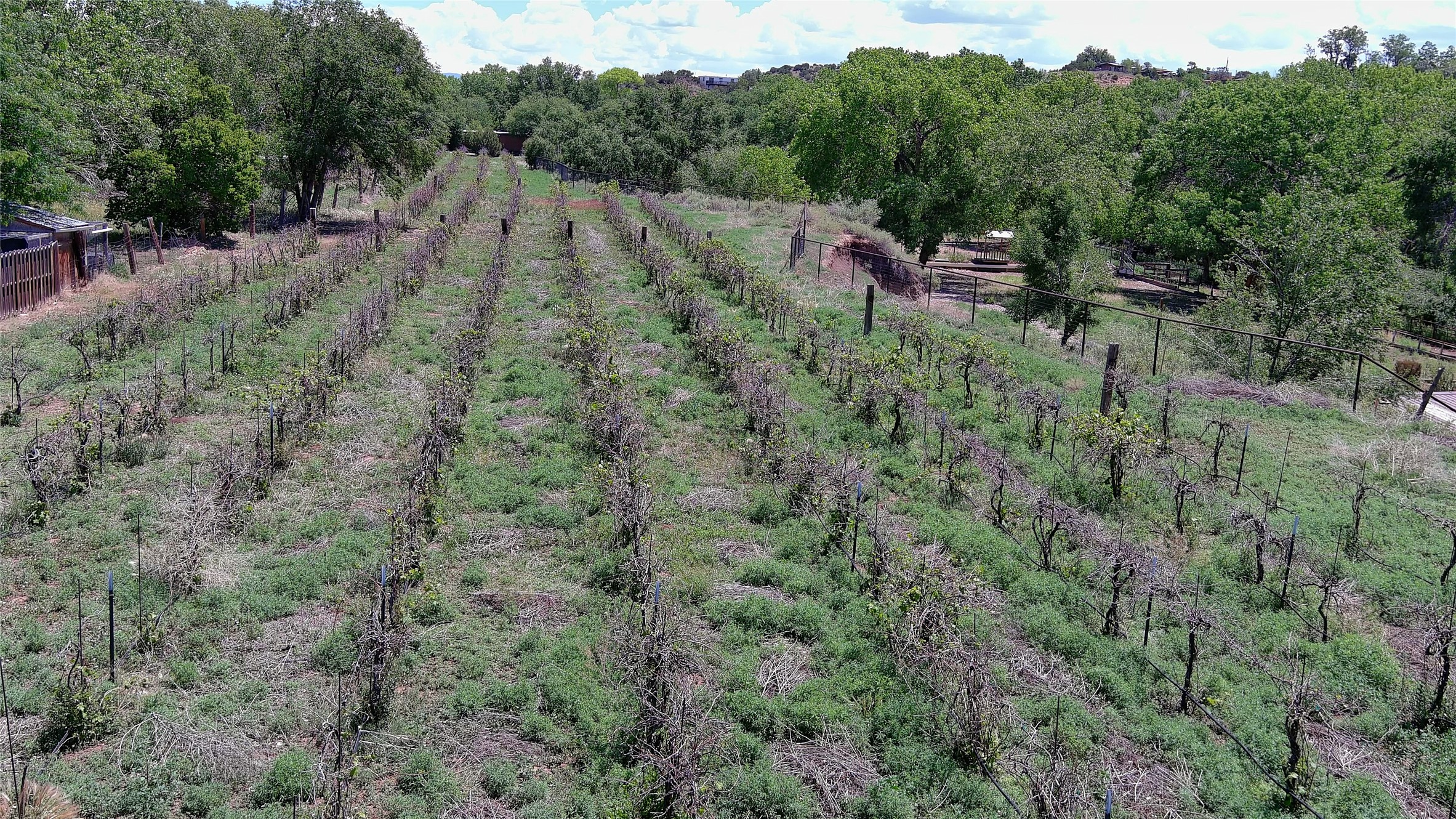 La Cienega Vineyard Estate - Four Parcels with Adobe Homes, Studios & Acequia Water Rights. Discover a unique opportunity in the heart of historic La Cienega--a vibrant 6-acre vineyard comprising four separately deeded parcels, rich with potential and authentic New Mexico charm. Anchored by two traditional adobe homes, the estate is steeped in regional character and surrounded by natural beauty. The main house features 3 bedrooms, 2 baths, and showcases classic Santa Fe style with brick floors, vigas, and elegant touches throughout. The adobe main residence is a quintessential historic home in the La Cienega Village. The second adobe home offers additional living space or rental income potential. In addition to the homes, the property includes a partially completed two-story apartment--ready for your finishing touches--and several studio structures that could be transformed into creative workspaces, studios, rentals or other uses associated with the Vineyard. The well-maintained vineyard is nourished by valuable acequia water rights, ensuring sustainable growth and offering agricultural possibilities for wine production, agritourism, or farm-to-table ventures. With flexible uses and multiple dwellings already in place, this rare offering is ideal for a variety of uses--live/work, multi-generational living, a creative retreat, or a boutique vineyard business. Properties with this combination of history, water, and opportunity are seldom available in La Cienega
