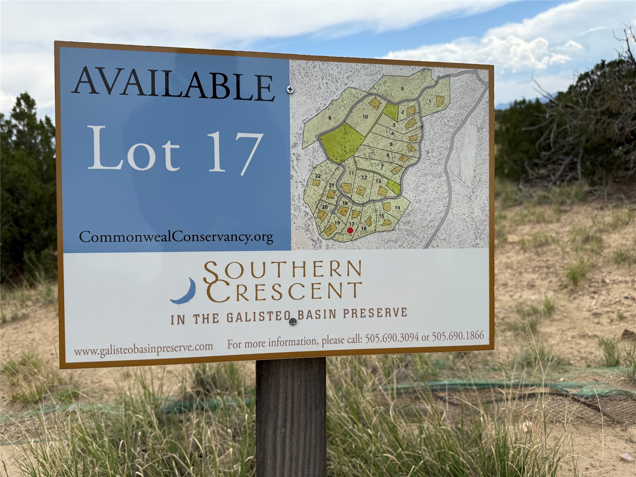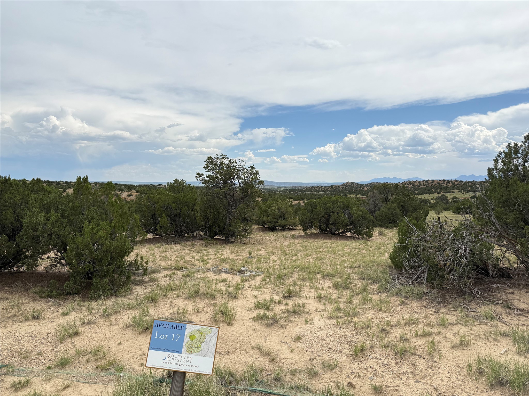 Enjoy extensive hiking opportunities directly from your residence. Situated in the highly sought-after Southern Crescent neighborhood within the Galisteo Basin Preserve, Lot 17 presents a spacious homesite with a designated building area, exceptional views, and direct access to open space. Southern Crescent is one of a limited number of neighborhoods available within the 9,500-acre Preserve, the majority of which is permanently protected by conservation easements. The lot is equipped with underground PNM electric, telephone, and water supplied by a shared well. The environment is optimal, featuring dark night skies, thriving trees, and indigenous grasses. Nearby Lamy provides access to the historic Legal Tender restaurant, a tap room, an Amtrak station, and the Eldorado community, all within a ten-minute drive.