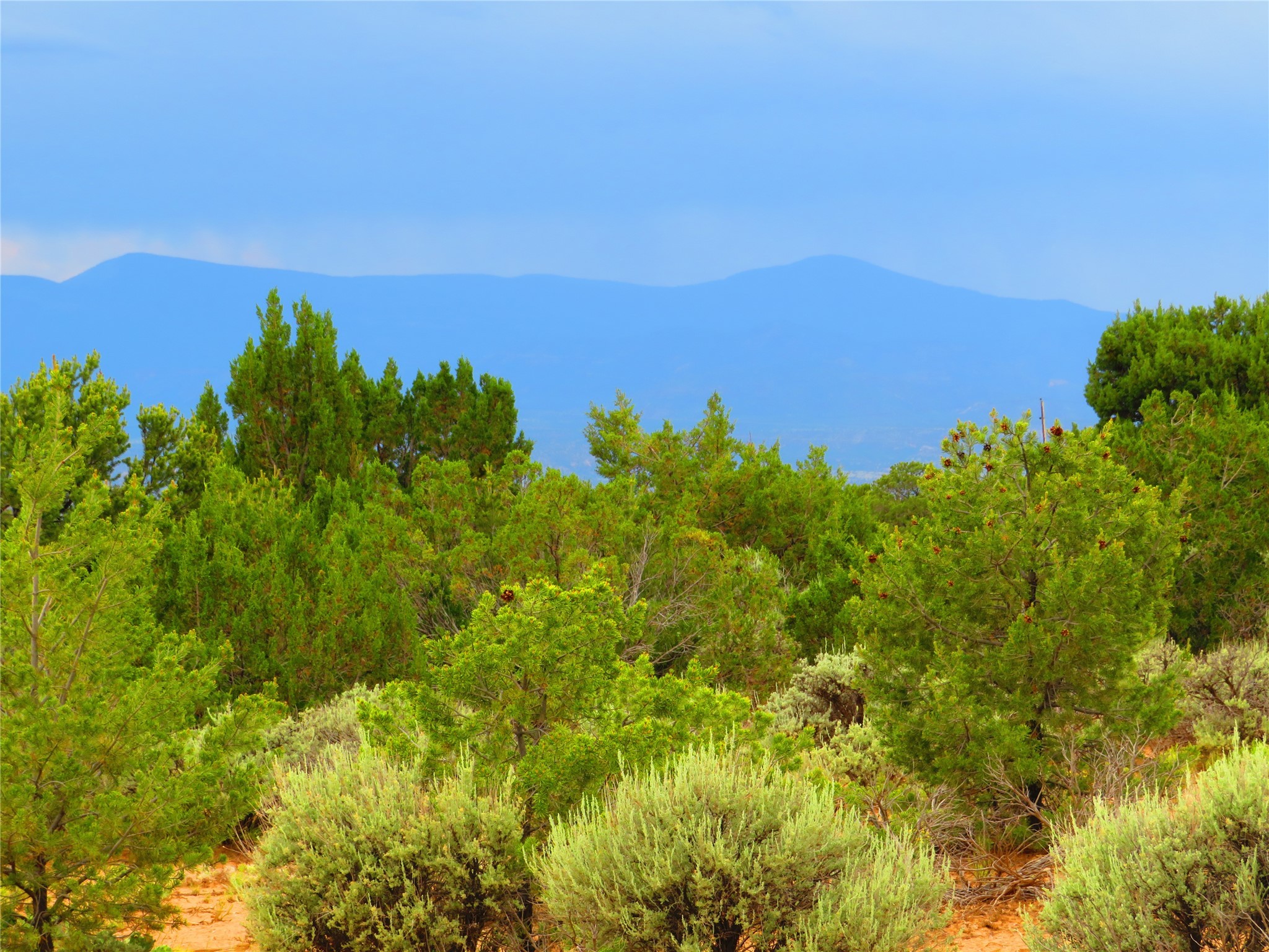 Situated high upon the foothills of the Sangre de Cristo, this location offers the very best for one seeking a private natural setting. The night skies are dark. There are no close neighbors, ensuring perfect silence. Access to the wilderness is close. The Santa Cruz lake is just a mile away, with boating, fishing and swimming. The road is paved and county maintained. electricity and phone service is available. the terrain is mostly flat and studded with pinon, juniper, sagebrush, rabbit brush, and nopal. With all of that, the cherry on top is the 360 degree view, from the Sange de Cristo to the Jemez.