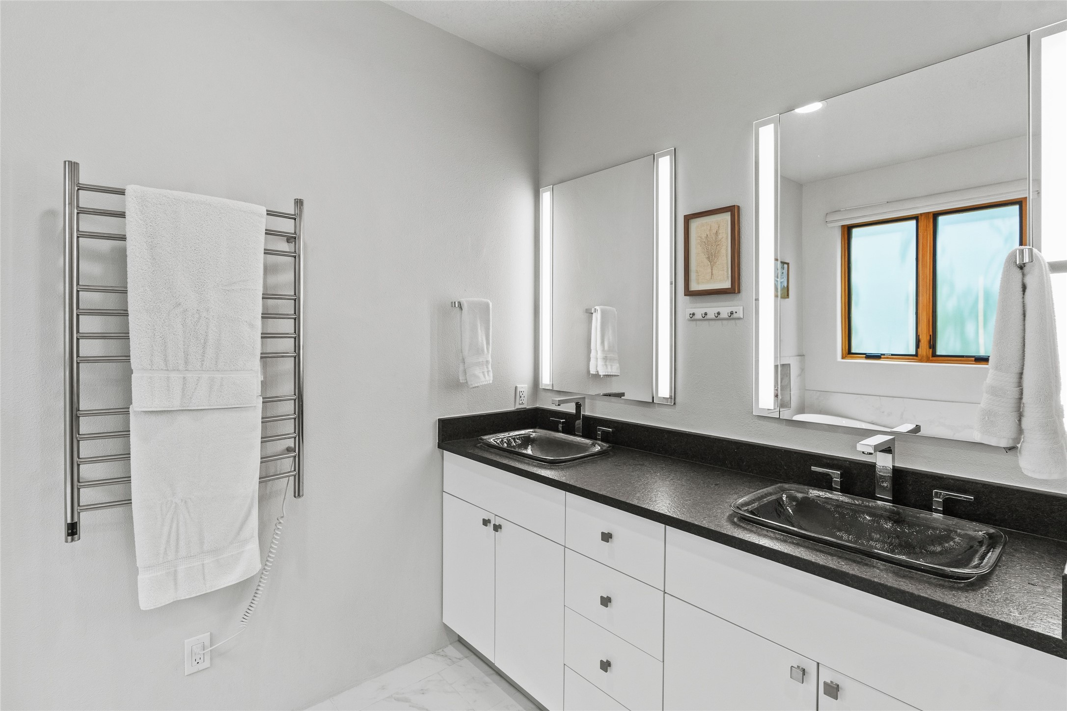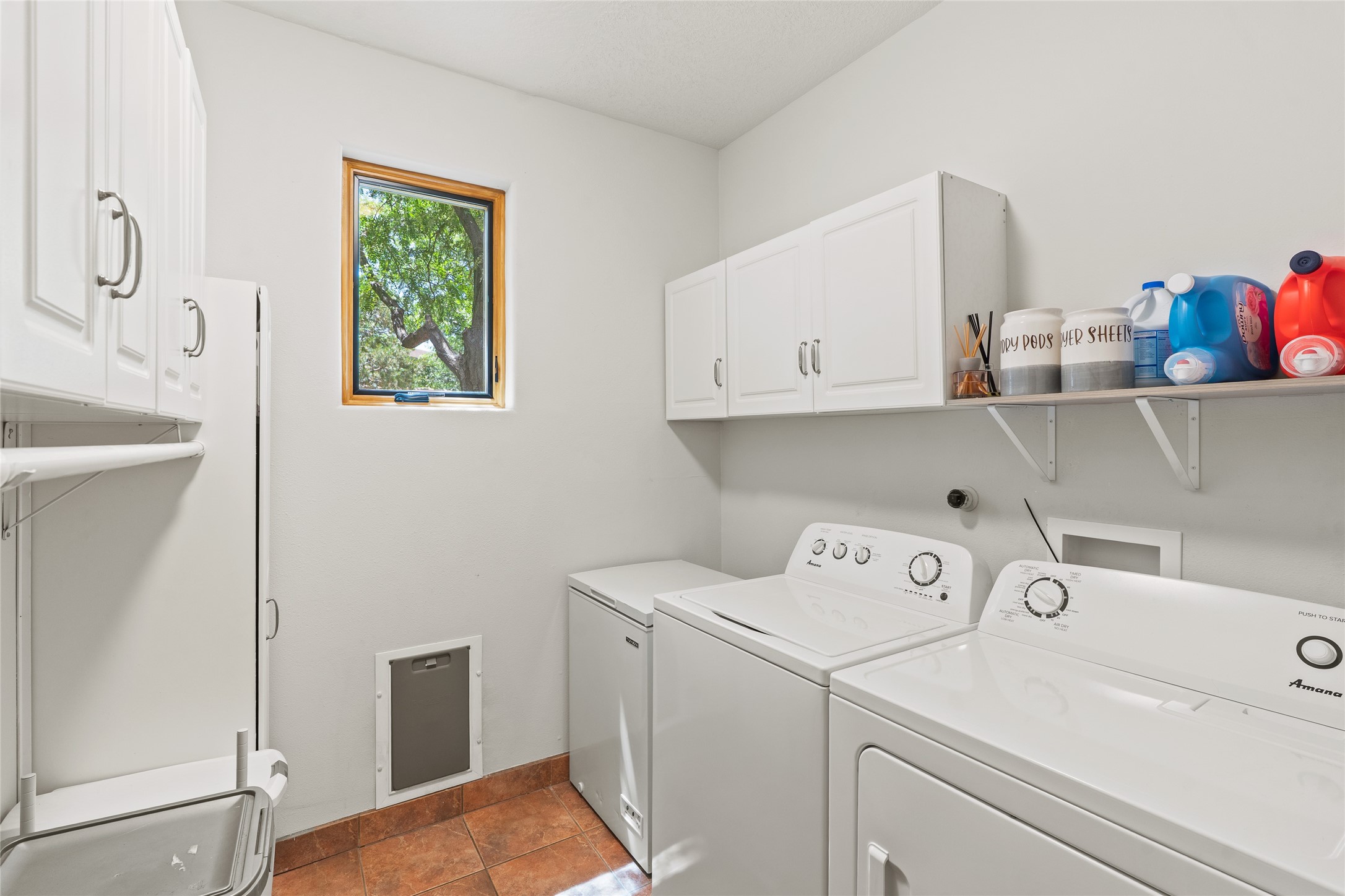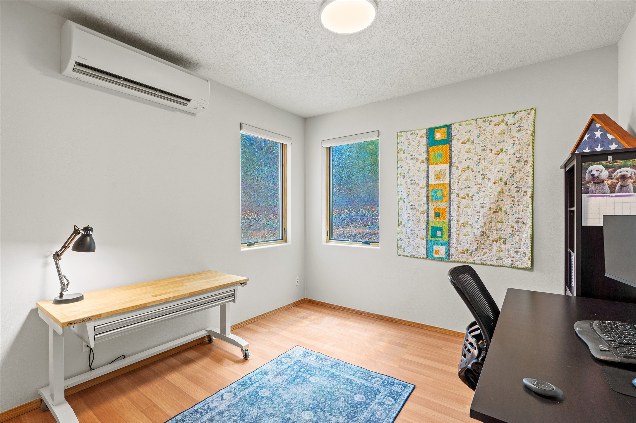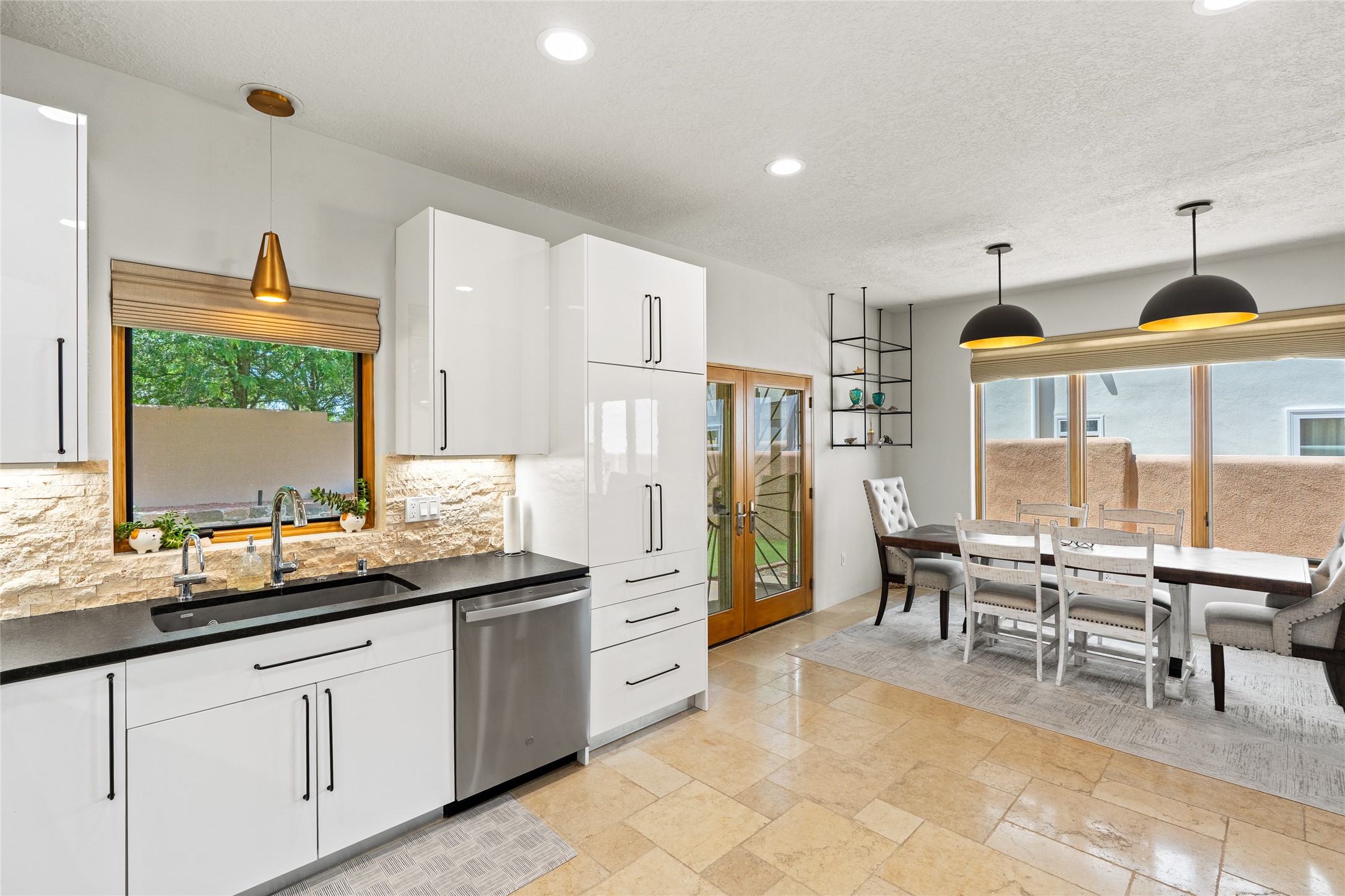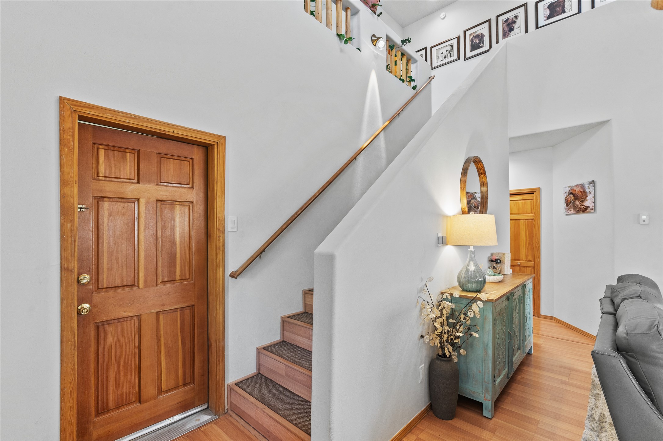 This extensively upgraded home in Pueblos del Sol--boasting over $200,000 in recent enhancements--is one of the finest in the neighborhood. The contemporary kitchen is a standout, featuring top-tier appliances including a new gas cooktop, a beverage refrigerator, sleek modern cabinetry, and a striking stone backsplash that adds a natural, organic touch.The living room impresses with 16-foot ceilings accented by vigas, a gas kiva fireplace, rich wood floors, and oversized windows that flood the space with natural light. All of the windows are newer Pella windows with remote-controlled blinds, providing both ease and comfort. Upstairs, the spacious primary suite offers a private retreat with a cozy sitting area and access to a balcony showcasing expansive sunrise and sunset views. The spa-like bath includes a designer vessel soaking tub, walk-in glass shower, heated towel rack and a generous walk-in closet custom-outfitted by California Closets.Two additional bedrooms are located on the main level, each thoughtfully designed with custom California closet systems. Outside, mature trees offer shade and privacy, and a raised platform invites stargazing or relaxing under the open sky.The oversized two-car garage is another highlight, with 12-foot ceilings, new epoxy flooring, and ceiling-mounted storage to maximize space. Set in a quiet, well-maintained community with its own trail system, this home offers quality, comfort, and convenience--just minutes from all that Santa Fe has to offer.