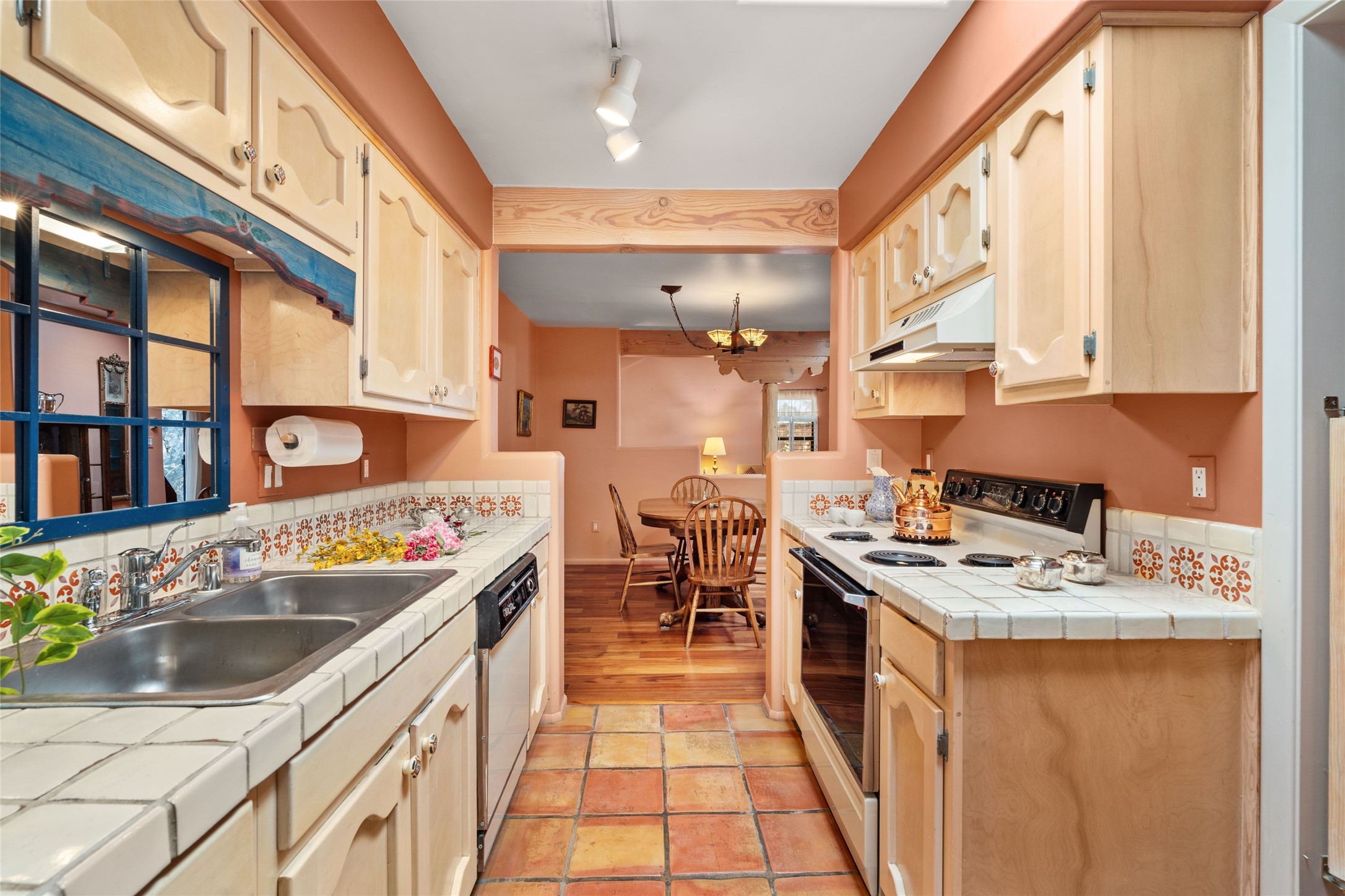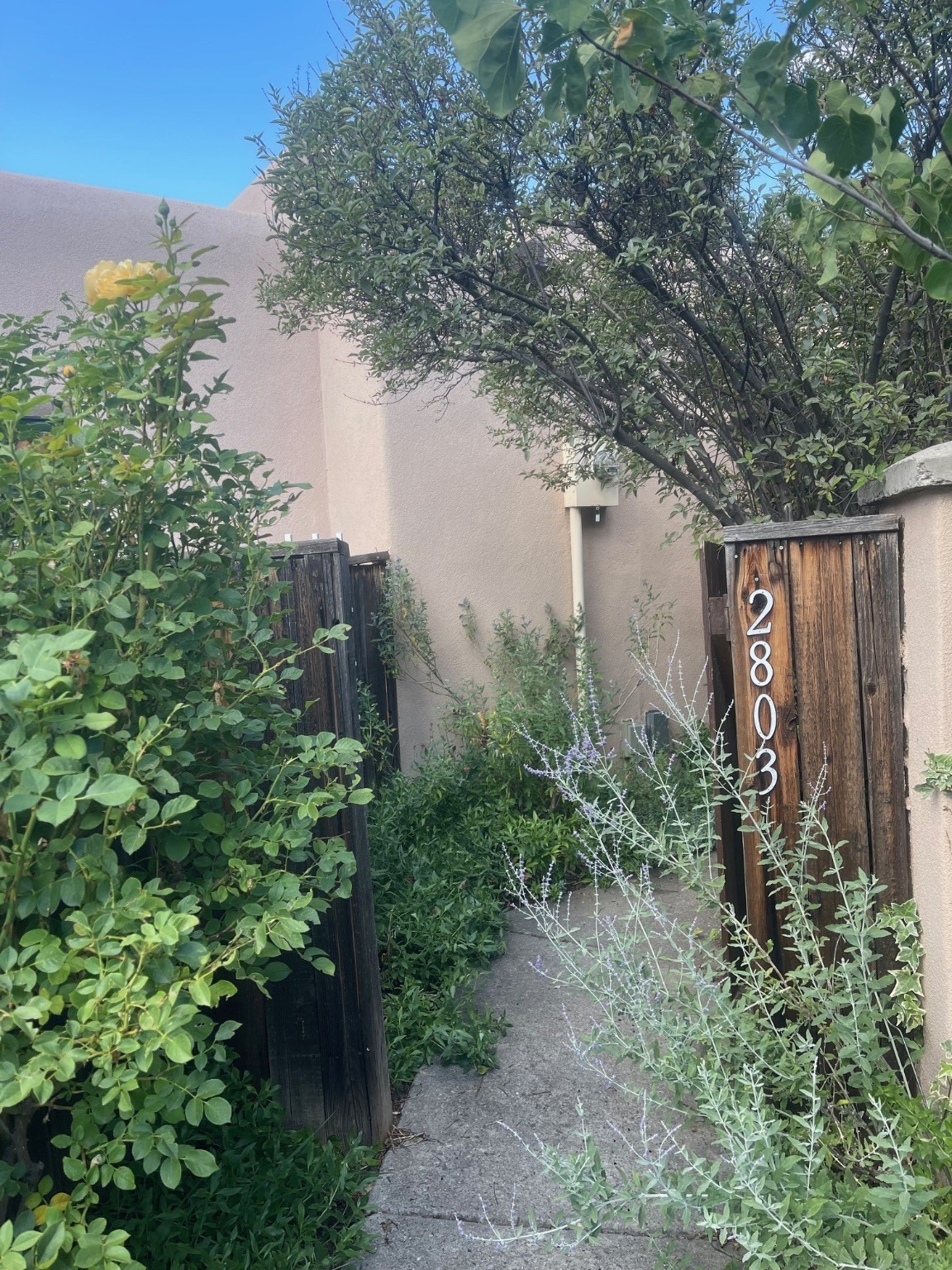This is an ideal primary or secondary home in Santa Fe. This lovely Park Plaza two-bedroom, two-bath home features hardwood and tile floors, tongue-and-groove (T&G) ceiling finishes in the living room, no interior steps, a courtyard entry, a private backyard, and an upgraded roof with a 10-year warranty. It's centrally located in Santa Fe, offering easy living at its best! It is a charming private property. Do not miss this Park Plaza beauty!