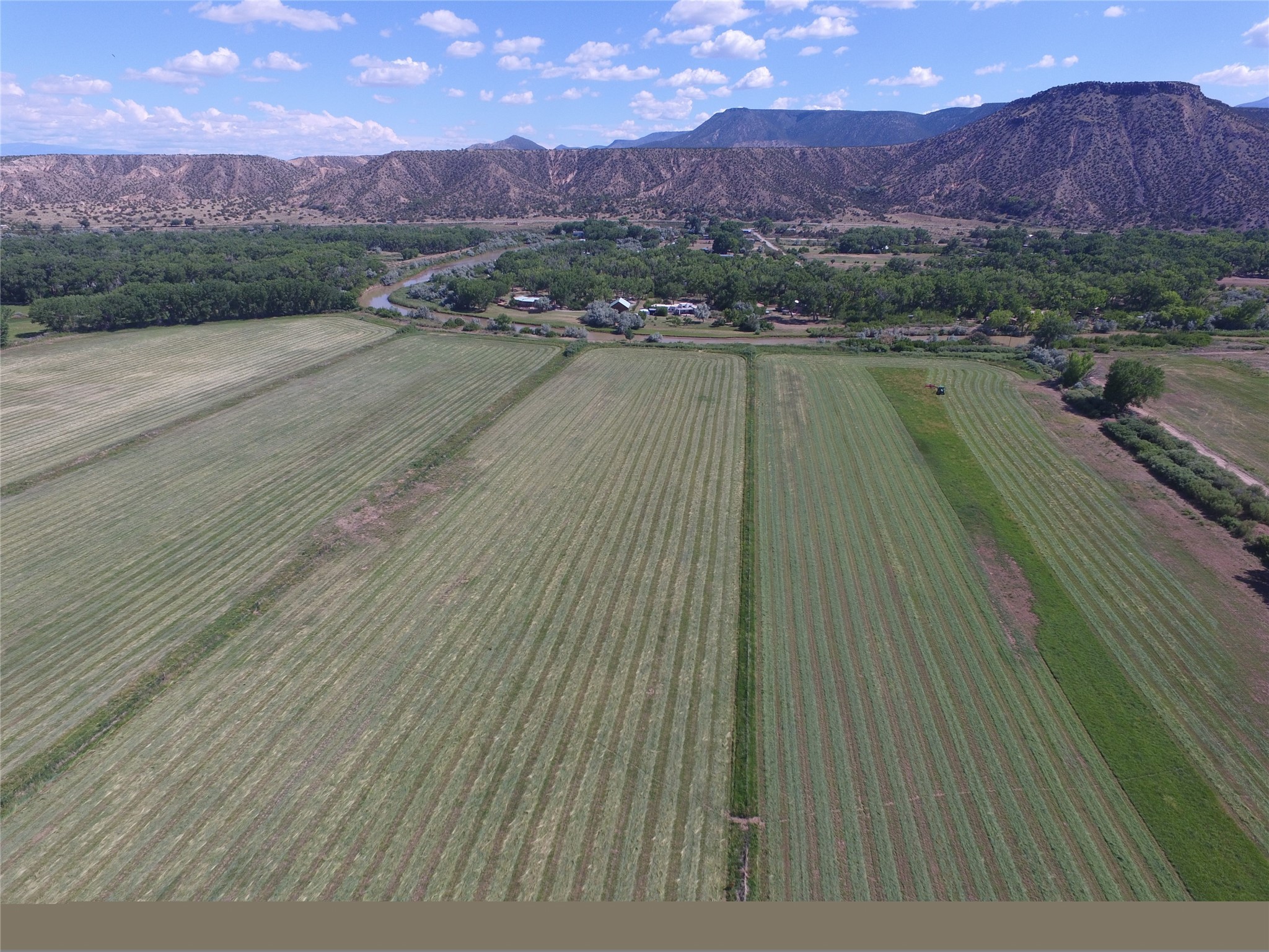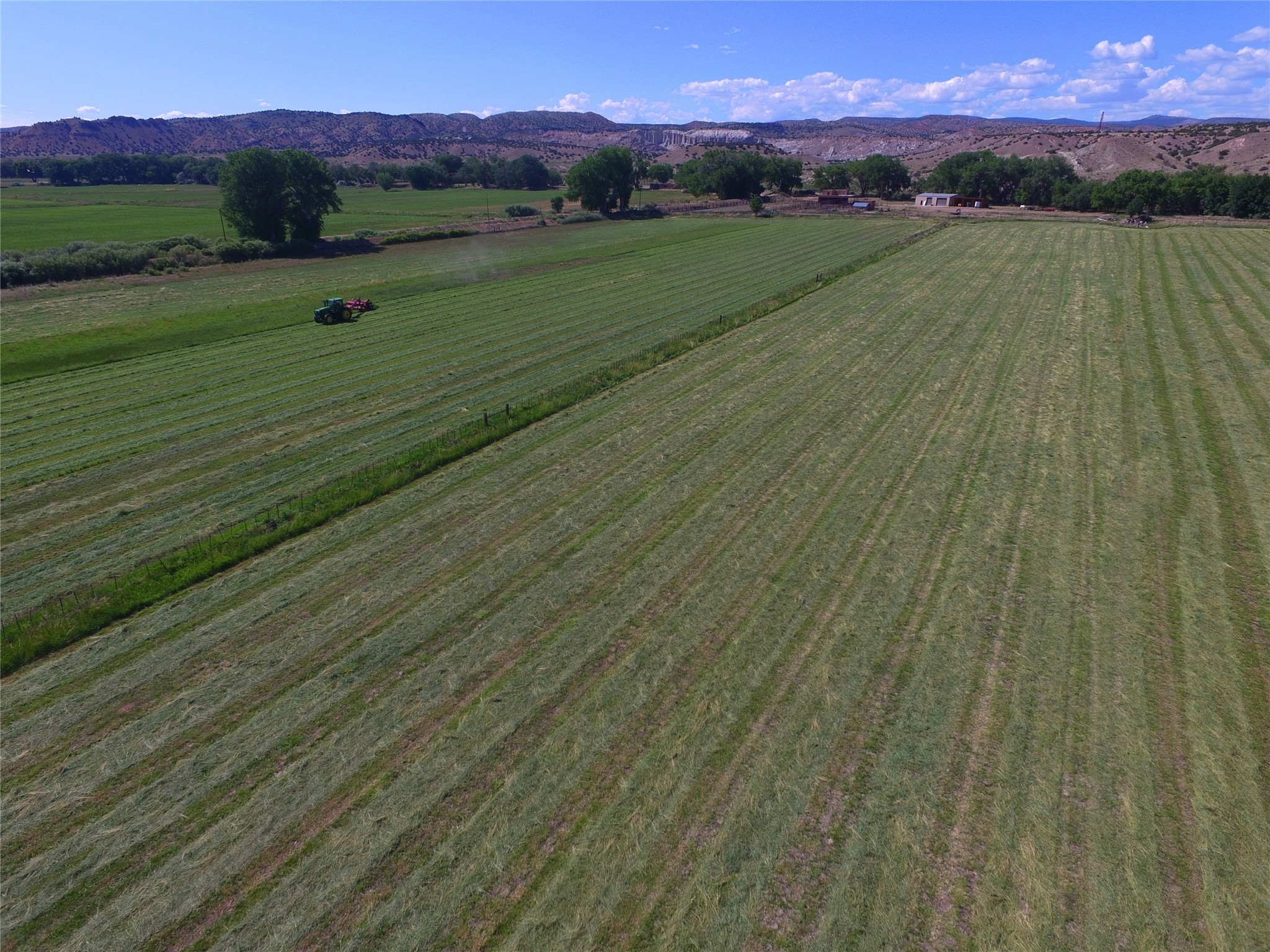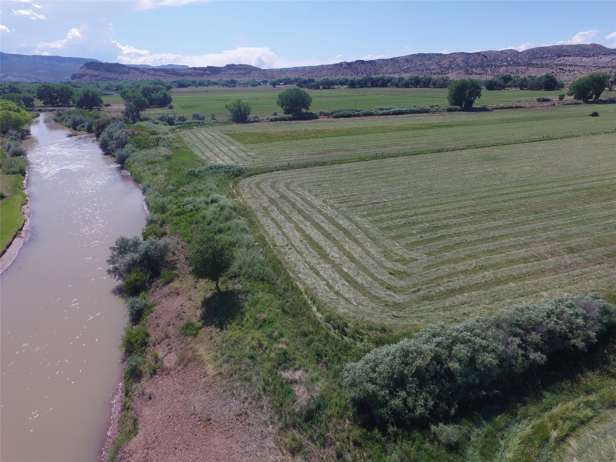 Situated along 1,257 feet of the Chama River, this 66 acre property blends historic charm and agricultural bounty. Huge cottonwoods and lush, productive hay fields dominate the property. The 184 acre-feet of senior (pre-1907) water rights provide abundant and dependable irrigation and are a valuable commodity in arid New Mexico. The resident elk herd can be seen grazing in the fields in mornings and evenings. This property offers beauty and serenity, just an hour from Santa Fe. The adjoining 138 acres with large hacienda is also available (202502923). This property was once part of the Plaza Colorado Land Grant, which dates to 1739, and was named for the dramatic red hills in the area. These same hills went on to inspire American artist, Georgia O'Keeffe. Abiqui was home to O'Keeffe from 1929 until 1984, and many of her paintings depict scenes from the area. This thriving little art community grew around the legacy of the Georgia O'Keeffe Home and Studio. This property supported the substantial livestock operation for the sprawling six-thousand-acre ranch in years past. The improvements include a caretaker's residence, heated equipment barn, pipe corrals, sorting pens, and scales. Outdoor recreation abounds, with excellent fishing on the Chama River, Abiqui Lake, and Vallecitos River. Rafting opportunities are excellent on the Chama. The nearby National Forest offers trails for hiking, horseback riding, and ATV use. The renowned Ojo Caliente Spa is just 35 minutes away. Taos is a one-hour and 20-minute drive and offers world-class skiing and snowboarding. Rancho de Abiquiu Estates Lots 9 and 10 offers an exceptional setting for a dream home or luxury equestrian estate--just one hour from Santa Fe. With its rich history, scenic beauty, wildlife, and productive farmland, it also presents exciting potential for a vineyard, winery, or farm-to-table destination. This versatile property blends historic character and opportunity in a truly unique way.
