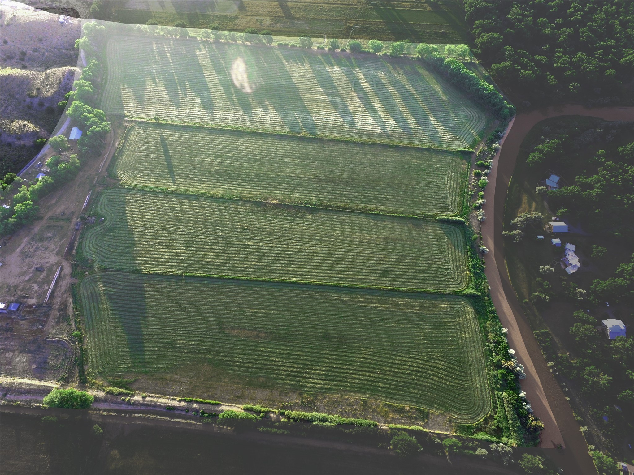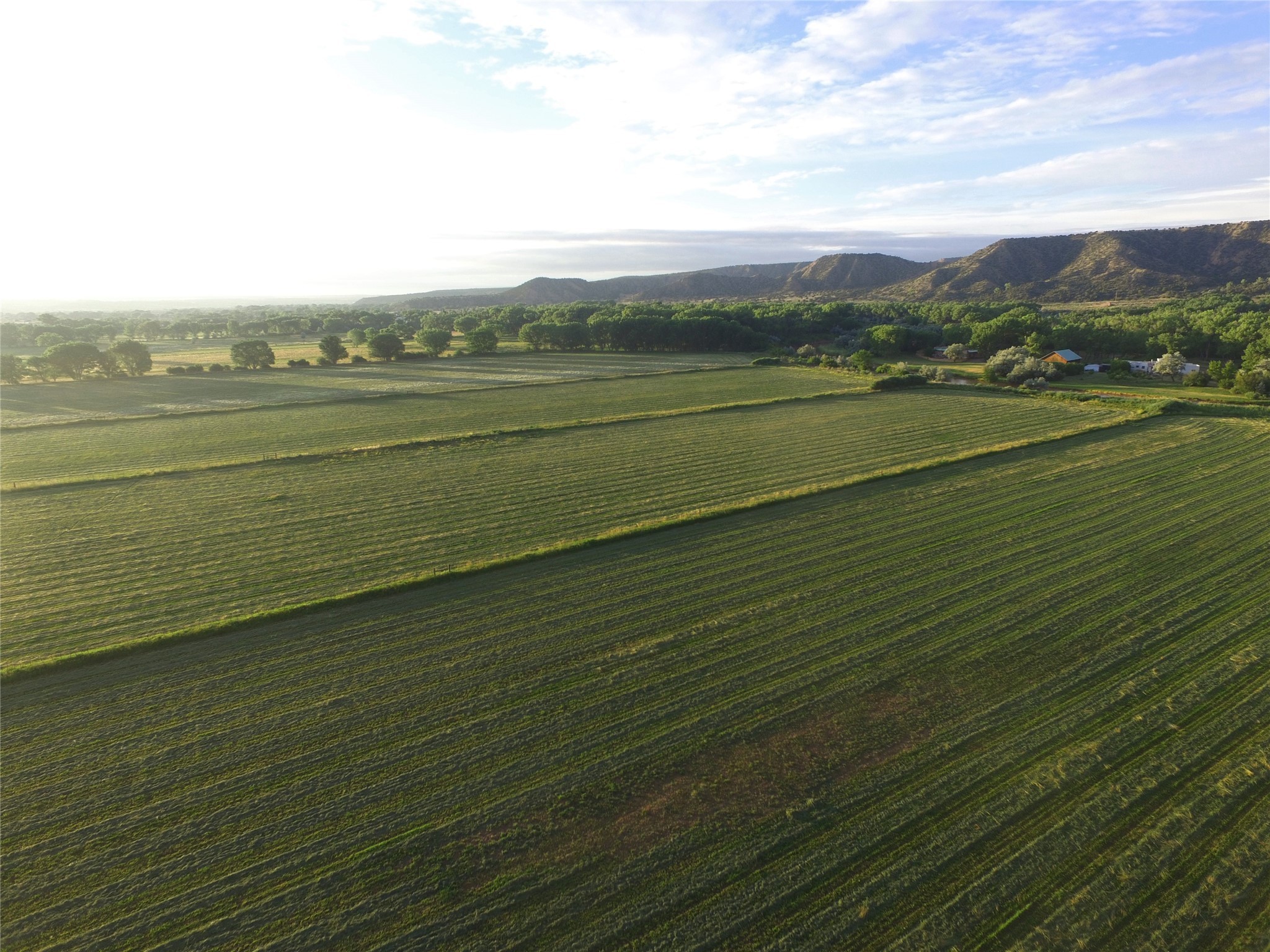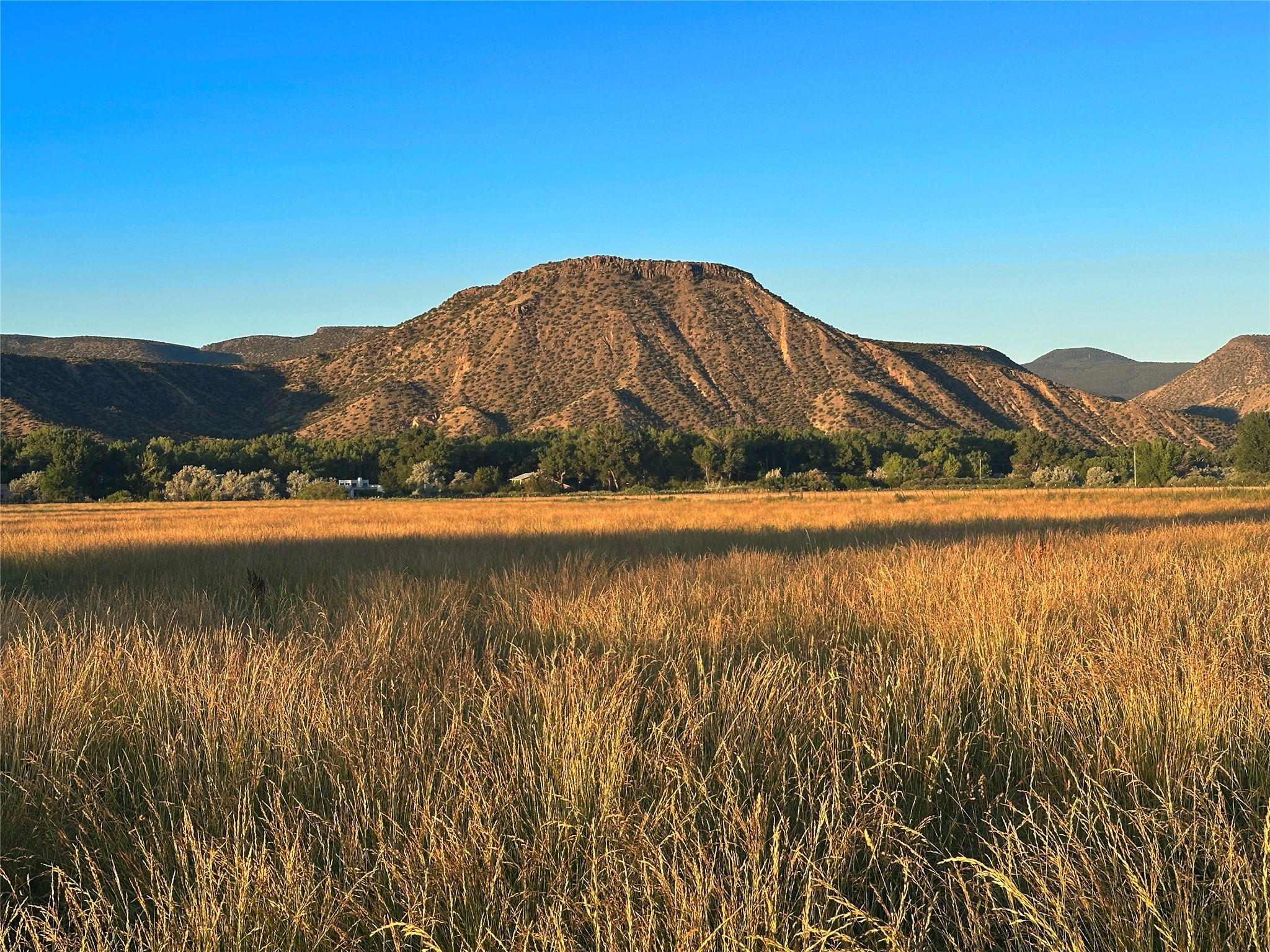 Situated along 1,257 feet of the Chama River, this 66 acre property blends historic charm and agricultural bounty. Huge cottonwoods and lush, productive hay fields dominate the property. The 184 acre-feet of senior (pre-1907) water rights provide abundant and dependable irrigation and are a valuable commodity in arid New Mexico. The resident elk herd can be seen grazing in the fields in mornings and evenings. This property offers beauty and serenity, just an hour from Santa Fe. The adjoining 138 acres with large hacienda is also available (202502923). This property was once part of the Plaza Colorado Land Grant, which dates to 1739, and was named for the dramatic red hills in the area. These same hills went on to inspire American artist, Georgia O'Keeffe. Abiqui was home to O'Keeffe from 1929 until 1984, and many of her paintings depict scenes from the area. This thriving little art community grew around the legacy of the Georgia O'Keeffe Home and Studio. This property supported the substantial livestock operation for the sprawling six-thousand-acre ranch in years past. The improvements include a caretaker's residence, heated equipment barn, pipe corrals, sorting pens, and scales. Outdoor recreation abounds, with excellent fishing on the Chama River, Abiqui Lake, and Vallecitos River. Rafting opportunities are excellent on the Chama. The nearby National Forest offers trails for hiking, horseback riding, and ATV use. The renowned Ojo Caliente Spa is just 35 minutes away. Taos is a one-hour and 20-minute drive and offers world-class skiing and snowboarding. Rancho de Abiquiu Estates Lots 9 and 10 offers an exceptional setting for a dream home or luxury equestrian estate--just one hour from Santa Fe. With its rich history, scenic beauty, wildlife, and productive farmland, it also presents exciting potential for a vineyard, winery, or farm-to-table destination. This versatile property blends historic character and opportunity in a truly unique way.