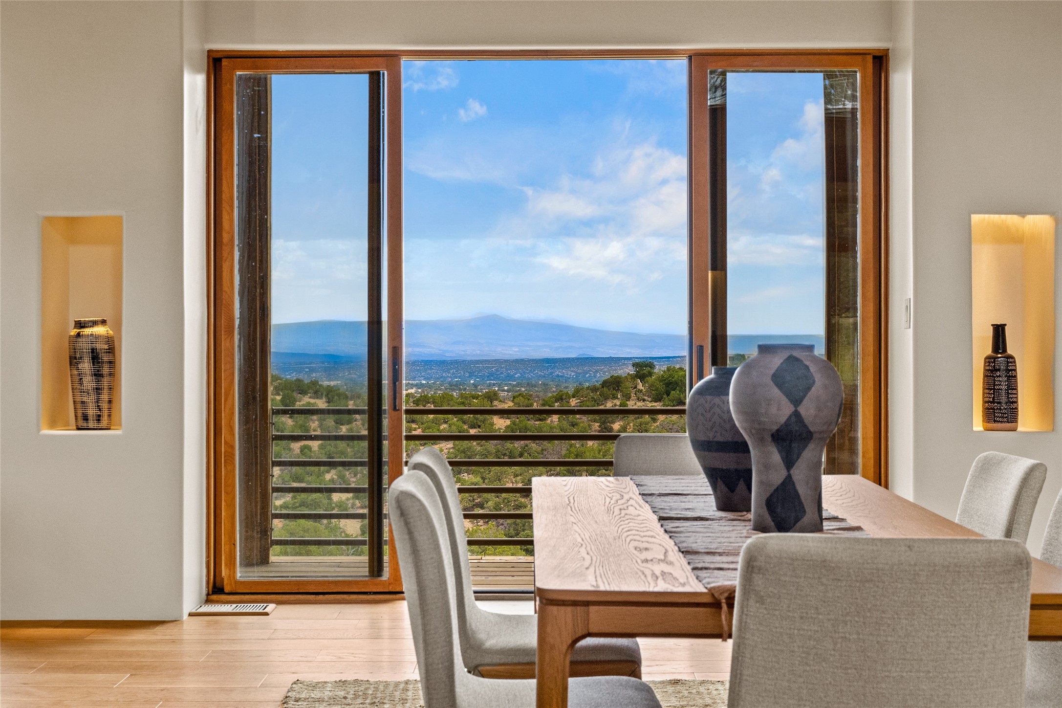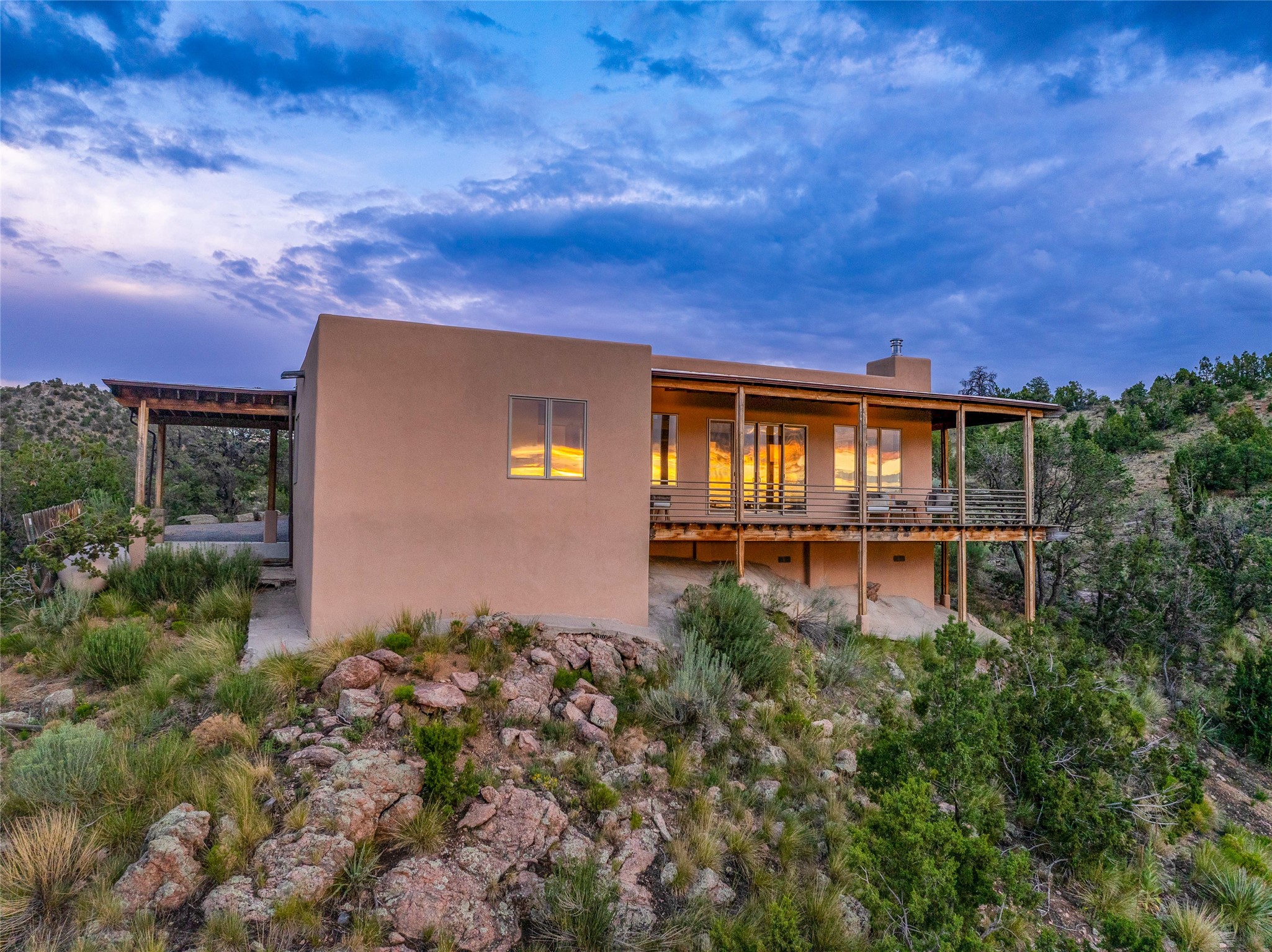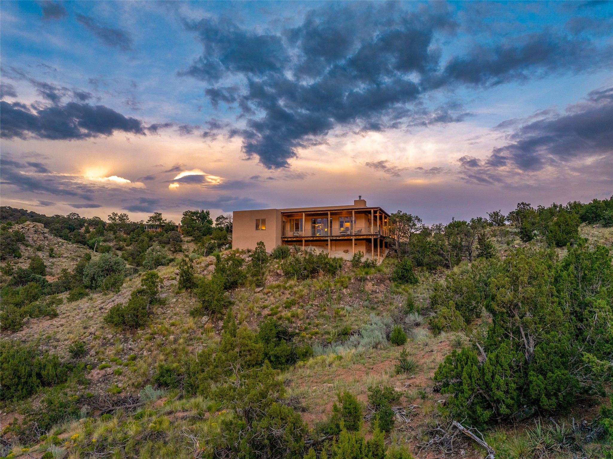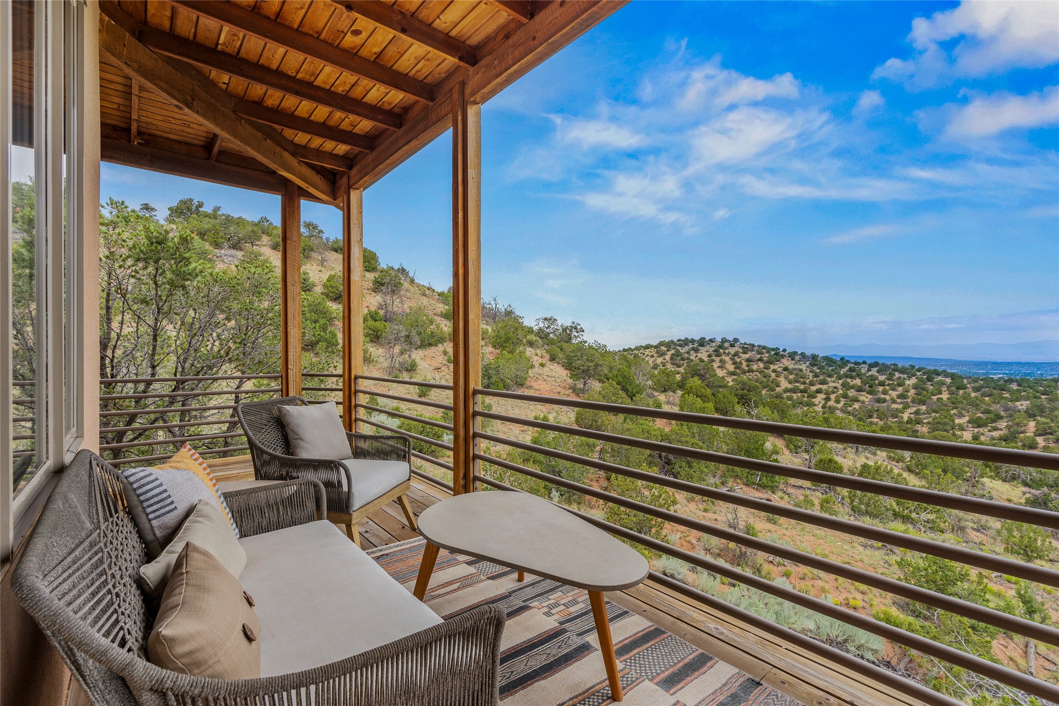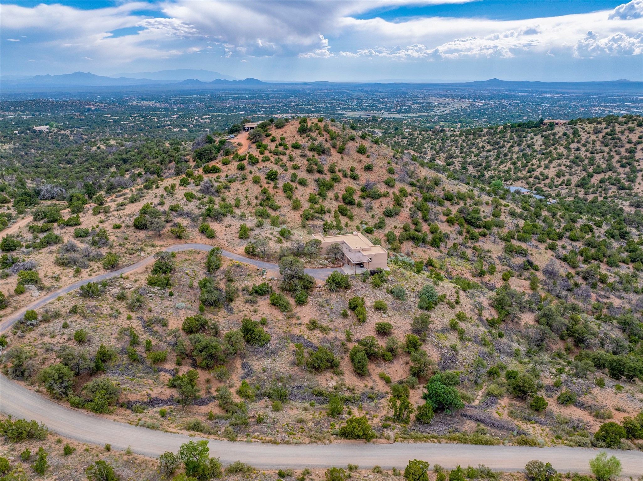 Welcome to your own hilltop "Heaven". A stunning, fully renovated retreat where refined living meets the serenity of sky-high vistas. Perched on 10 private acres, this exceptional residence offers unobstructed panoramic views of the majestic Jemez Mountains, framed by natural rock outcroppings and open skies in every direction.Extensively updated inside and out, the home seamlessly blends custom craftsmanship with modern luxury. Dramatic Mahogany double entry doors and hand-carved doors in the primary suite set a tone of timeless elegance. Recent exterior upgrades include a brand-new roof and fresh stucco for lasting curb appeal.Inside, a chef's dream kitchen awaits--featuring sleek quartz countertops and top-tier stainless steel appliances, ideal for both quiet evenings and lively entertaining. Rich wood floors flow through light-filled open living spaces that draw the eye to the breathtaking landscape beyond.Designed for year-round comfort, the home includes a new tankless water heater, furnace, and central air conditioning. Guests will enjoy a beautifully updated bathroom and a thoughtfully designed floor plan that offers privacy and separation between the primary suite and guest quarters.Step outside onto newly refreshed decks and savor the peace of your elevated retreat--perfect for sunset cocktails, morning coffee, or stargazing under New Mexico's vast night skies.Elegant, tranquil, and truly move-in ready, this one-of-a-kind property invites you to live above it all--where natural beauty, modern amenities, and quiet luxury come together in perfect harmony.