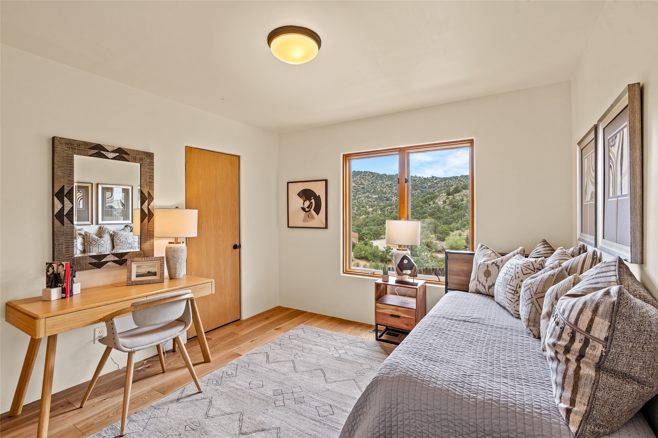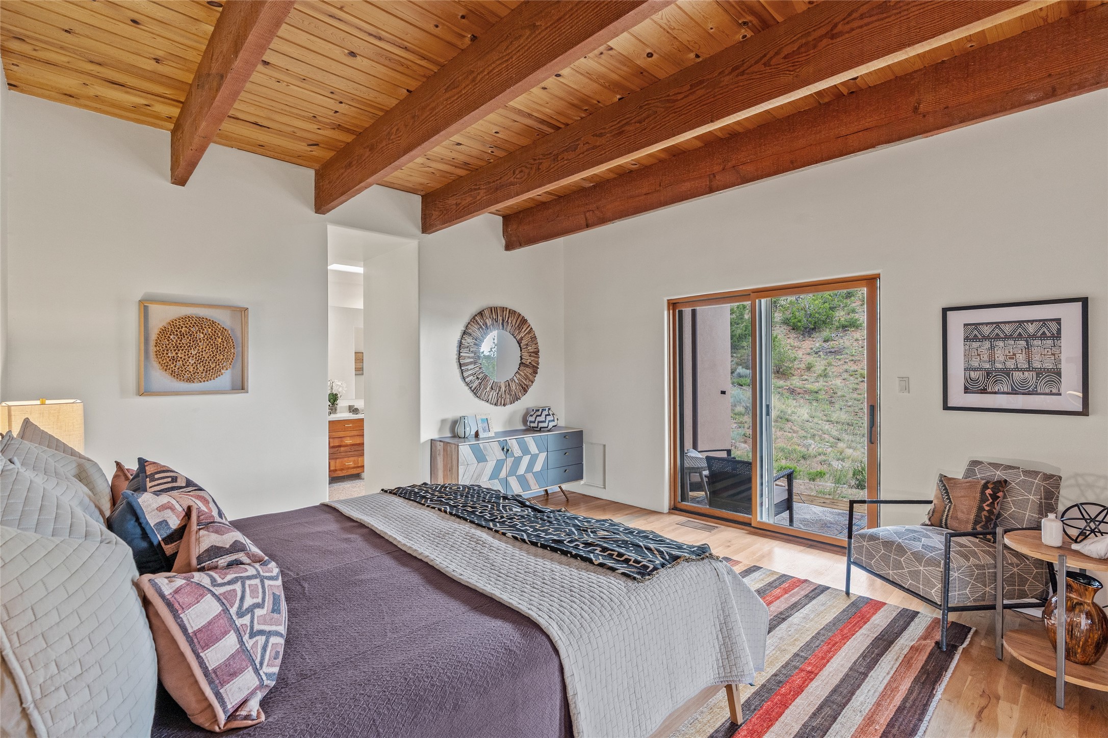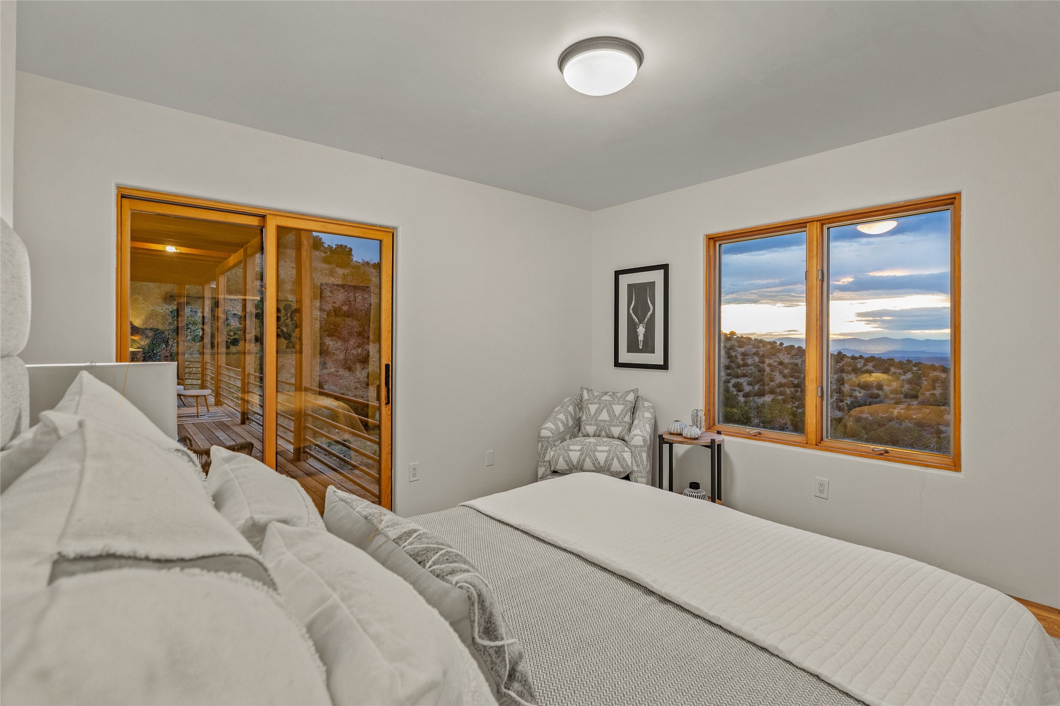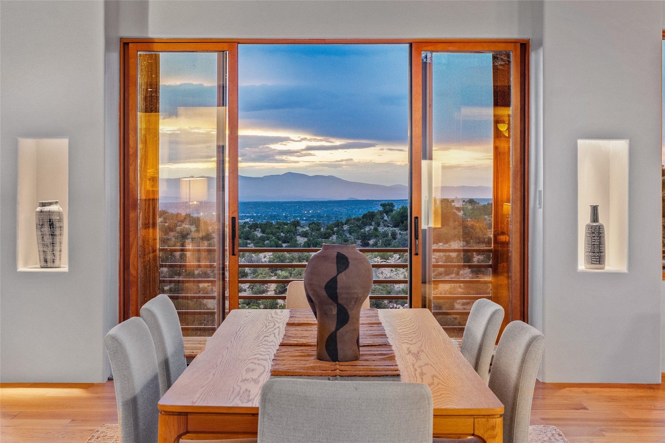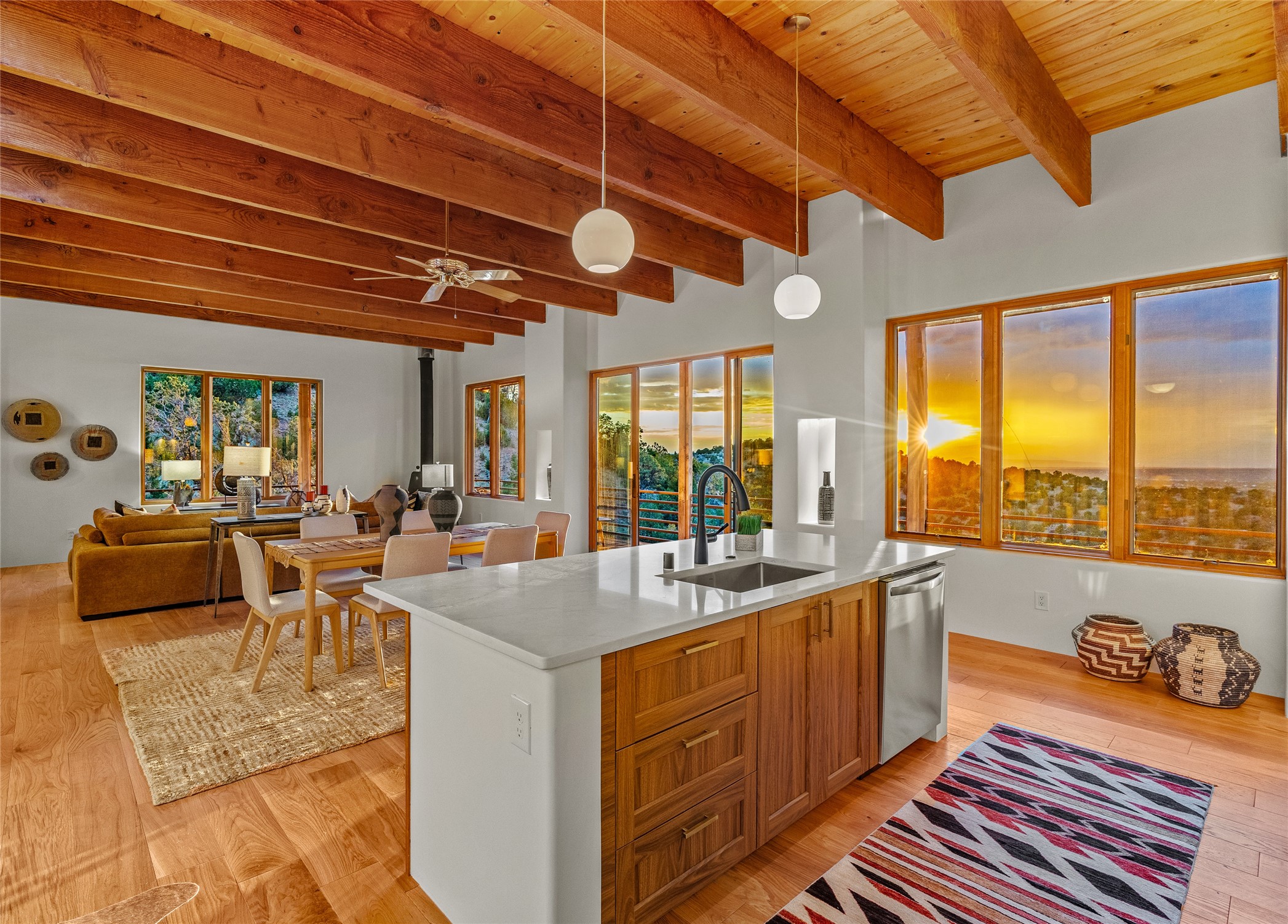 Welcome to your own hilltop "Heaven". A stunning, fully renovated retreat where refined living meets the serenity of sky-high vistas. Perched on 10 private acres, this exceptional residence offers unobstructed panoramic views of the majestic Jemez Mountains, framed by natural rock outcroppings and open skies in every direction.Extensively updated inside and out, the home seamlessly blends custom craftsmanship with modern luxury. Dramatic Mahogany double entry doors and hand-carved doors in the primary suite set a tone of timeless elegance. Recent exterior upgrades include a brand-new roof and fresh stucco for lasting curb appeal.Inside, a chef's dream kitchen awaits--featuring sleek quartz countertops and top-tier stainless steel appliances, ideal for both quiet evenings and lively entertaining. Rich wood floors flow through light-filled open living spaces that draw the eye to the breathtaking landscape beyond.Designed for year-round comfort, the home includes a new tankless water heater, furnace, and central air conditioning. Guests will enjoy a beautifully updated bathroom and a thoughtfully designed floor plan that offers privacy and separation between the primary suite and guest quarters.Step outside onto newly refreshed decks and savor the peace of your elevated retreat--perfect for sunset cocktails, morning coffee, or stargazing under New Mexico's vast night skies.Elegant, tranquil, and truly move-in ready, this one-of-a-kind property invites you to live above it all--where natural beauty, modern amenities, and quiet luxury come together in perfect harmony.