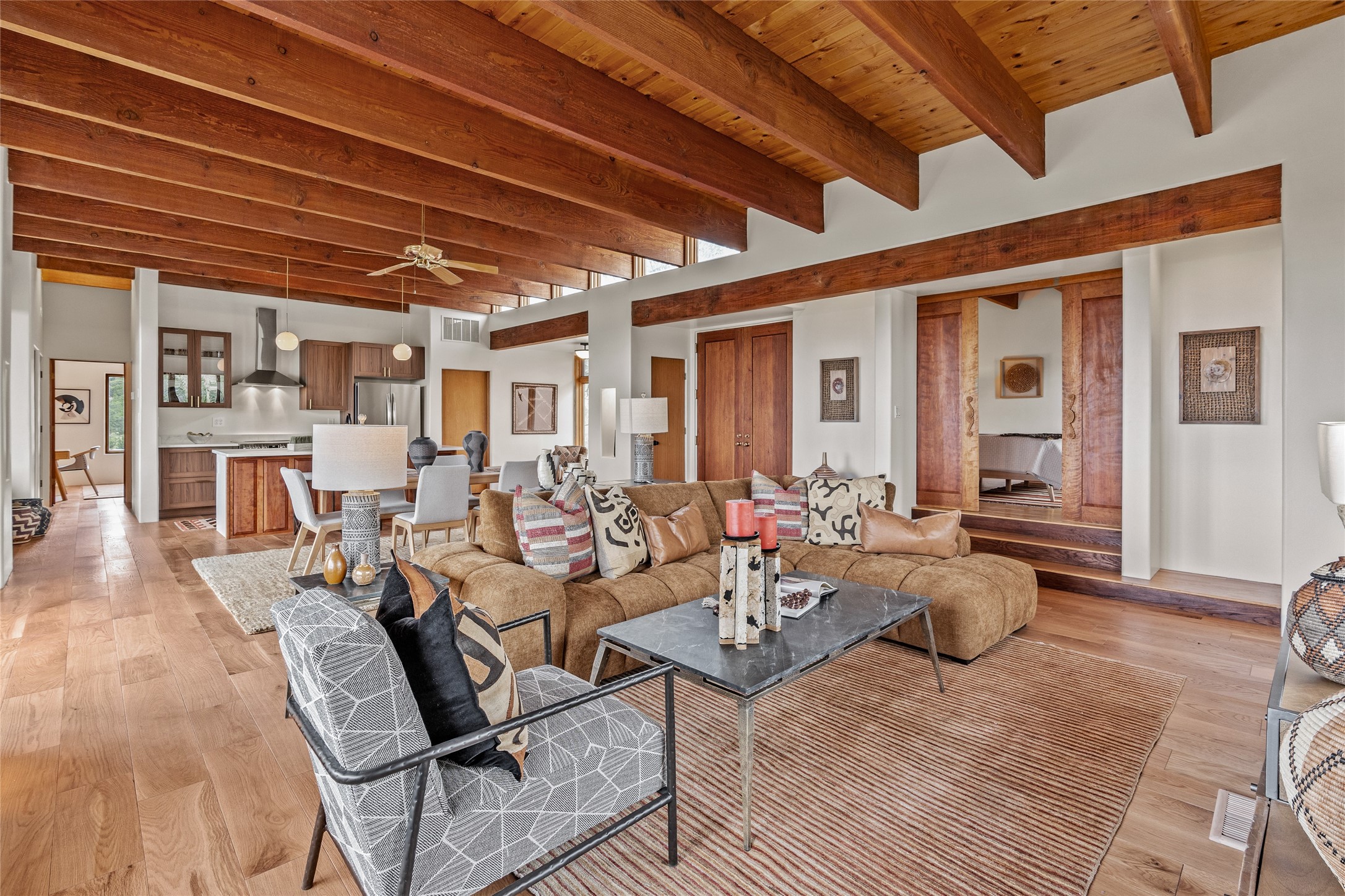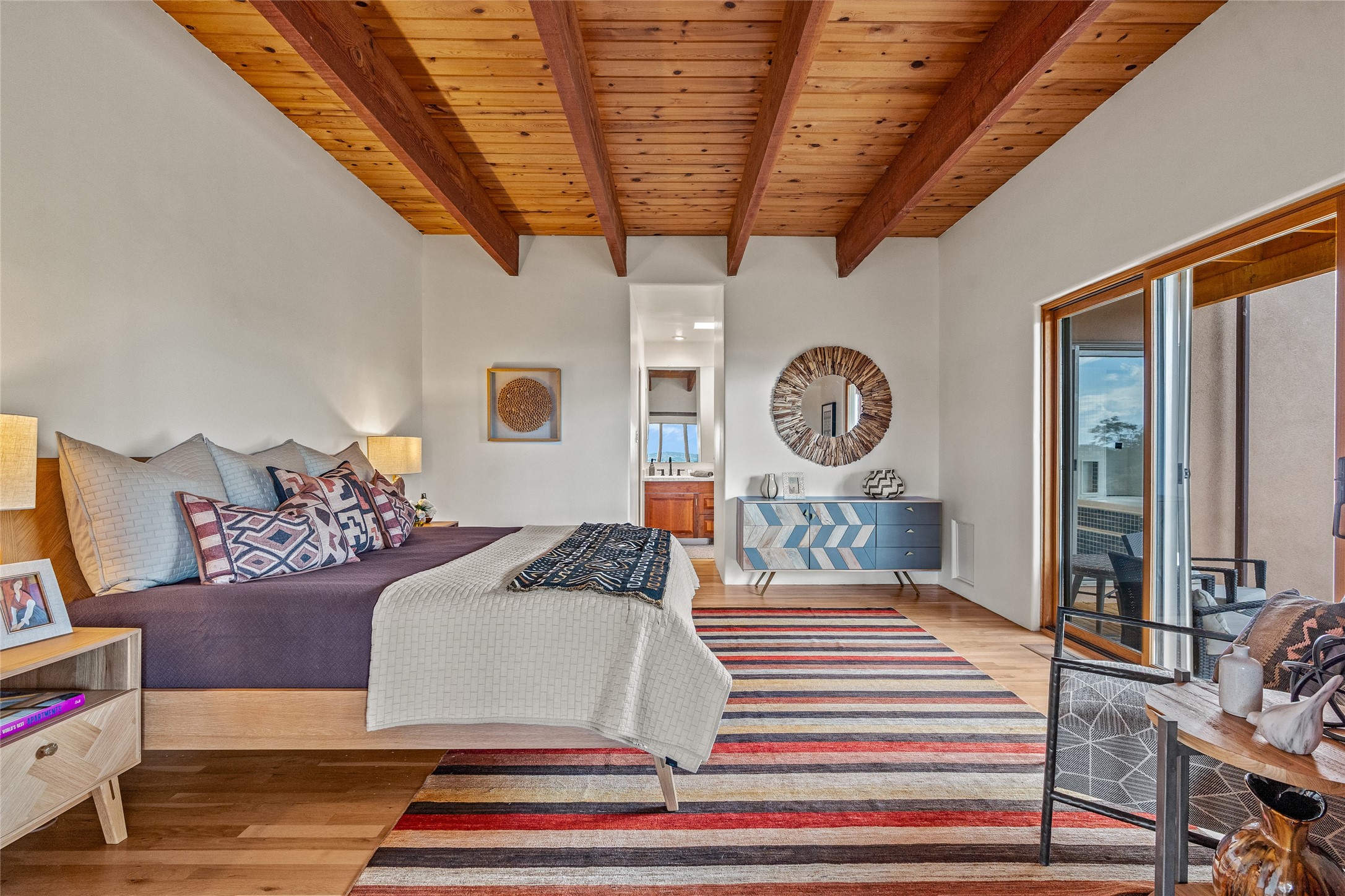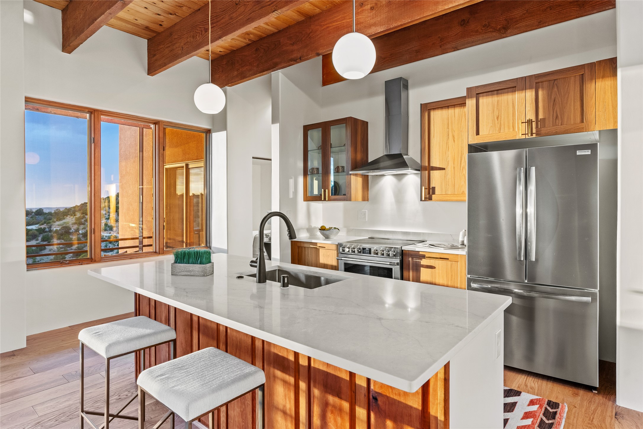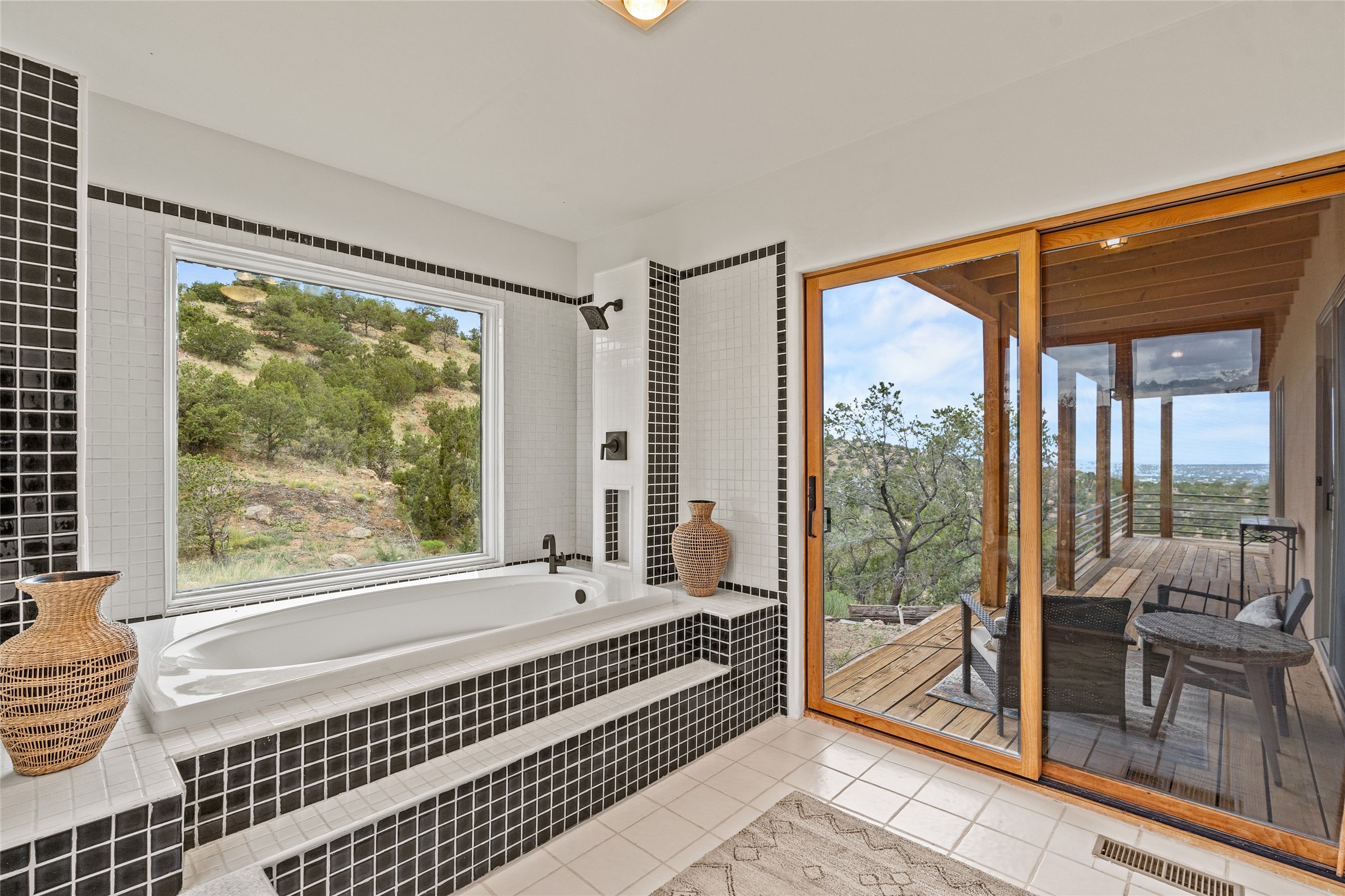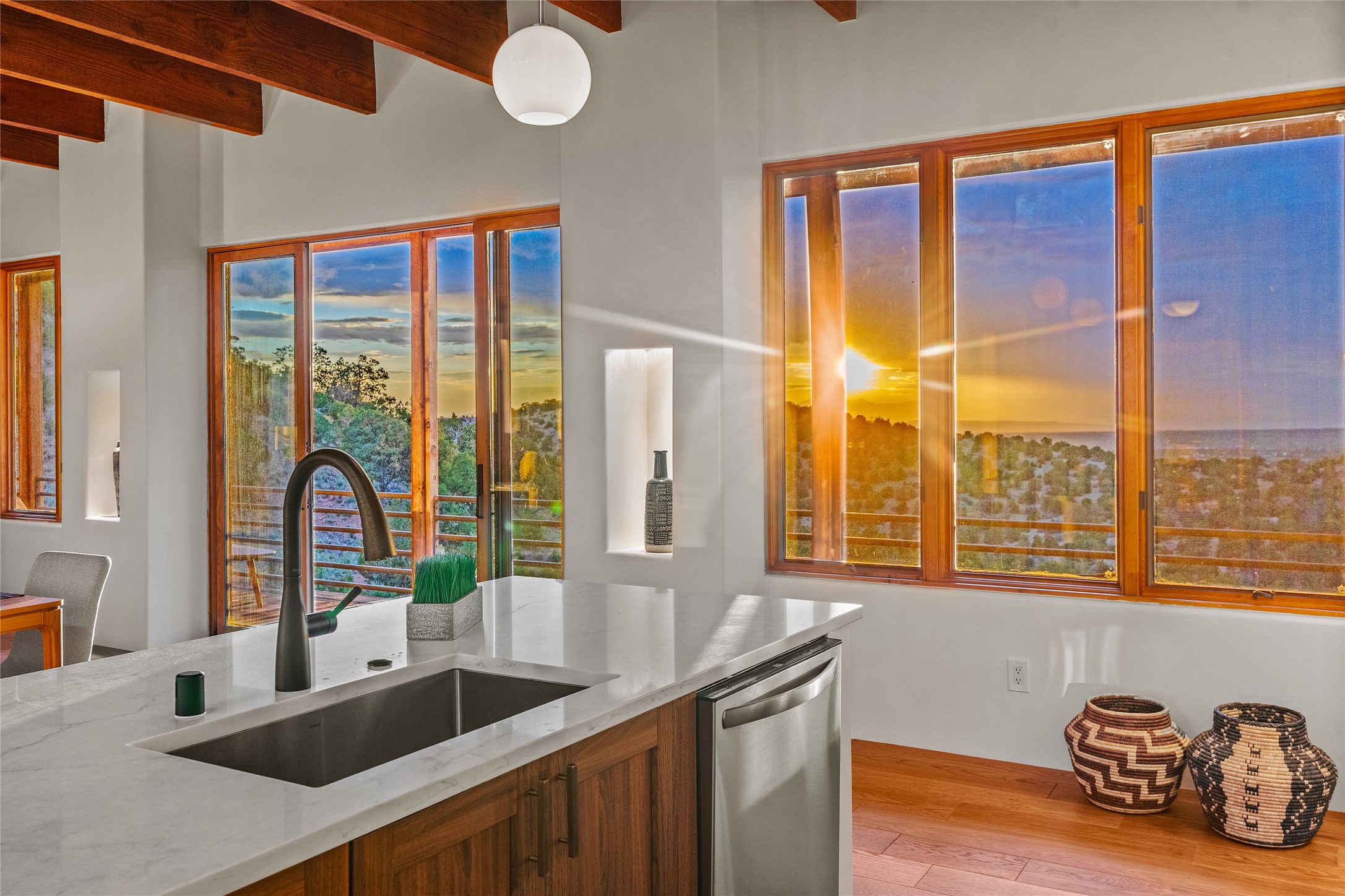 Welcome to your own hilltop "Heaven". A stunning, fully renovated retreat where refined living meets the serenity of sky-high vistas. Perched on 10 private acres, this exceptional residence offers unobstructed panoramic views of the majestic Jemez Mountains, framed by natural rock outcroppings and open skies in every direction.Extensively updated inside and out, the home seamlessly blends custom craftsmanship with modern luxury. Dramatic Mahogany double entry doors and hand-carved doors in the primary suite set a tone of timeless elegance. Recent exterior upgrades include a brand-new roof and fresh stucco for lasting curb appeal.Inside, a chef's dream kitchen awaits--featuring sleek quartz countertops and top-tier stainless steel appliances, ideal for both quiet evenings and lively entertaining. Rich wood floors flow through light-filled open living spaces that draw the eye to the breathtaking landscape beyond.Designed for year-round comfort, the home includes a new tankless water heater, furnace, and central air conditioning. Guests will enjoy a beautifully updated bathroom and a thoughtfully designed floor plan that offers privacy and separation between the primary suite and guest quarters.Step outside onto newly refreshed decks and savor the peace of your elevated retreat--perfect for sunset cocktails, morning coffee, or stargazing under New Mexico's vast night skies.Elegant, tranquil, and truly move-in ready, this one-of-a-kind property invites you to live above it all--where natural beauty, modern amenities, and quiet luxury come together in perfect harmony.