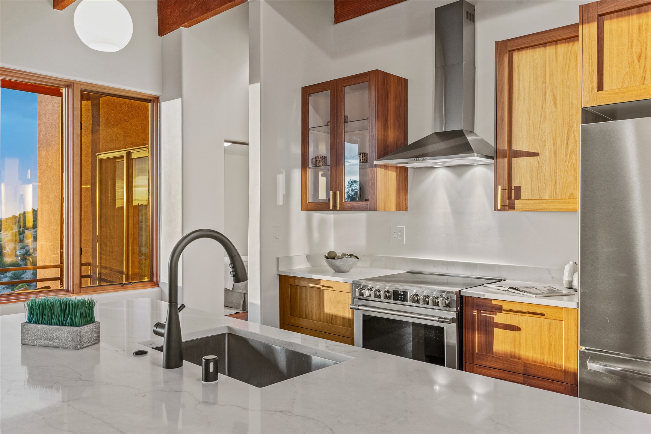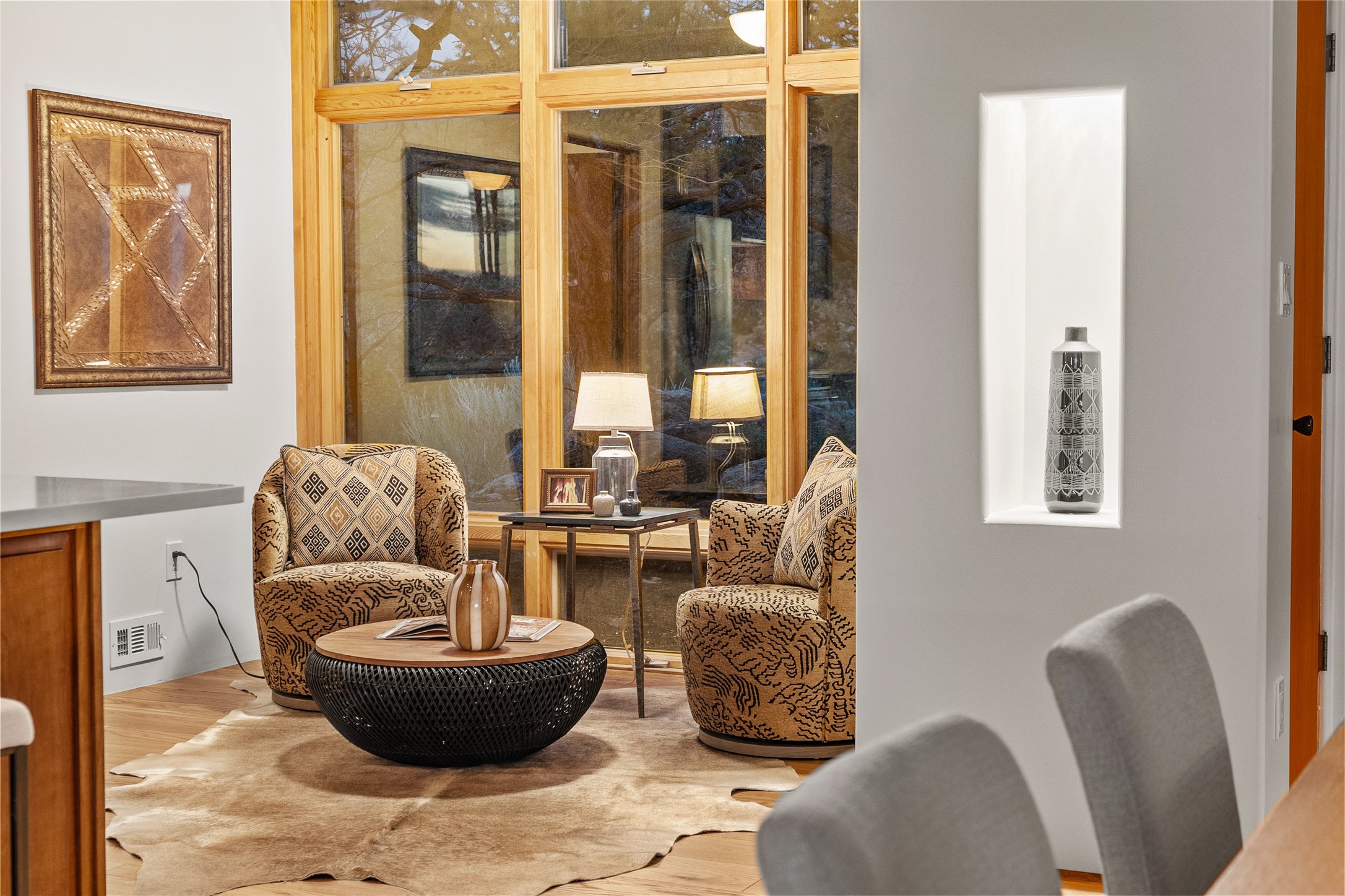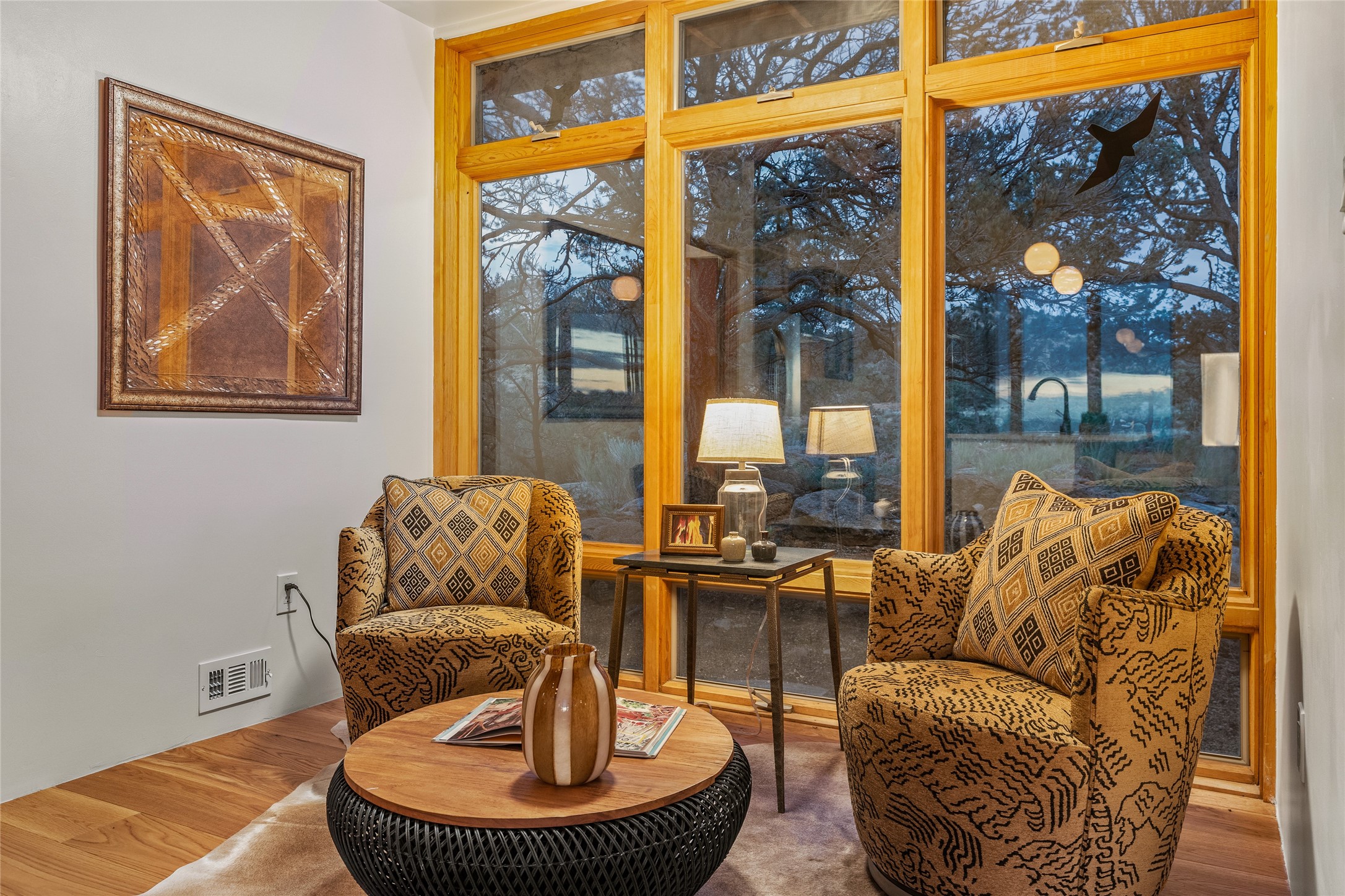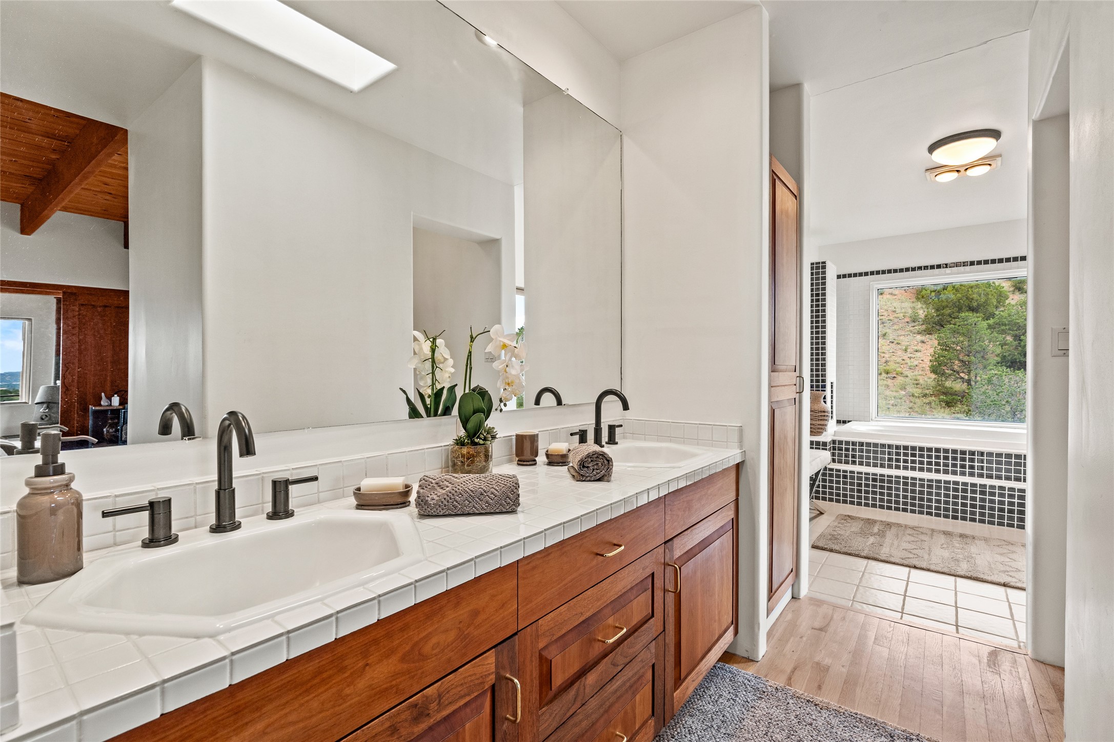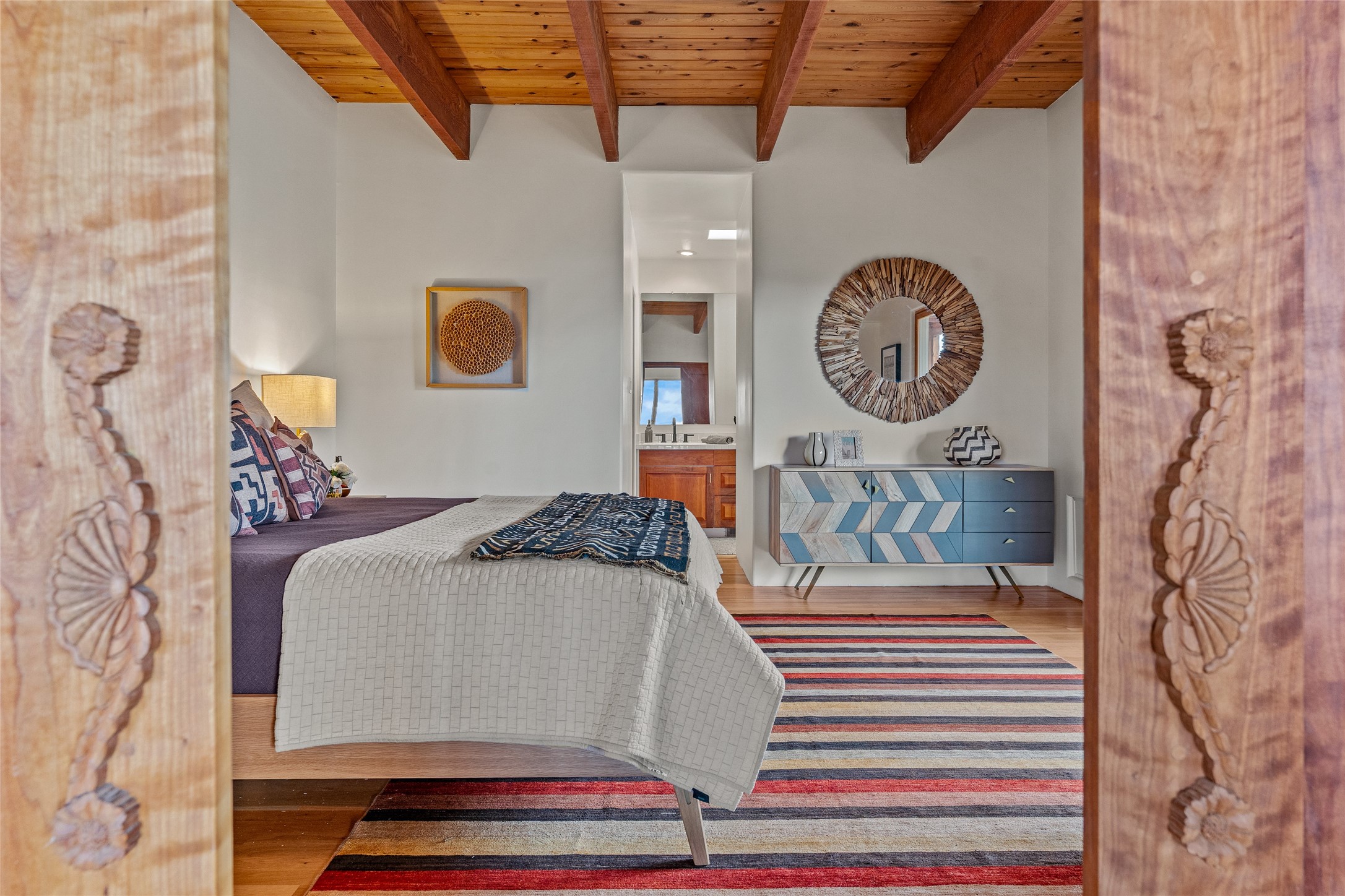 Welcome to your own hilltop "Heaven". A stunning, fully renovated retreat where refined living meets the serenity of sky-high vistas. Perched on 10 private acres, this exceptional residence offers unobstructed panoramic views of the majestic Jemez Mountains, framed by natural rock outcroppings and open skies in every direction.Extensively updated inside and out, the home seamlessly blends custom craftsmanship with modern luxury. Dramatic Mahogany double entry doors and hand-carved doors in the primary suite set a tone of timeless elegance. Recent exterior upgrades include a brand-new roof and fresh stucco for lasting curb appeal.Inside, a chef's dream kitchen awaits--featuring sleek quartz countertops and top-tier stainless steel appliances, ideal for both quiet evenings and lively entertaining. Rich wood floors flow through light-filled open living spaces that draw the eye to the breathtaking landscape beyond.Designed for year-round comfort, the home includes a new tankless water heater, furnace, and central air conditioning. Guests will enjoy a beautifully updated bathroom and a thoughtfully designed floor plan that offers privacy and separation between the primary suite and guest quarters.Step outside onto newly refreshed decks and savor the peace of your elevated retreat--perfect for sunset cocktails, morning coffee, or stargazing under New Mexico's vast night skies.Elegant, tranquil, and truly move-in ready, this one-of-a-kind property invites you to live above it all--where natural beauty, modern amenities, and quiet luxury come together in perfect harmony.