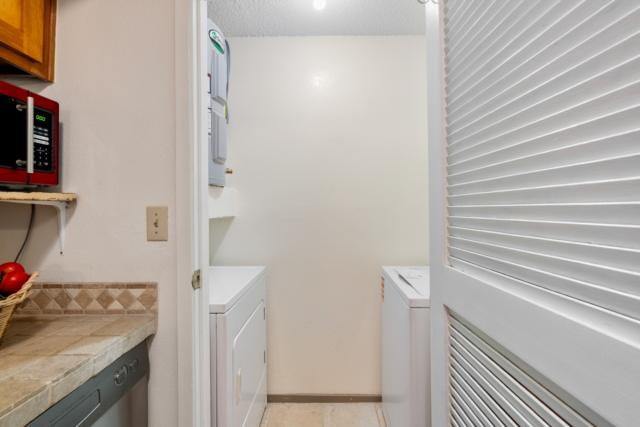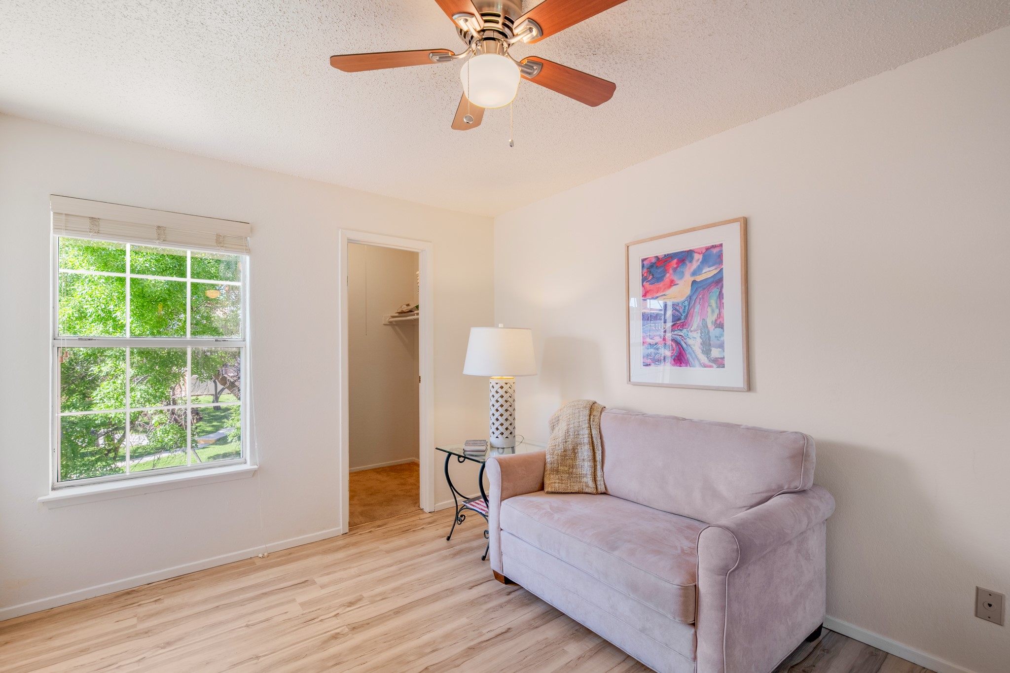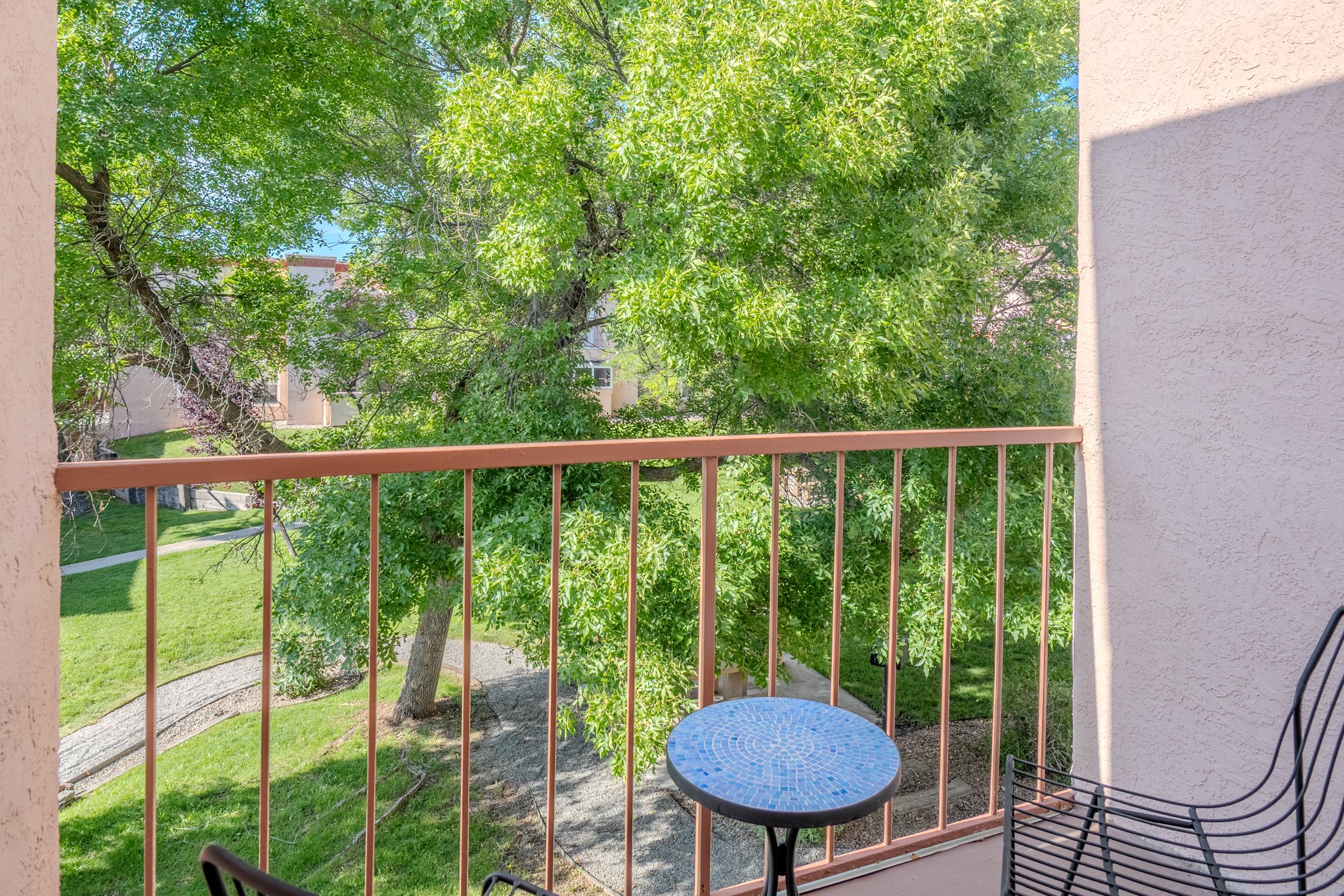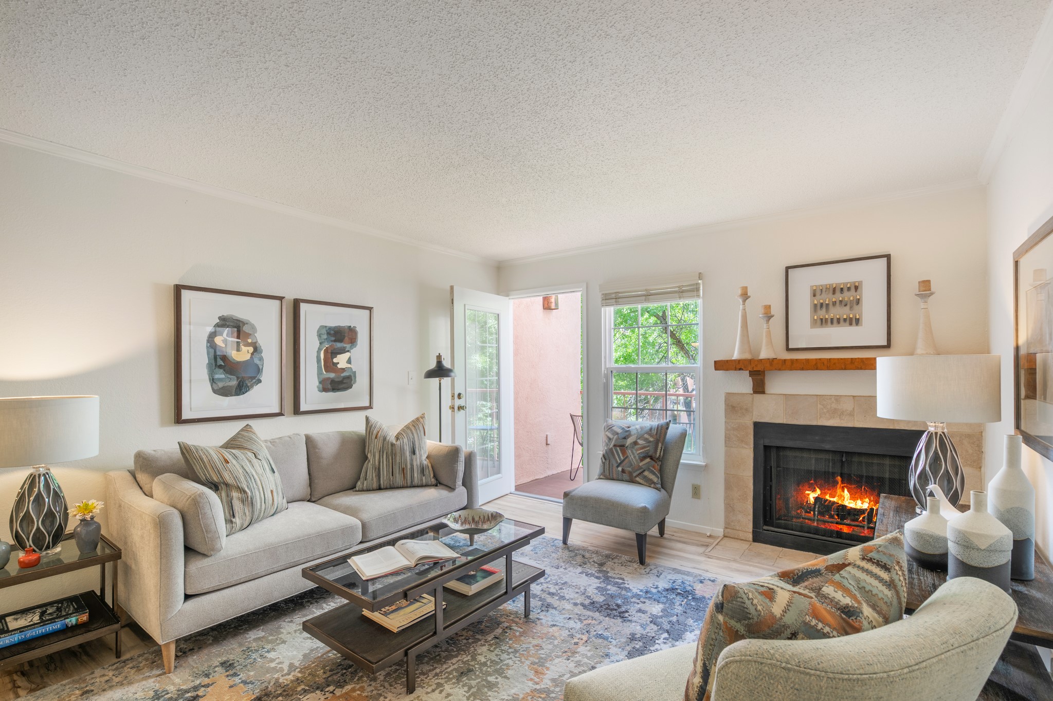This wonderful condo is the most affordable 2 bedroom 2 bath unit with a pool, hot tub, sauna, full workout room, large community room with a grand piano in town !! Central air conditioning, luxury vinyl flooring with no carpet. Working wood fireplace with a lovely patio to have your morning coffee while watching the birds. This great central location makes it just minutes to get anywhere in town. The HOA fee is very inclusive covering stucco, roofing, all green spaces and more. If you are looking for an affordable property to get started in Santa Fe or you are a savvy investor looking to add to your portfolio then please don't miss out on this great property!!