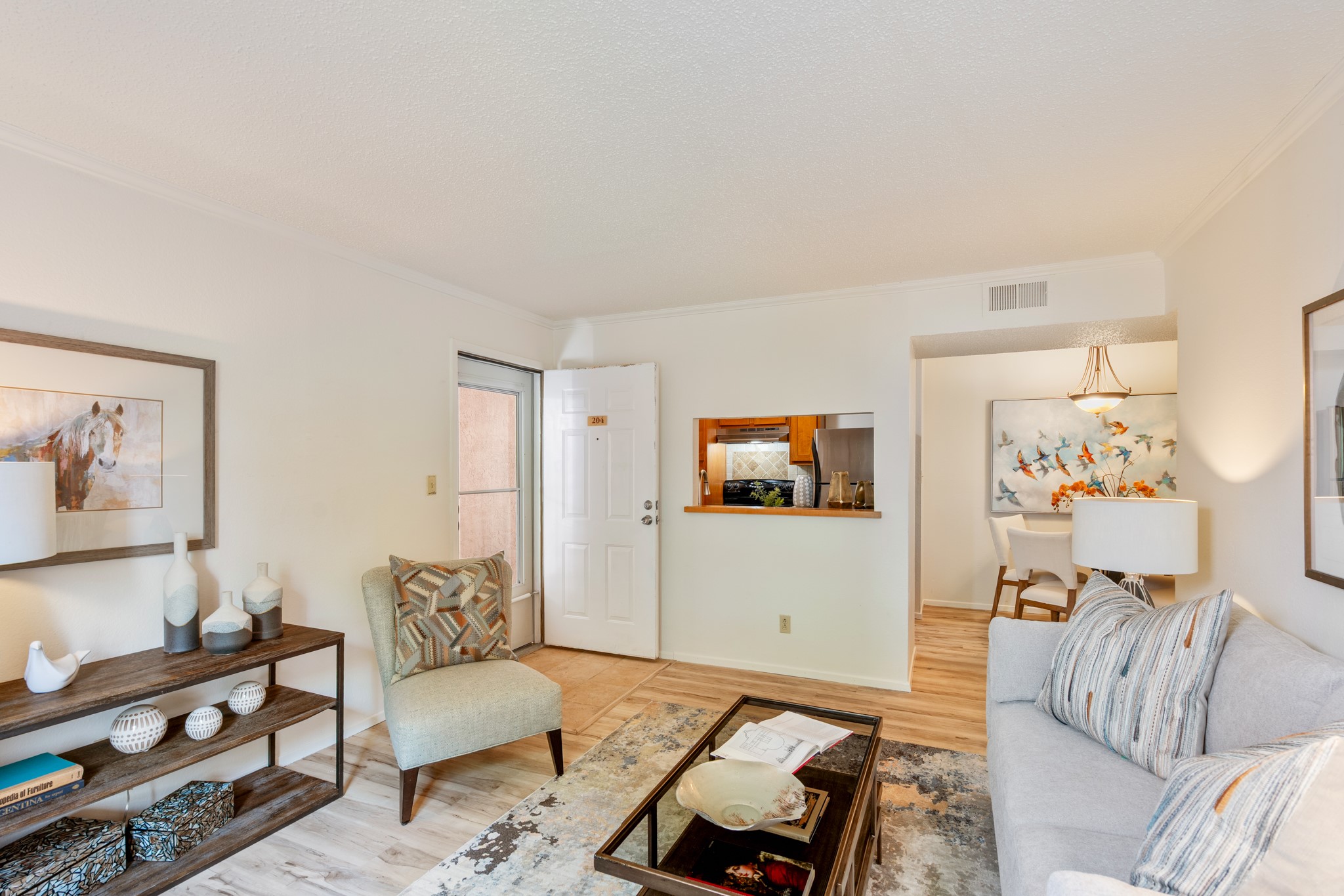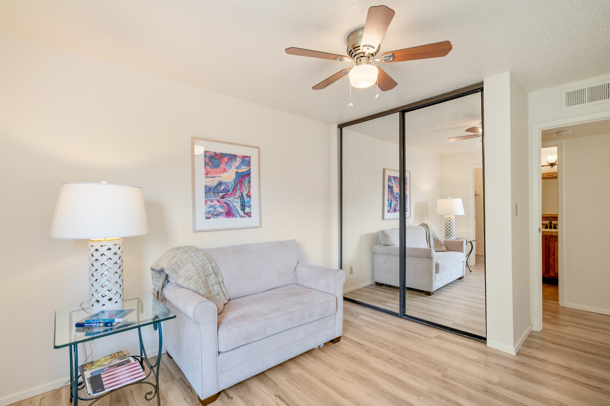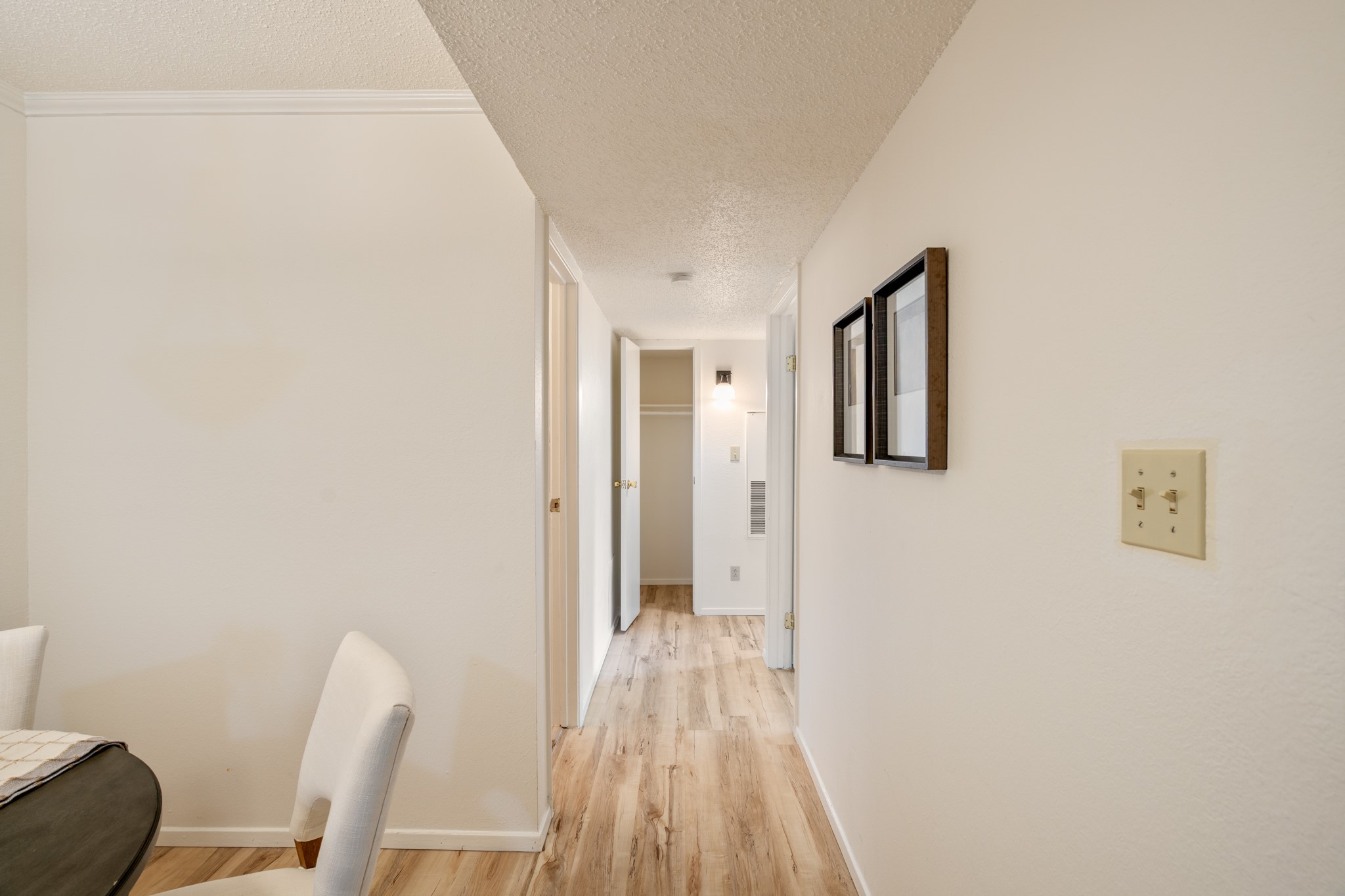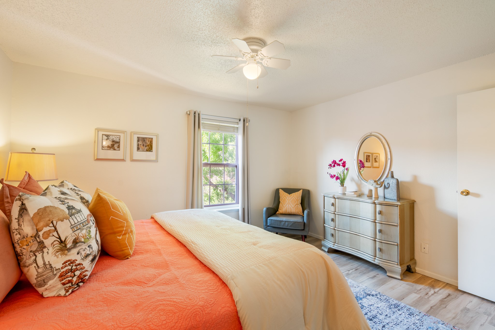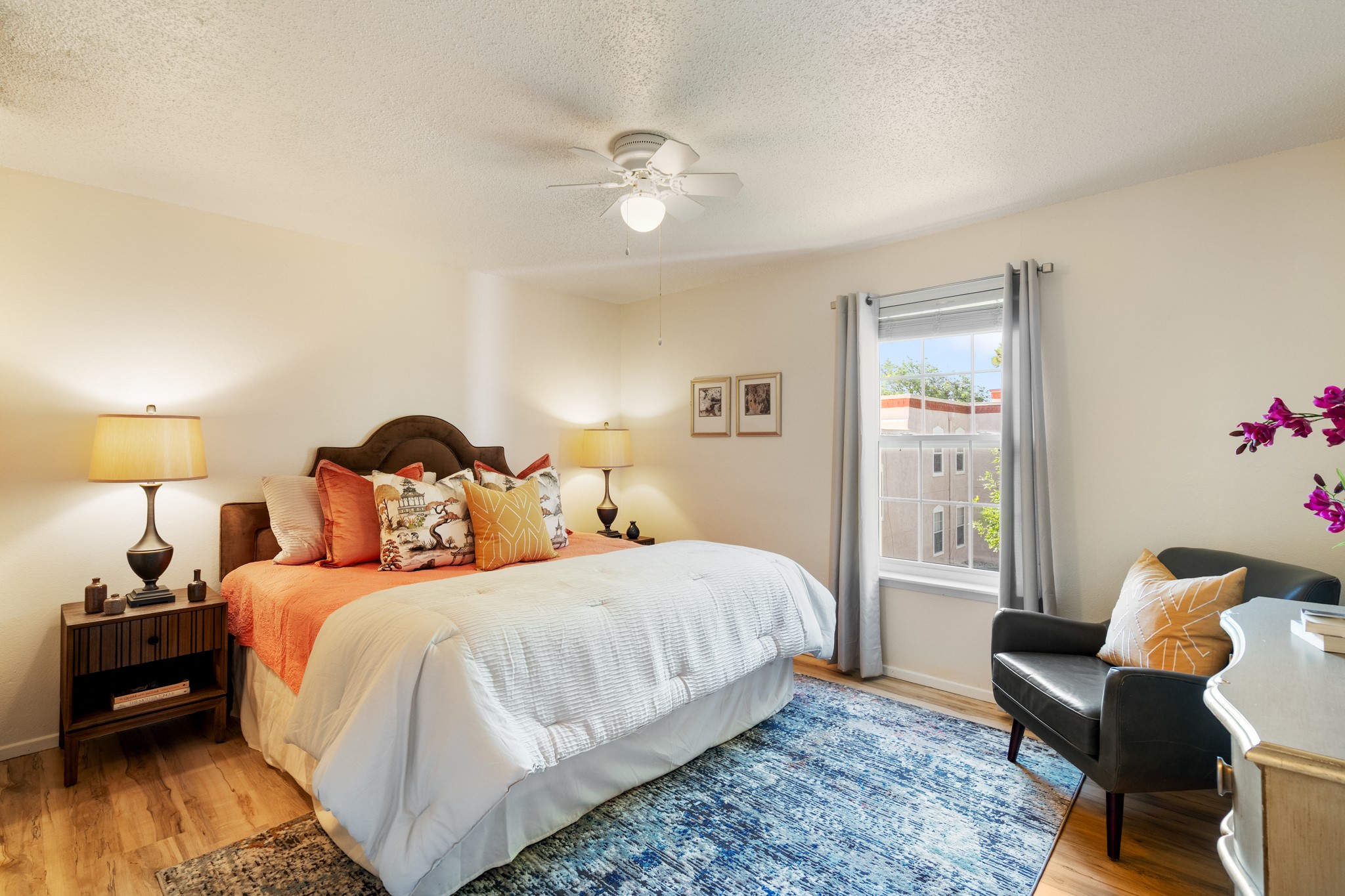 This wonderful condo is the most affordable 2 bedroom 2 bath unit with a pool, hot tub, sauna, full workout room, large community room with a grand piano in town !! Central air conditioning, luxury vinyl flooring with no carpet. Working wood fireplace with a lovely patio to have your morning coffee while watching the birds. This great central location makes it just minutes to get anywhere in town. The HOA fee is very inclusive covering stucco, roofing, all green spaces and more. If you are looking for an affordable property to get started in Santa Fe or you are a savvy investor looking to add to your portfolio then please don't miss out on this great property!!