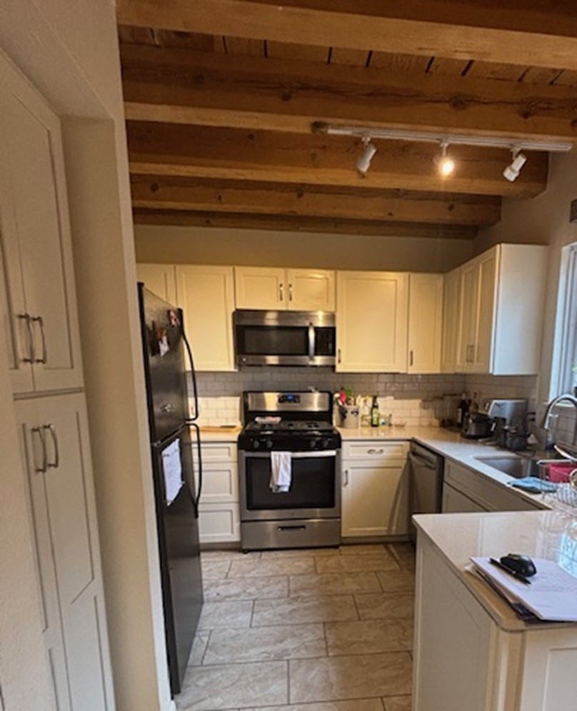 This Condo is located in the center of South Capital C1 district, across the street from Body and Clafoutis! Walk to everything, Trader Joes, Trove, Maria's, or Whole Foods! This large, open and comfortable condo features Santa Fe detailing like beams and kiva fireplace. It has 3 large bedrooms and 2 baths. This lovely property can be used as one large home, or two separate rentals for residential or professional office space. Newly upgraded kitchen with clean lines and bright, sunny interior, new carpet and boxcar tile, insulated acoustic wall for privacy, tiled baths, built in bookshelves, cozy courtyard, fenced and with plenty of parking, The perfect Pied de Tierre in a fantastic location in Santa Fe! Was a Vacation Rental, Short term rentals are permitted and one does not need a short term rental permit from the City. Just a simple registration due to zoning. Short term one side and long term the other and this property will generate great income. Or live in one side and run your business from the other. $9,000 decorators allowance being offered by Sellers