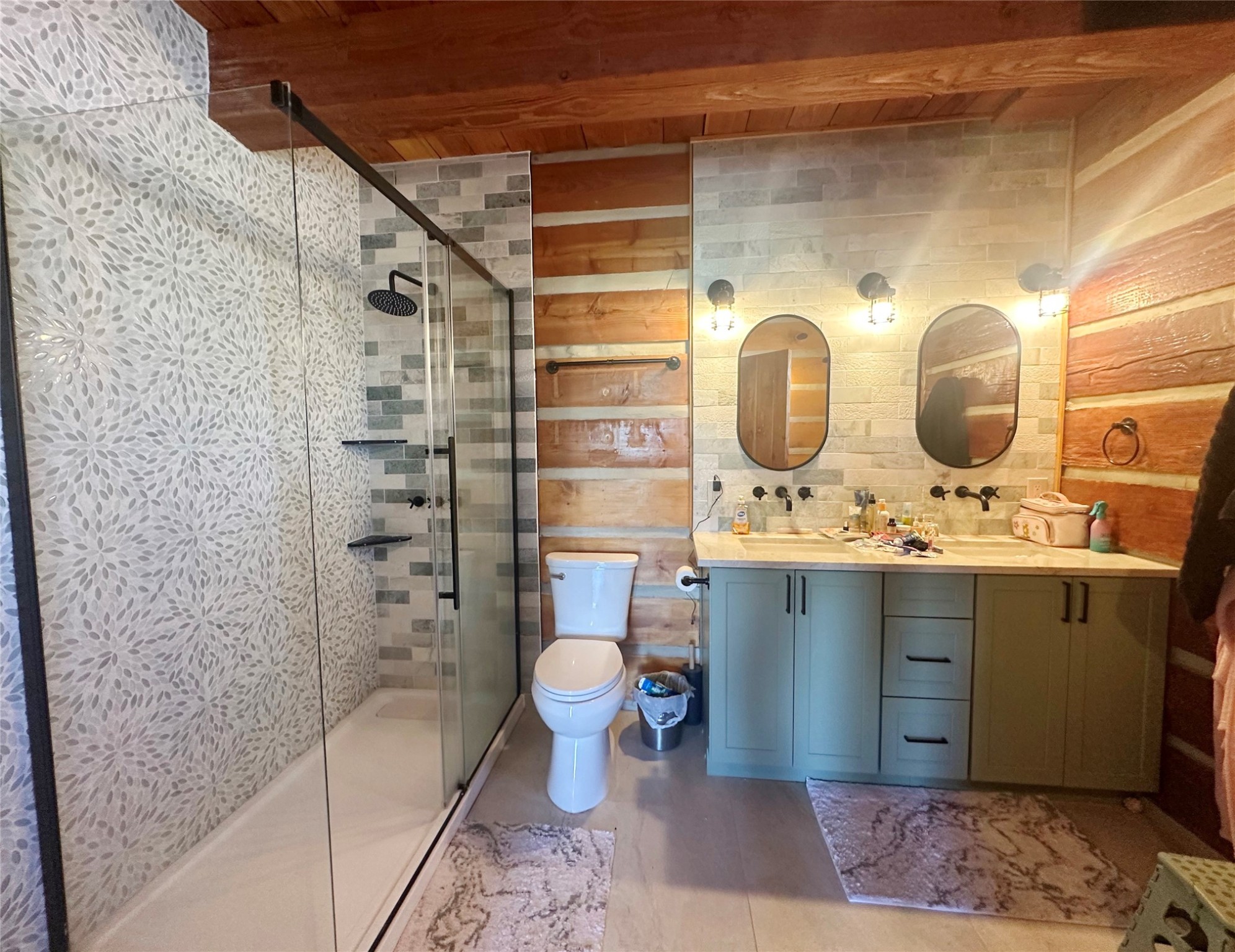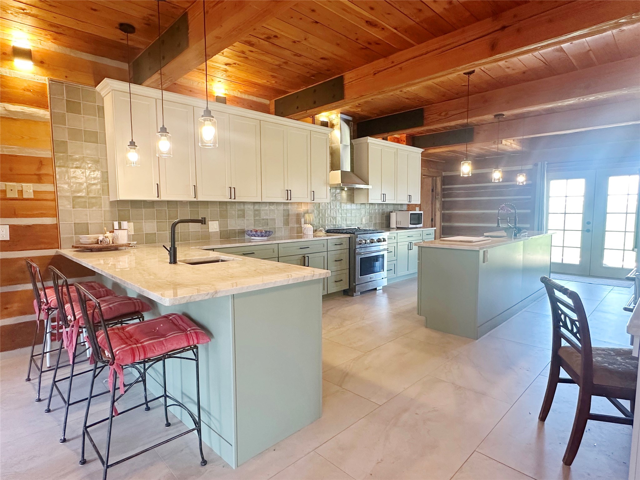This two-story, 2,477 sq ft log cabin sits on 10 flat, usable acres in the open grasslands of Stanley, just 50 minutes from Santa Fe. The home features vaulted ceilings, modern finishes, and a practical layout with 3 bedrooms and 3 full bathrooms. The main level includes a primary suite with ensuite bath, a second full guest bath, an updated kitchen, and a central living area with a two-way fireplace and radiant floor heating. South-facing windows provide abundant natural light and support passive solar. Upstairs, a loft-style landing leads to two additional bedrooms and a full bathroom. A covered carport offers sheltered parking and extra storage. The surrounding acreage is open and accessible, with wide-ranging views in every direction. Whether you're looking for a full-time residence or a comfortable retreat from the city, this property is ready to welcome you home.