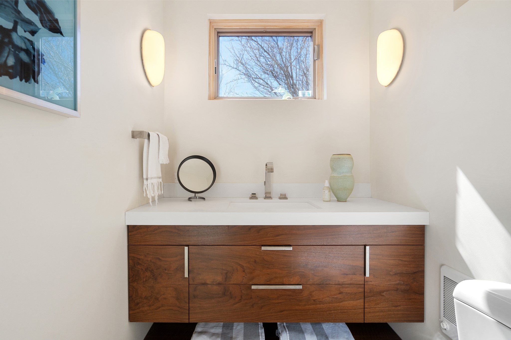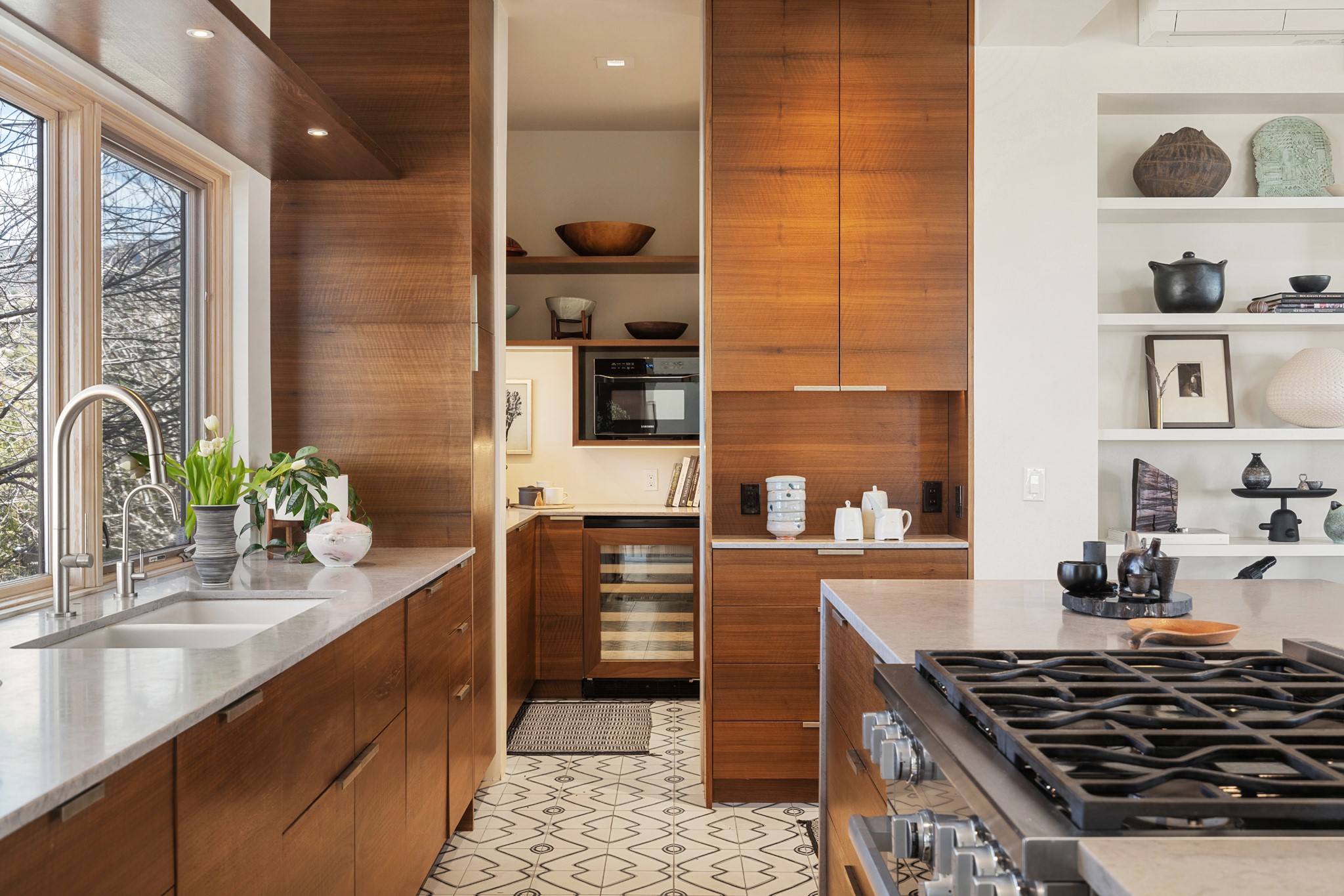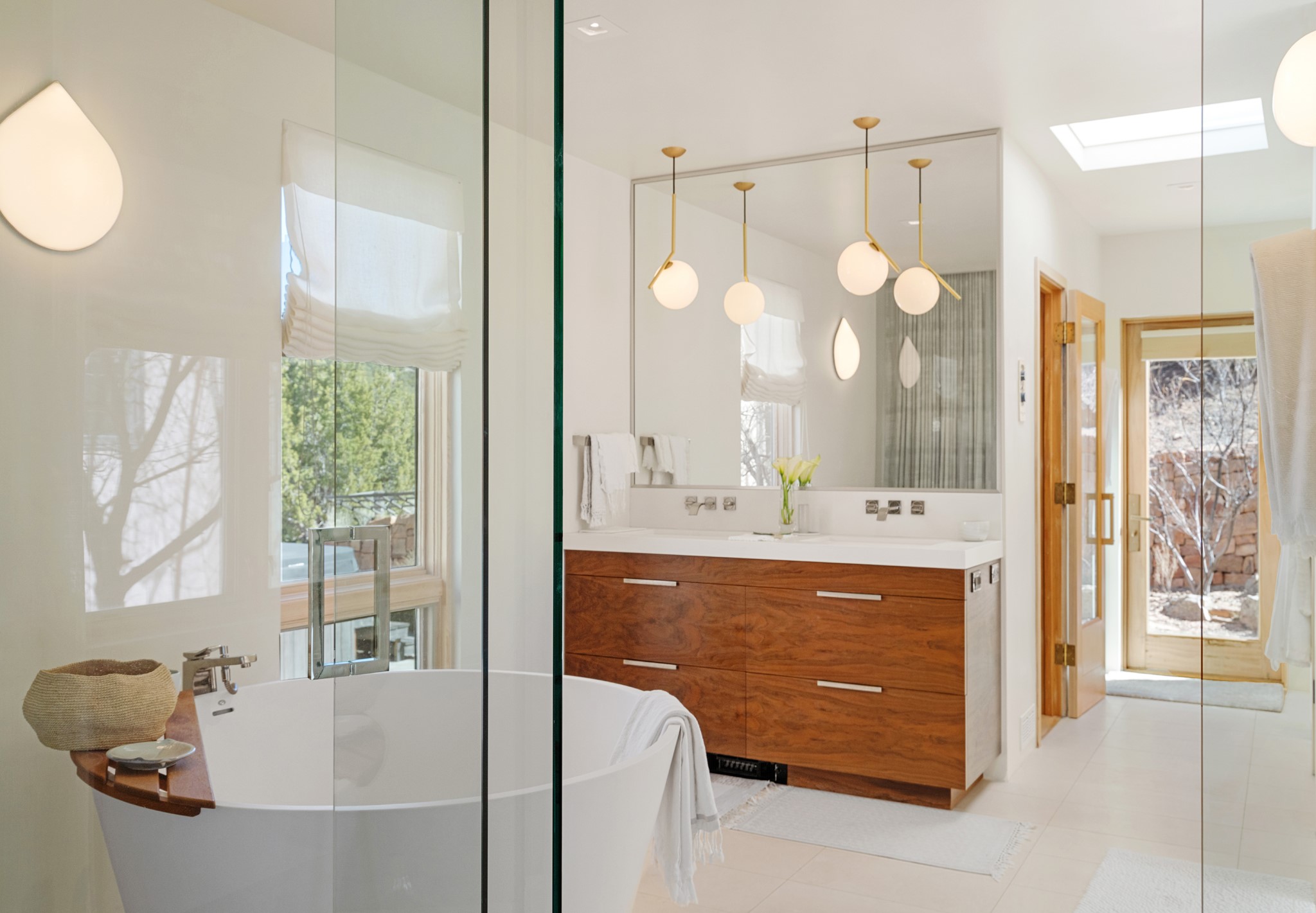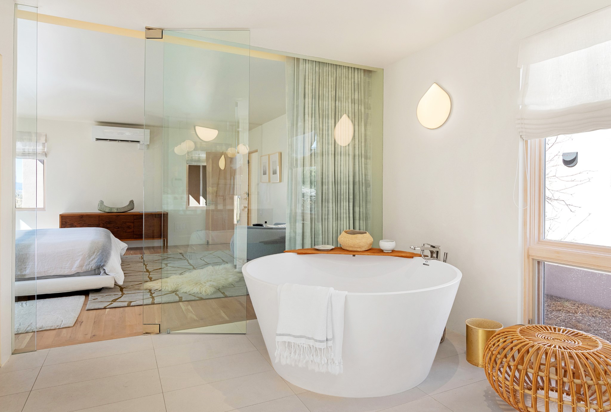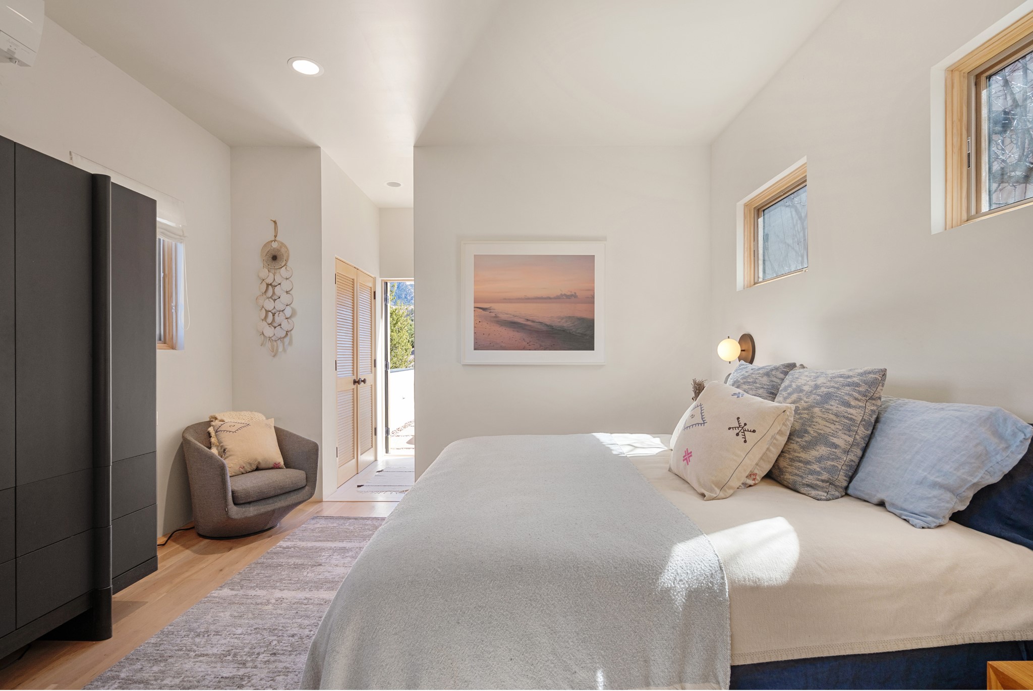 This refined main house and privatecasitais set high in the rolling Tesuque foothills of the Sangre de Cristo Mountains.Extensively re-designed and guided by Feng Shui principles so that energy moves smoothly, the main house creates an immediatesense of calm and well-being, with cherrywoodfloors, rich surfaces and fine details.A quiet retreat with serene spaces sets youinside the landscape of atmospheric views that stay with you. Three patios offer a choice of light and spacethroughout the day. Effortless indoor-outdoor living can be enjoyed from sunrise to sunset--this home welcomesbothquiet reflection andgreat hosting.The kitchen cabinetry and other custom pieces were milled and hand made from a single walnut tree from Oregon by alocal artisan.The great room and den offer warmth and light, with curated views, and each open directly ontoits own outdoor space. The calming primary bedroom flows into a restorative, spa-like experience: From soaking tub to sauna toshower, then stepping outdoors to the hot tub for star gazing--an outdoor shower completes the experience. Next, thecharming 2-bedroom, 2-bath guest house, which is separated by gorgeous native plantings and fruit trees, has its own entrance and parking toprovide exceptional privacy and flexibility for guests. This home offers a rare balance of seclusion and access--equally suited as a lock-and-leave retreat or a primary residence. Serene and immersed in nature, yet minutes from The Four Seasons,Tesuque Village Market, El Nido, andapp. 15 minutes to the Plaza and the Santa Fe Opera. Gated Los Caminitos comprises 573-acres with mapped trails for residents, a clubhouse, pool, tennis and pickleball.