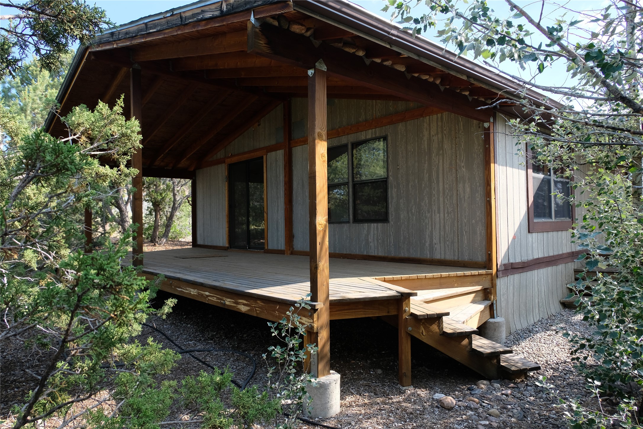 ***Will not finance, must be a cash purchase*** 4.3+ Acre Lot with 2 Bedroom 1 Bath Mobile Home & both Sangre De Christo and Jemez Mountain views! 850 Chicoma Vista is poised just outside the reach of the city and all those pesky HOAs, in the Village of Agua Fria where it enjoys Res-E (Residential Estate) zoning. With an architecturally notable home already sitting next door, this parcel is prime for thoughtful development, or could be kept untouched to continue to provide sanctuary to the wild quail and jackrabbits that traverse this special land.A site built studio with clearstory windows and electrical service sits adjacent to the long driveway's turnaround, and a spread of beautiful trees and native plants creates a natural courtyard on the way to the residence. The mobile home is livable, and will benefit from some TLC/updating from the next owners. A defining feature for the home is the ample covered porch space, inviting you to make the most of Santa Fe's incredible weather. The bedrooms and back porch enjoy a view out to our iconic Sangre De Cristo mountains, and the front and side porches cradle the home with 300 sq feet of outdoor dining space, seating options, and sunset views over the Caja Del Rio and to the Jemez Mountains in the distance. Built and titled in 1984, and never affixed to a permanent foundation, financing may not be available for the mobile home- check with your lender or plan on bringing cash.Private well is 304' deep, permitted and drilled- 1970. Existing electric service to the mobile home and the studio. The home has a septic system and propane, and could be an excellent headquarters to develop the rest of the property from. Schedule a showing and bring your boots, your architect, and your builder- your future is here, and it's looking bright!