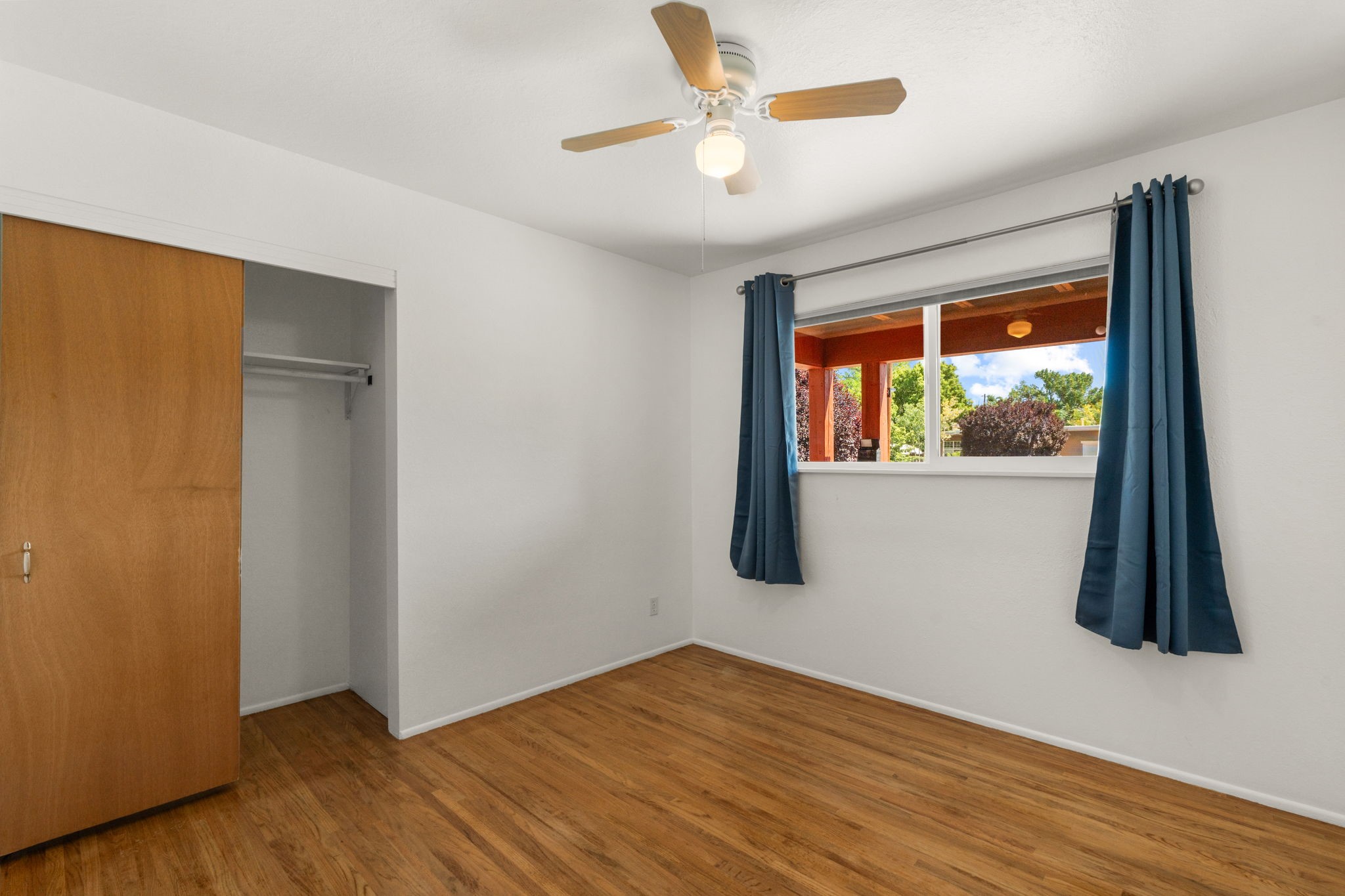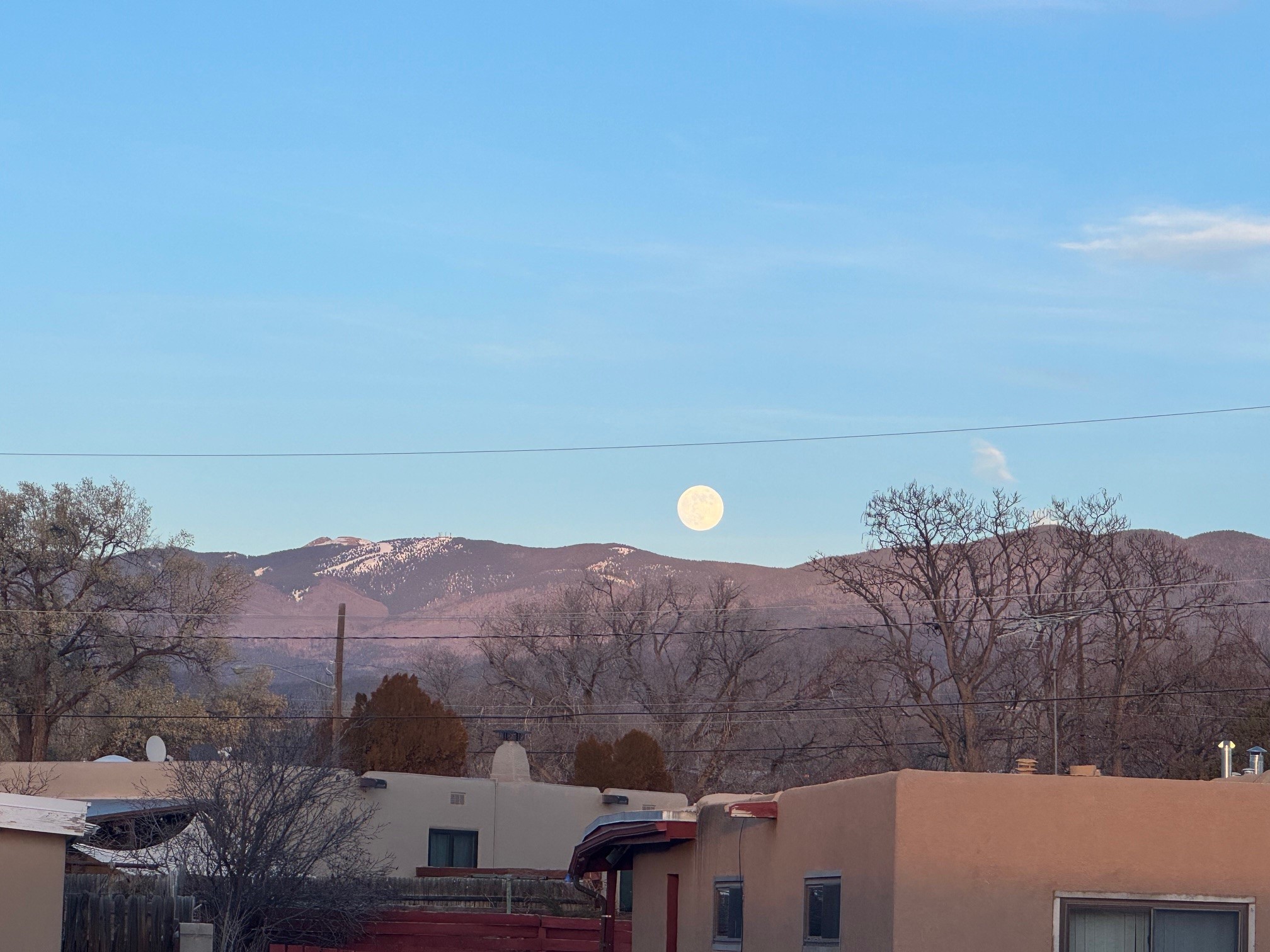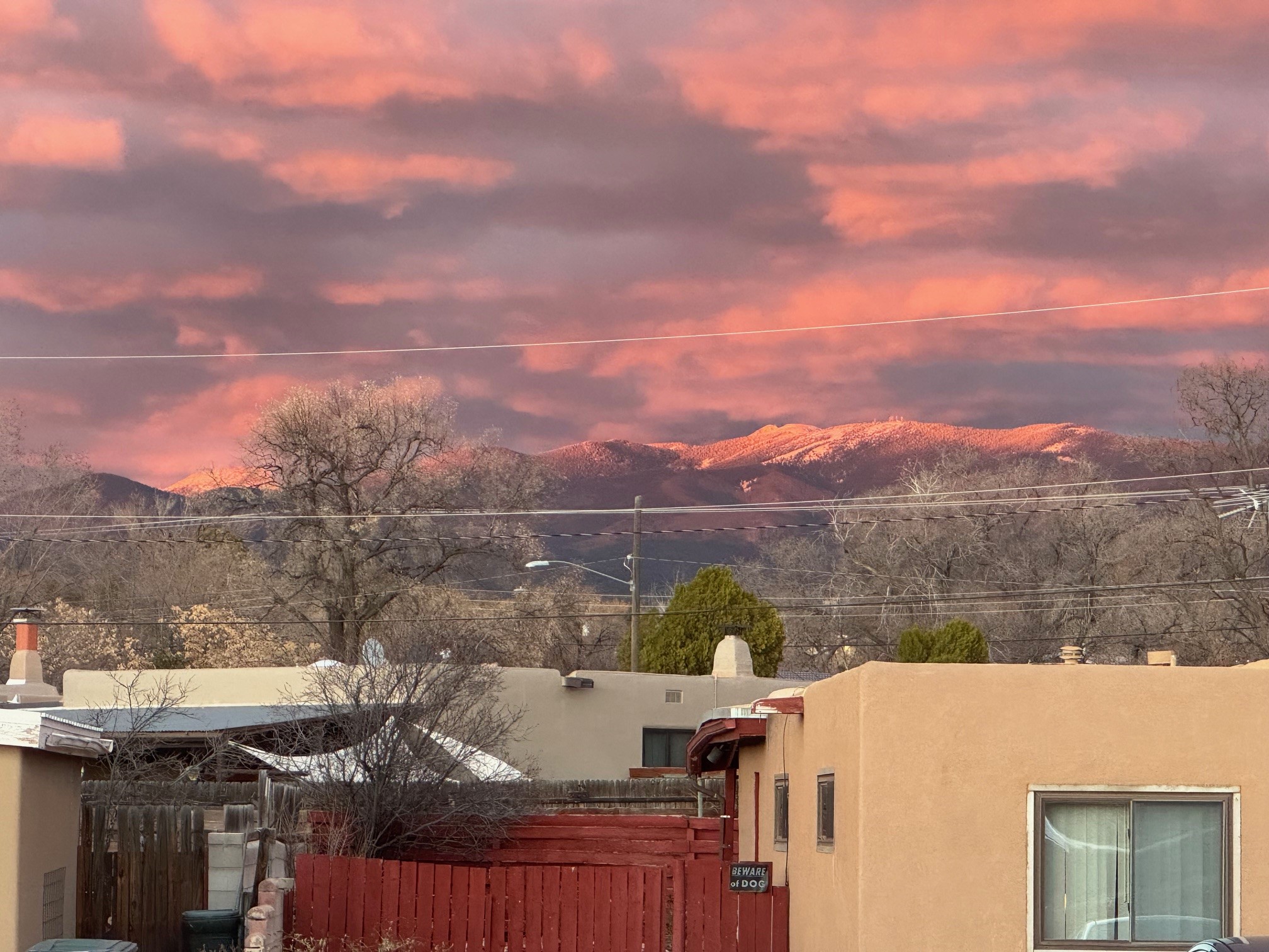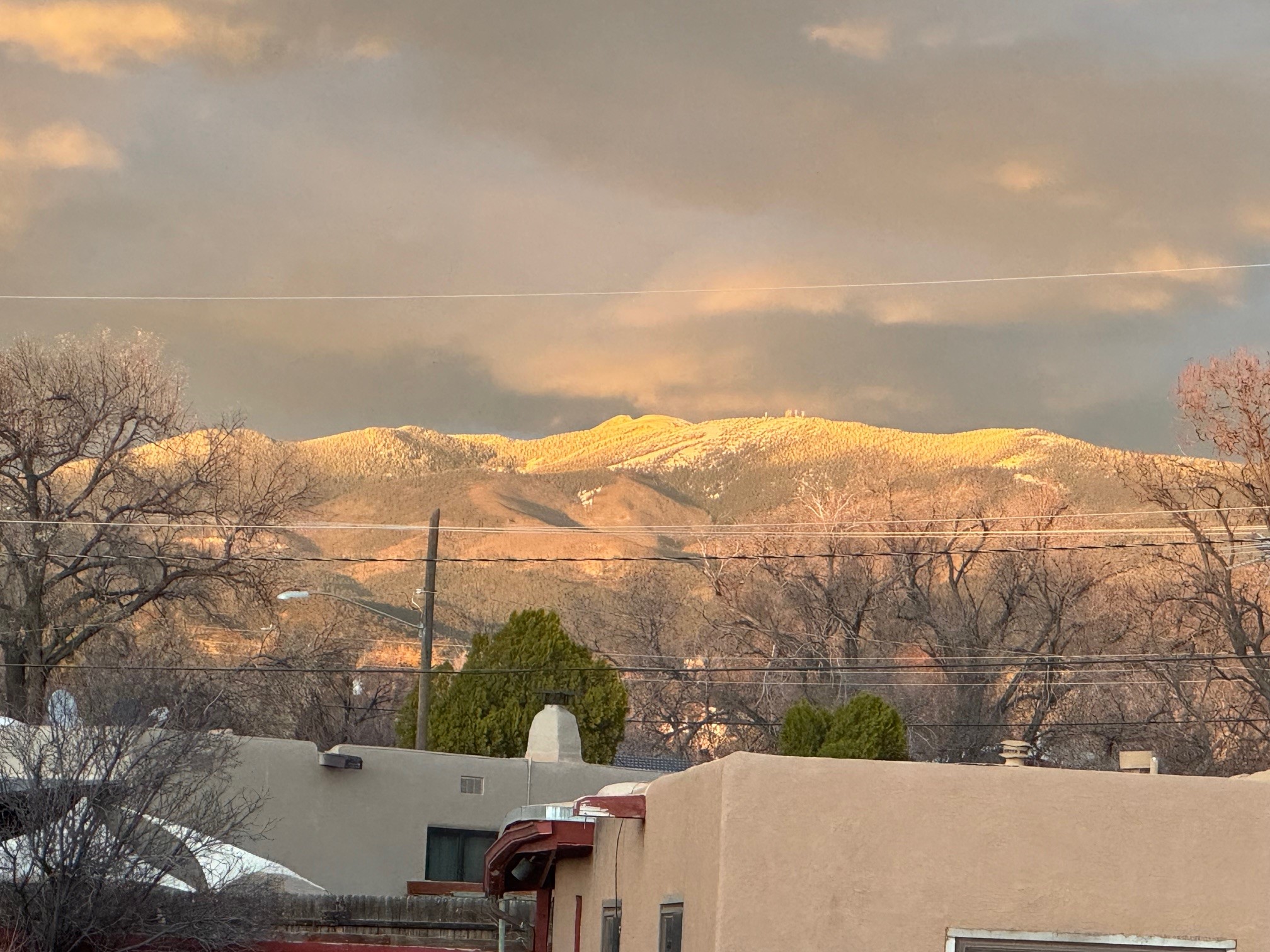 This light-filled and beautifully remodeled Stamm home offers captivating Sangre de Cristo mountain views and a seamless blend of classic charm and modern upgrades. The open floor plan centers around a spacious, completely updated kitchen featuring sleek cabinetry, stainless-steel appliances, and a generous butcher block island with ample storage--perfect for gathering and entertaining, with hardwood floors lending warmth throughout. The inviting living room boasts a cozy corner Kiva fireplace and a large picture window framing the unforgettable mountain vistas. The home offers three comfortable bedrooms, including a primary suite with a tastefully remodeled en suite bath. Central heating and A/C provide year-round comfort. Outside, the expansive and private back yard includes a large storage shed with shelving and a second smaller shed ideal for garden tools. With only one step throughout the entire home, accessibility is easy and effortless. Just moments from the Santa Fe River Trail, La Tierra trails and dog park, and within walking distance to local coffee shops and shopping, this property blends convenience, comfort, and natural beauty into a truly special place to call home.