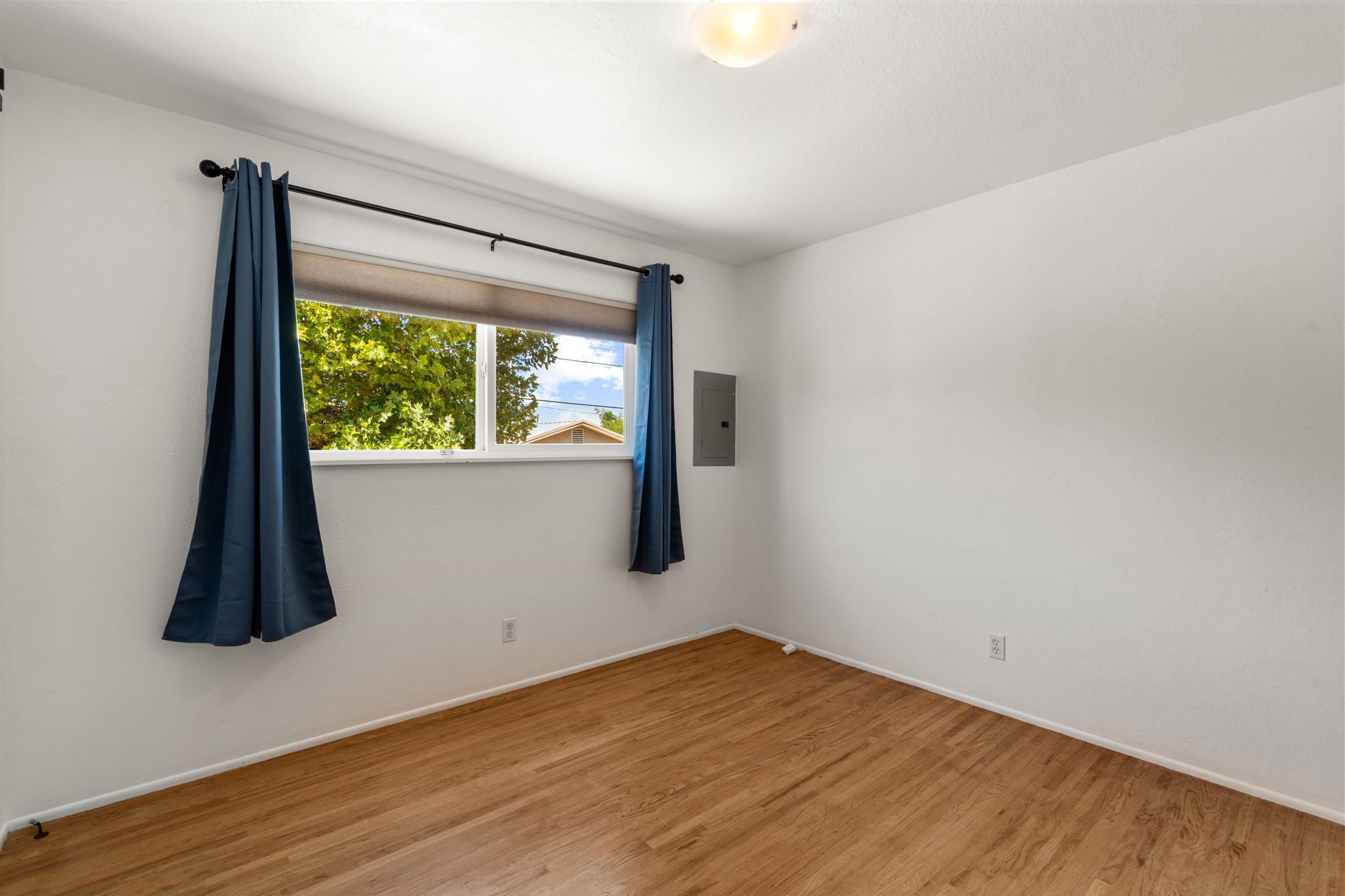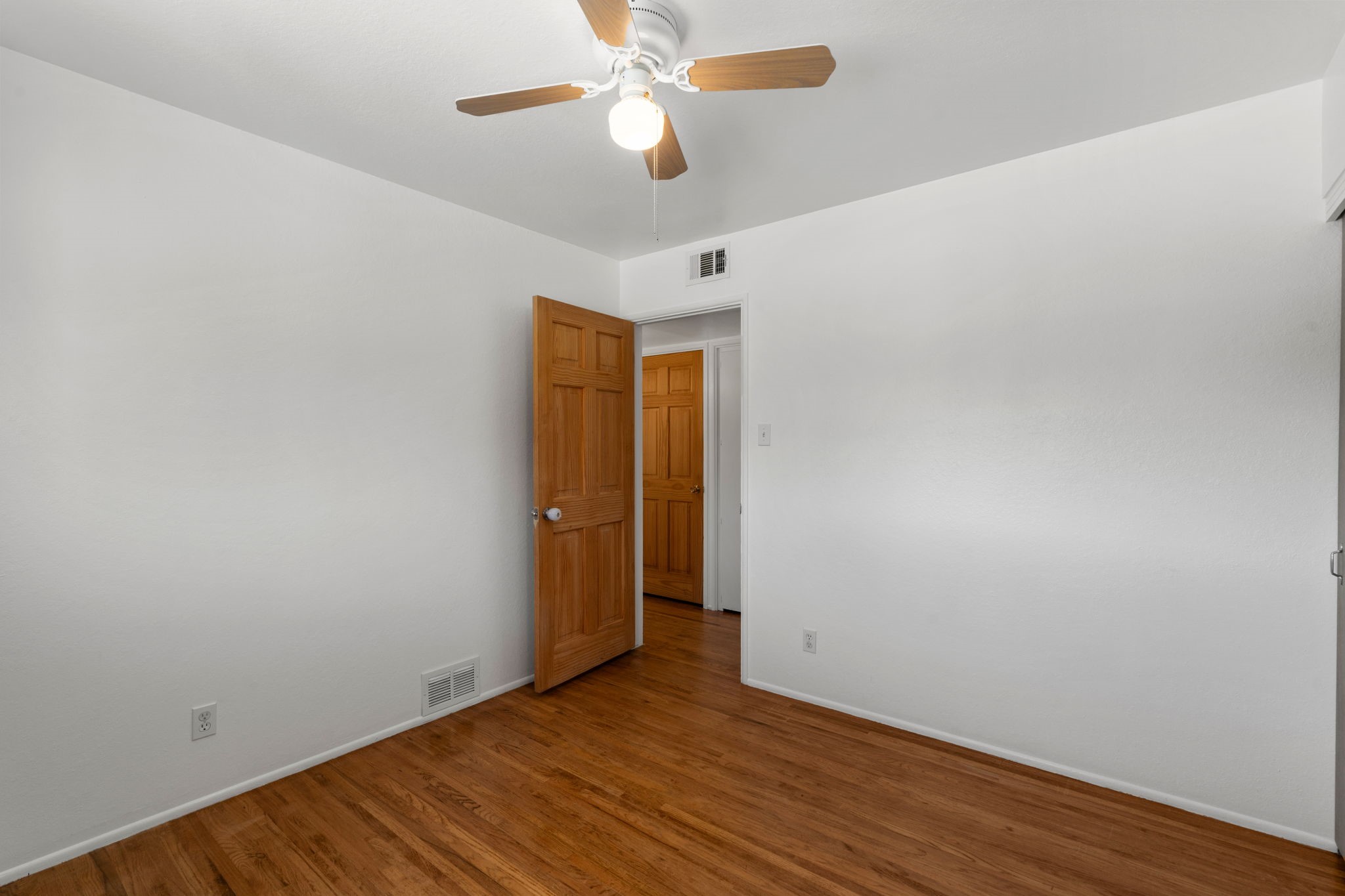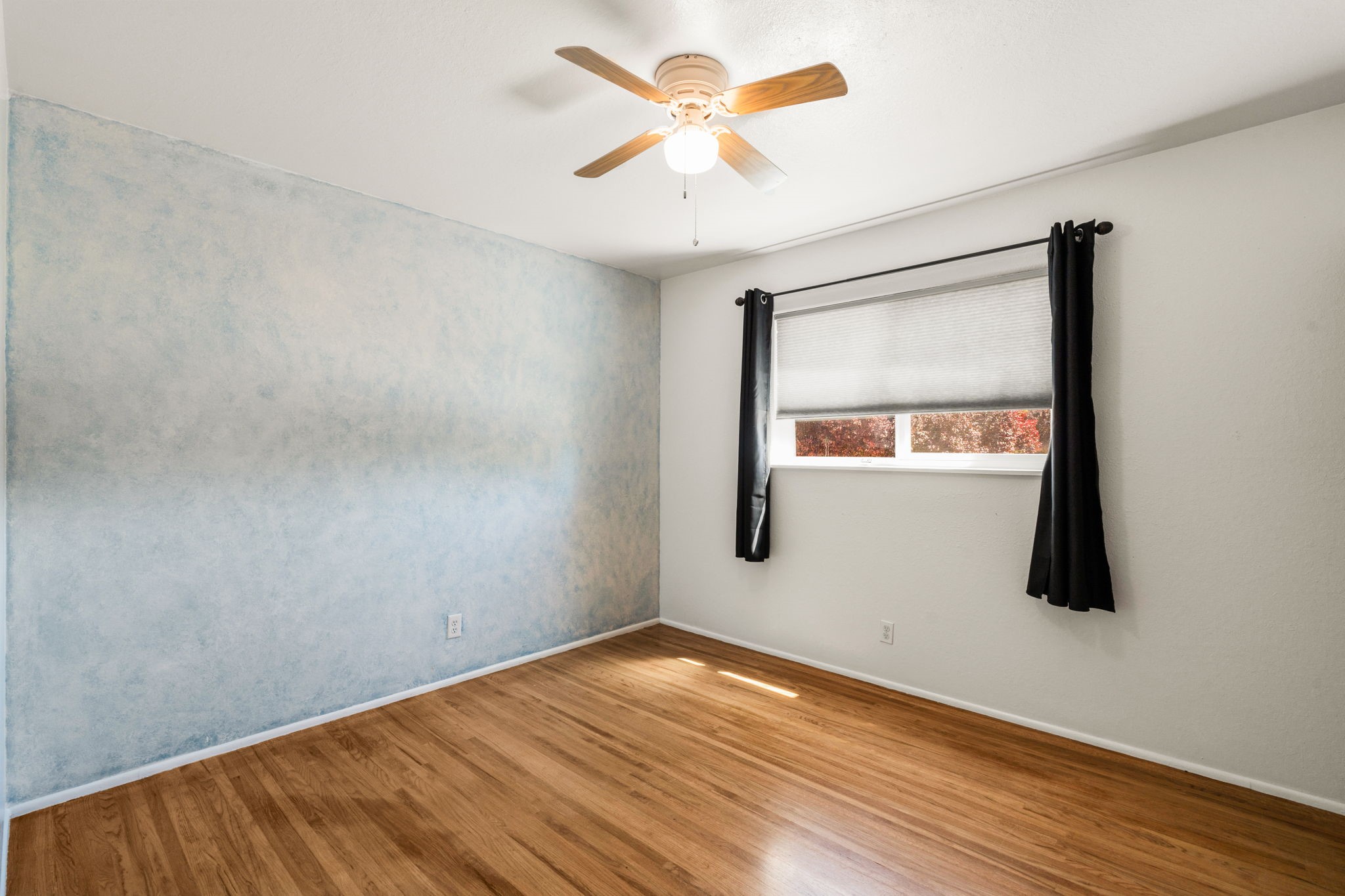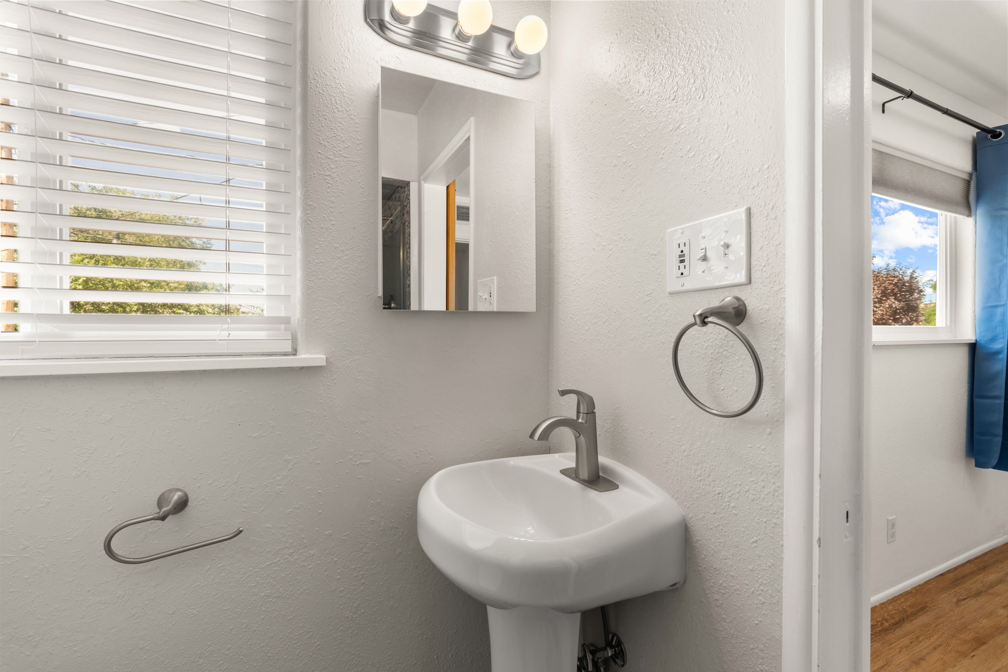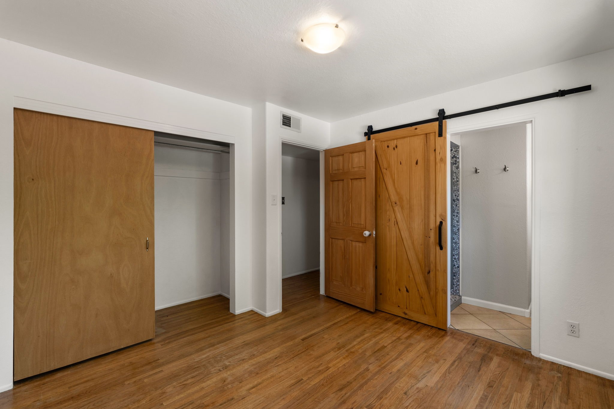 This light-filled and beautifully remodeled Stamm home offers captivating Sangre de Cristo mountain views and a seamless blend of classic charm and modern upgrades. The open floor plan centers around a spacious, completely updated kitchen featuring sleek cabinetry, stainless-steel appliances, and a generous butcher block island with ample storage--perfect for gathering and entertaining, with hardwood floors lending warmth throughout. The inviting living room boasts a cozy corner Kiva fireplace and a large picture window framing the unforgettable mountain vistas. The home offers three comfortable bedrooms, including a primary suite with a tastefully remodeled en suite bath. Central heating and A/C provide year-round comfort. Outside, the expansive and private back yard includes a large storage shed with shelving and a second smaller shed ideal for garden tools. With only one step throughout the entire home, accessibility is easy and effortless. Just moments from the Santa Fe River Trail, La Tierra trails and dog park, and within walking distance to local coffee shops and shopping, this property blends convenience, comfort, and natural beauty into a truly special place to call home.