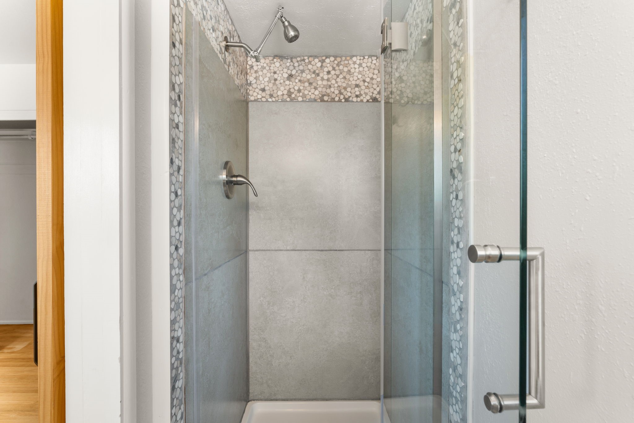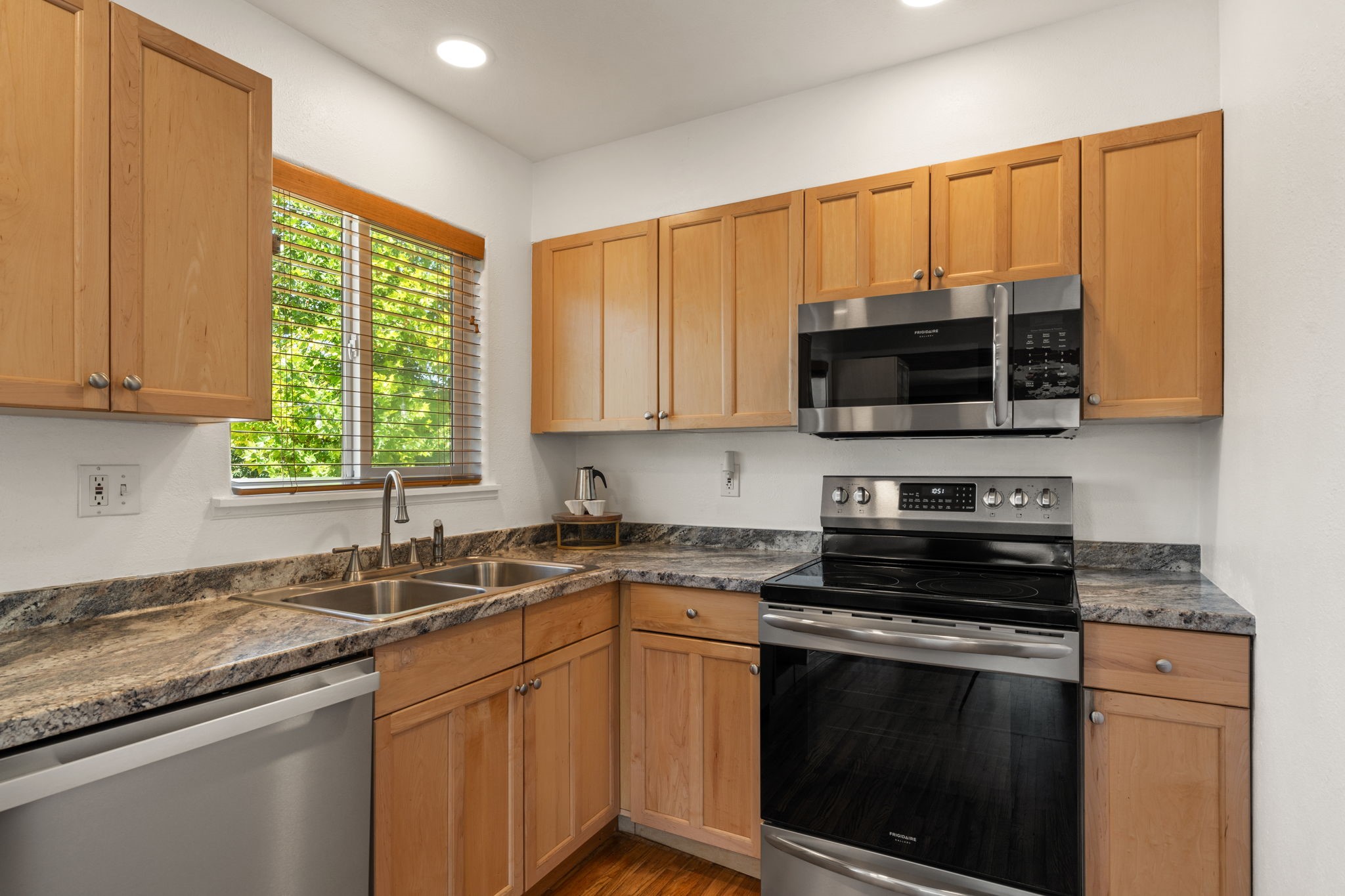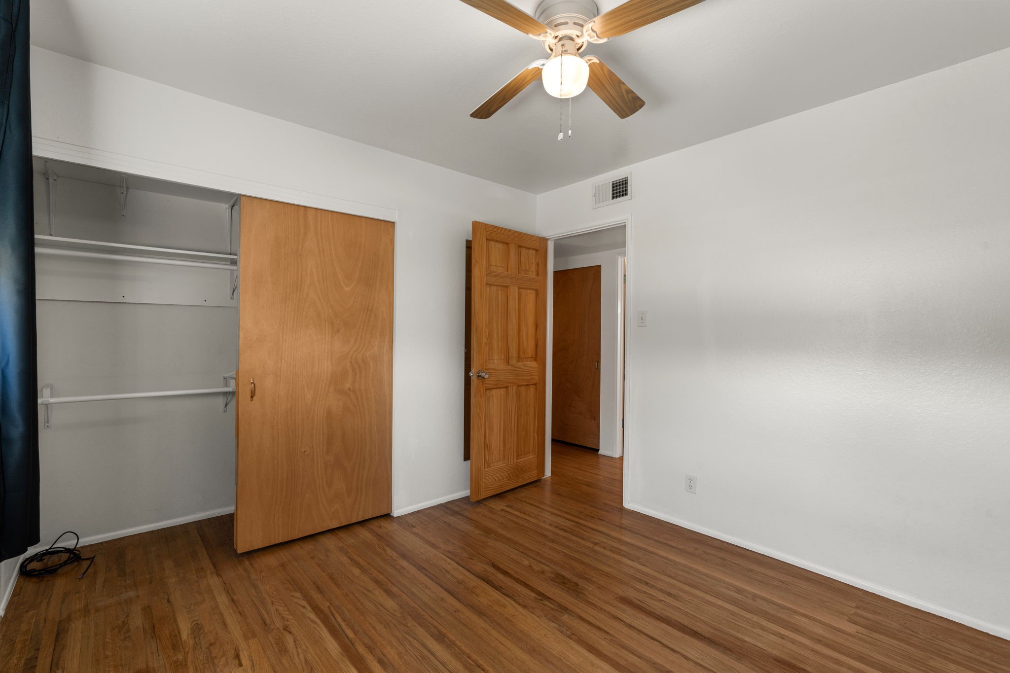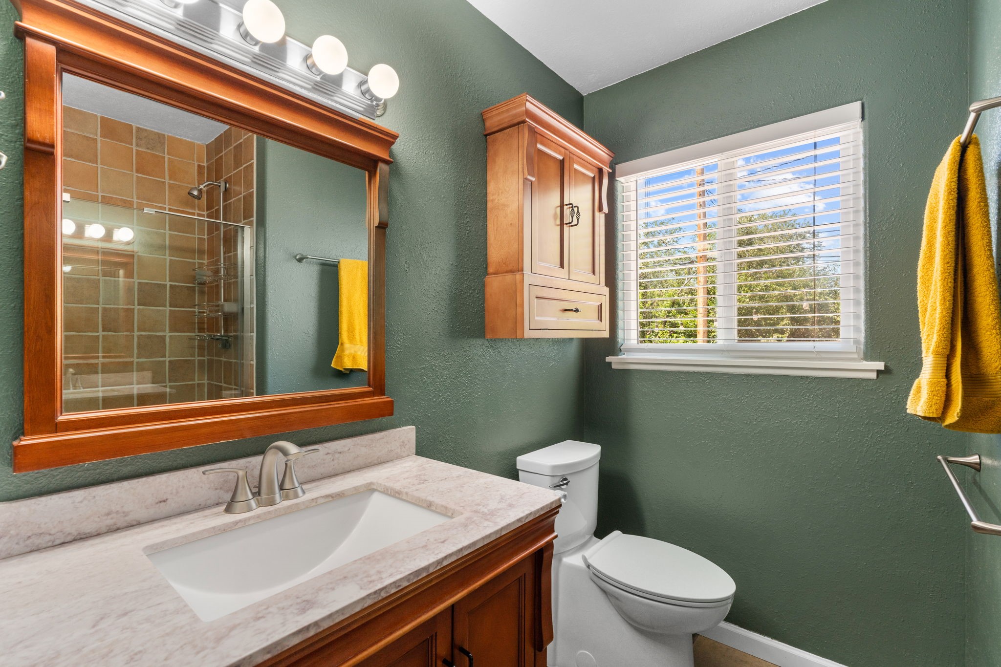 This light-filled and beautifully remodeled Stamm home offers captivating Sangre de Cristo mountain views and a seamless blend of classic charm and modern upgrades. The open floor plan centers around a spacious, completely updated kitchen featuring sleek cabinetry, stainless-steel appliances, and a generous butcher block island with ample storage--perfect for gathering and entertaining, with hardwood floors lending warmth throughout. The inviting living room boasts a cozy corner Kiva fireplace and a large picture window framing the unforgettable mountain vistas. The home offers three comfortable bedrooms, including a primary suite with a tastefully remodeled en suite bath. Central heating and A/C provide year-round comfort. Outside, the expansive and private back yard includes a large storage shed with shelving and a second smaller shed ideal for garden tools. With only one step throughout the entire home, accessibility is easy and effortless. Just moments from the Santa Fe River Trail, La Tierra trails and dog park, and within walking distance to local coffee shops and shopping, this property blends convenience, comfort, and natural beauty into a truly special place to call home.