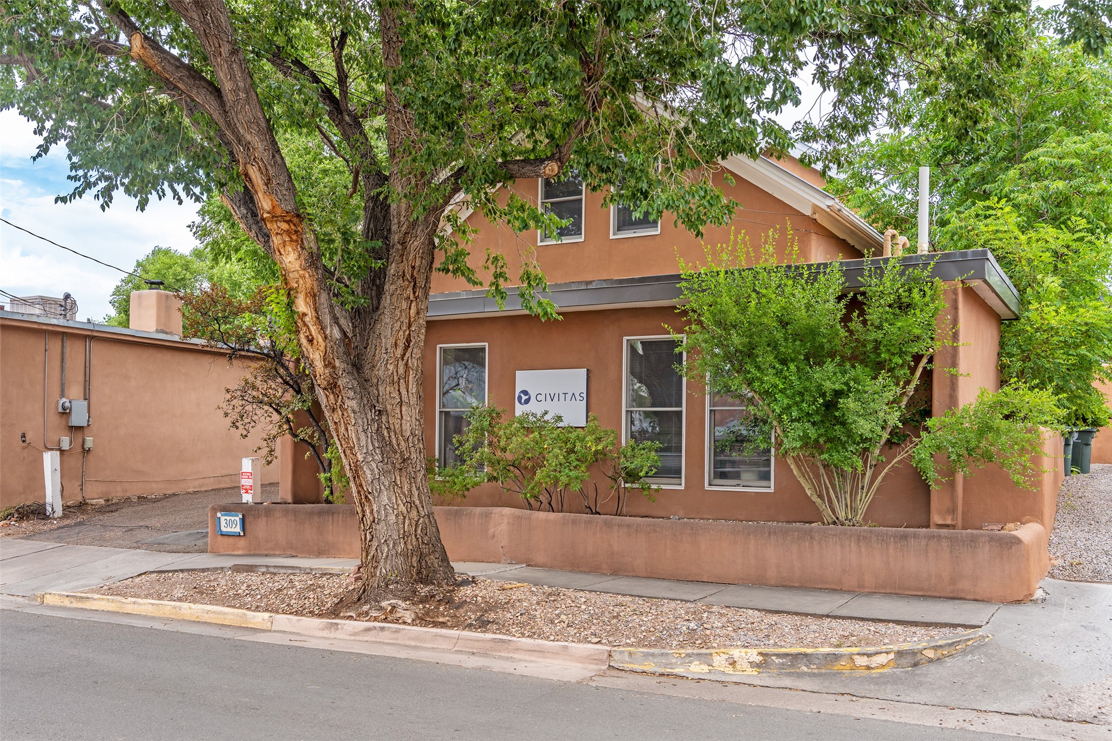 Attractive 2 story office investment in downtown Santa Fe. Originally a house built in 1945, previously converted to office space with 8 offices, 2 bathrooms and a wetbar/kitchenette. Wood and tile floors and wooden architectural staircase create a professional, classy feel. Offered fully leased as an investment, below appraised value. BCD Zoning allows for residential, office, retail, restaurant, hospitality and more. Excellent location just a few doors down from the Georgia Okeeffe Museum, Eldorado Hotel, Terra Cotta Restaurant, Santa Fe Cooking School. Two blocks from the Historic Santa Fe Plaza, the Santa Fe River and 4 blocks from the Railyard which can be accessed on the newly rebuilt Guadalupe Street pedestrian corridor. Leased to a stable, long-term tenant, Civitas Resources, an oil exploration company, until November 2026 in New Mexico, the second largest oil producing state in the US after Texas. Tenant has 2 additional renewal terms of 3 years each with regular rent escalations. 4+ paved spaces in the back. Historic status is "noncontributing" and any changes are subject to review by Historic Design Review Board. See offering memo for current financials.