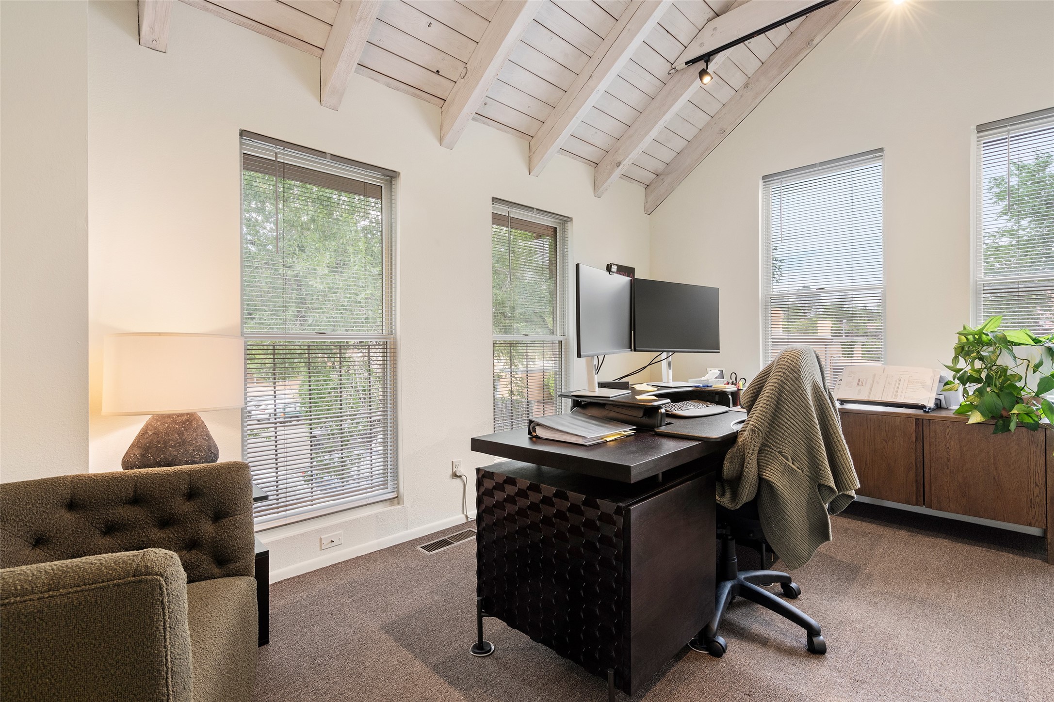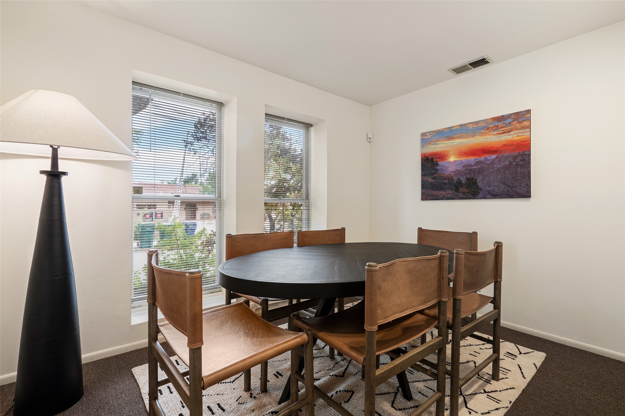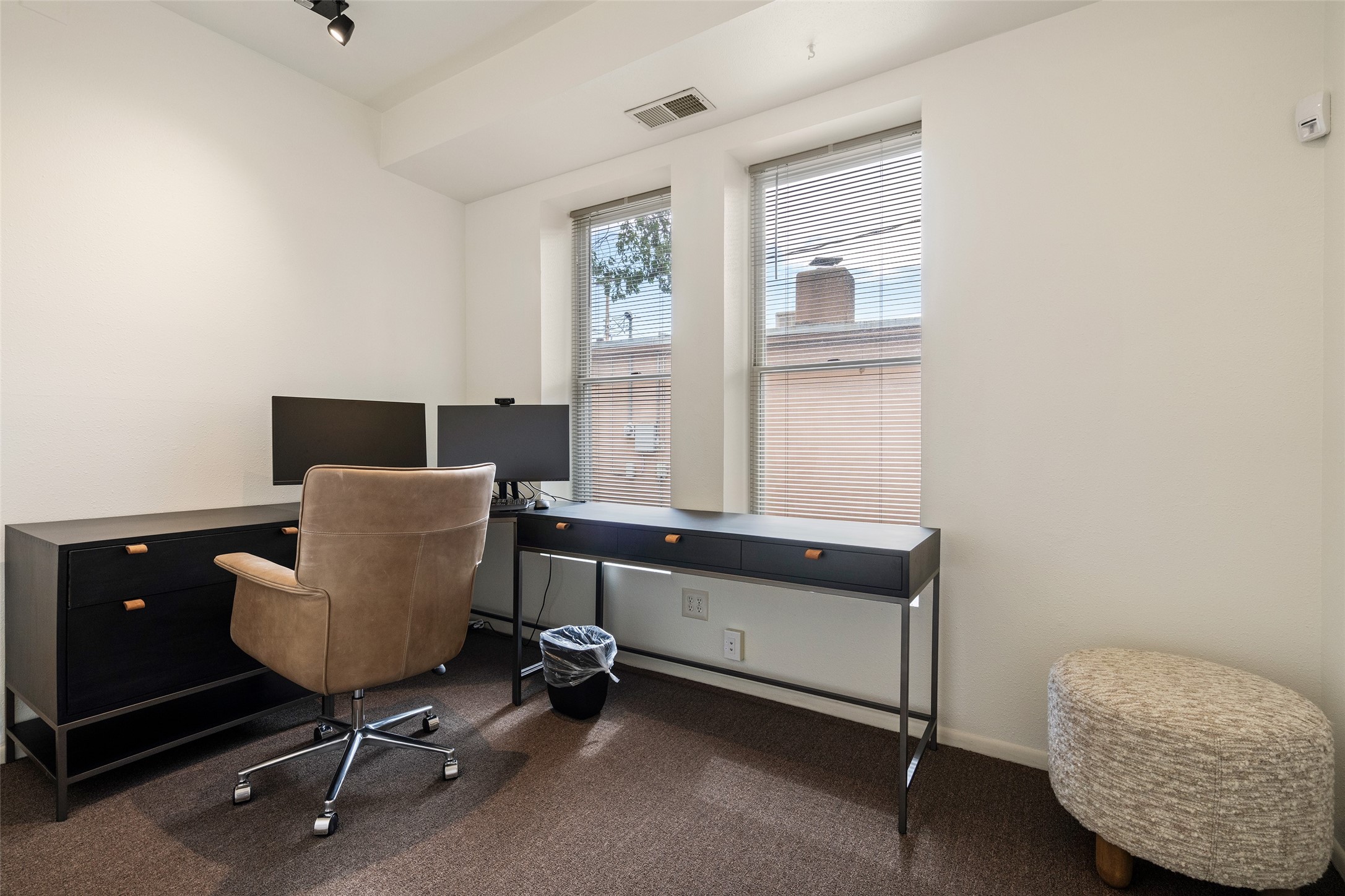 Attractive 2 story office investment in downtown Santa Fe. Originally a house built in 1945, previously converted to office space with 8 offices, 2 bathrooms and a wetbar/kitchenette. Wood and tile floors and wooden architectural staircase create a professional, classy feel. Offered fully leased as an investment, below appraised value. BCD Zoning allows for residential, office, retail, restaurant, hospitality and more. Excellent location just a few doors down from the Georgia Okeeffe Museum, Eldorado Hotel, Terra Cotta Restaurant, Santa Fe Cooking School. Two blocks from the Historic Santa Fe Plaza, the Santa Fe River and 4 blocks from the Railyard which can be accessed on the newly rebuilt Guadalupe Street pedestrian corridor. Leased to a stable, long-term tenant, Civitas Resources, an oil exploration company, until November 2026 in New Mexico, the second largest oil producing state in the US after Texas. Tenant has 2 additional renewal terms of 3 years each with regular rent escalations. 4+ paved spaces in the back. Historic status is "noncontributing" and any changes are subject to review by Historic Design Review Board. See offering memo for current financials.