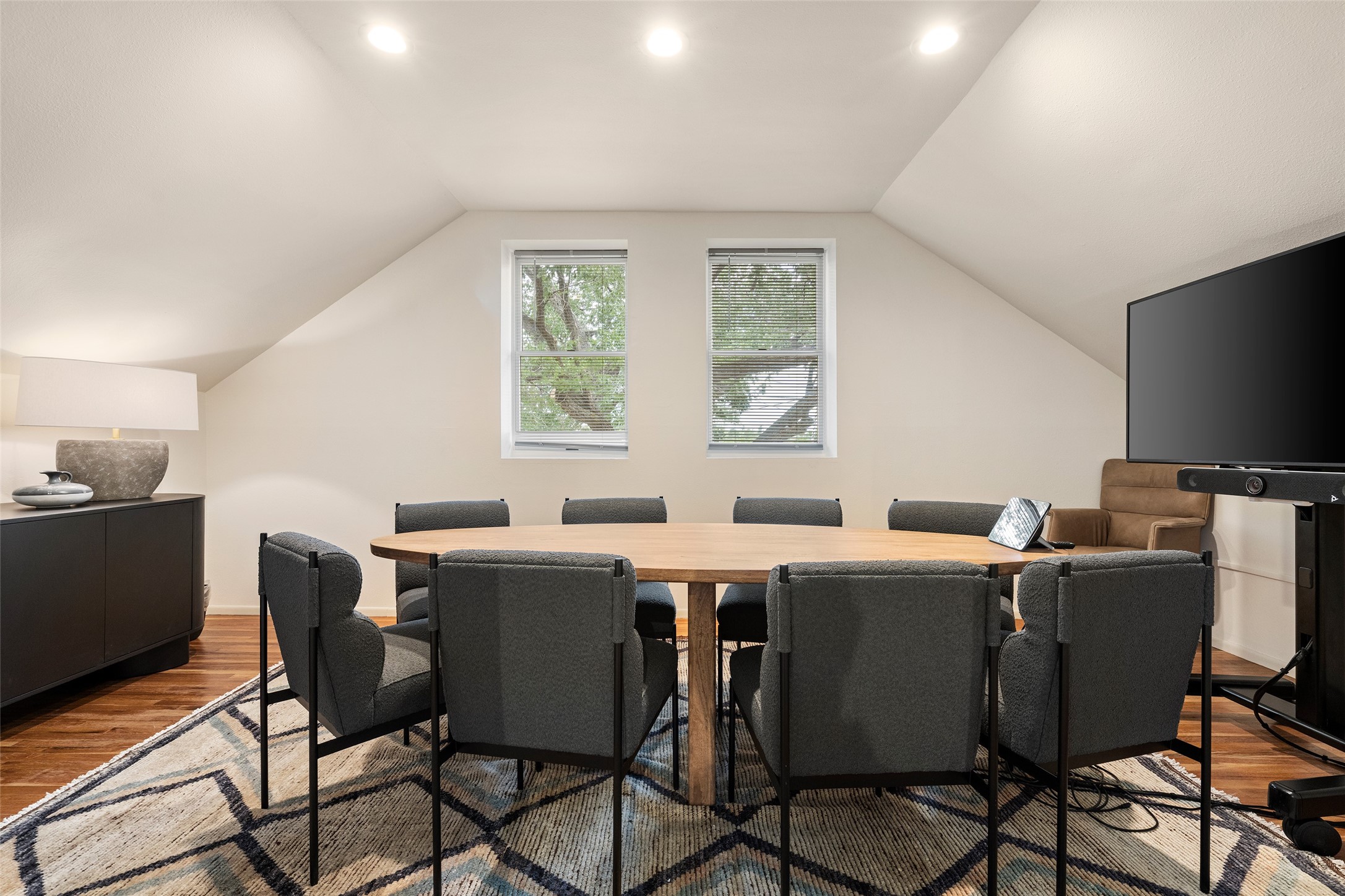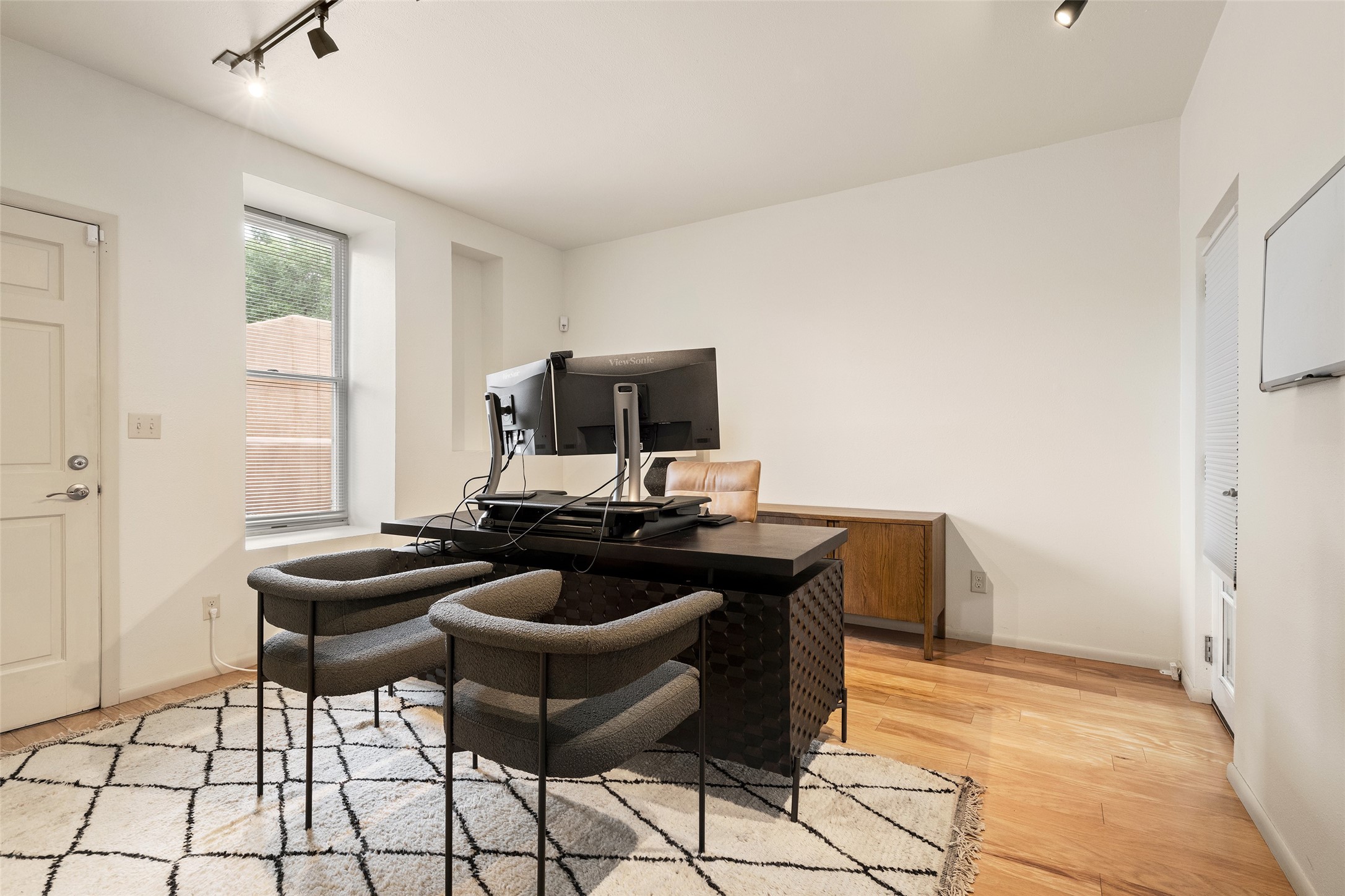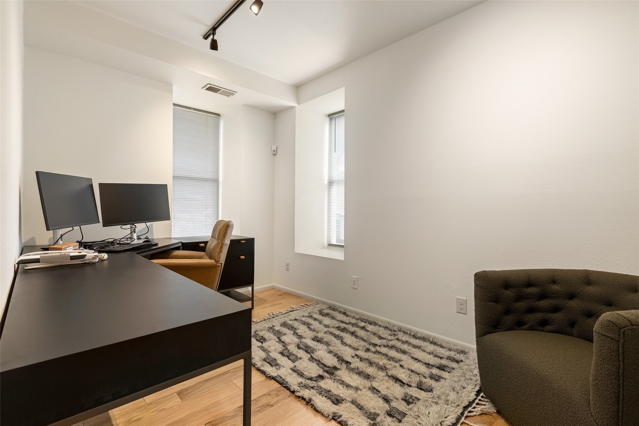 Attractive 2 story office investment in downtown Santa Fe. Originally a house built in 1945, previously converted to office space with 8 offices, 2 bathrooms and a wetbar/kitchenette. Wood and tile floors and wooden architectural staircase create a professional, classy feel. Offered fully leased as an investment, below appraised value. BCD Zoning allows for residential, office, retail, restaurant, hospitality and more. Excellent location just a few doors down from the Georgia Okeeffe Museum, Eldorado Hotel, Terra Cotta Restaurant, Santa Fe Cooking School. Two blocks from the Historic Santa Fe Plaza, the Santa Fe River and 4 blocks from the Railyard which can be accessed on the newly rebuilt Guadalupe Street pedestrian corridor. Leased to a stable, long-term tenant, Civitas Resources, an oil exploration company, until November 2026 in New Mexico, the second largest oil producing state in the US after Texas. Tenant has 2 additional renewal terms of 3 years each with regular rent escalations. 4+ paved spaces in the back. Historic status is "noncontributing" and any changes are subject to review by Historic Design Review Board. See offering memo for current financials.