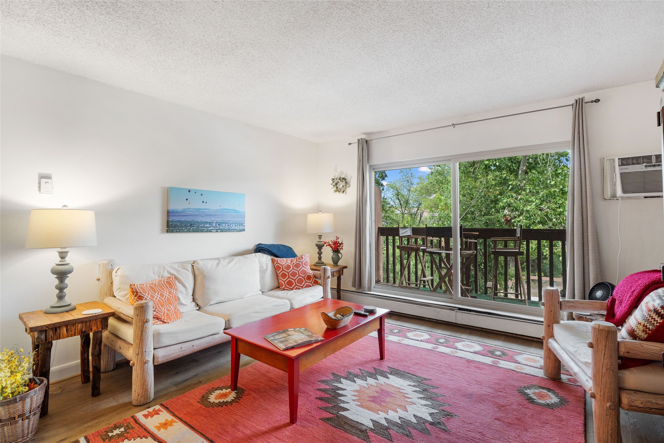 Renovated 2-bedroom, 2-bathroom condo located on the second floor of the Los Arroyos Compound on the shady side of the building. Upon entry, the living and dining areas flow onto an outdoor deck with views of Atalaya, Picacho Peak, and the Sun and Moon Mountains. The modern L-shaped kitchen is appointed with clean, white cabinets and provides ample storage and workspace for cooking. The split bedroom plan ensures privacy and convenience for guests or roommates. Additionally, it includes a large laundry and storage room with a stacked washer and dryer. The Los Arroyos Compound includes access to an array of amenities, including a clubhouse and outdoor space for social gatherings, an indoor pool, exercise room, sauna, and tennis courts. Easy access to 285, I-25 and restaurants, health/wellness facilities and shopping
